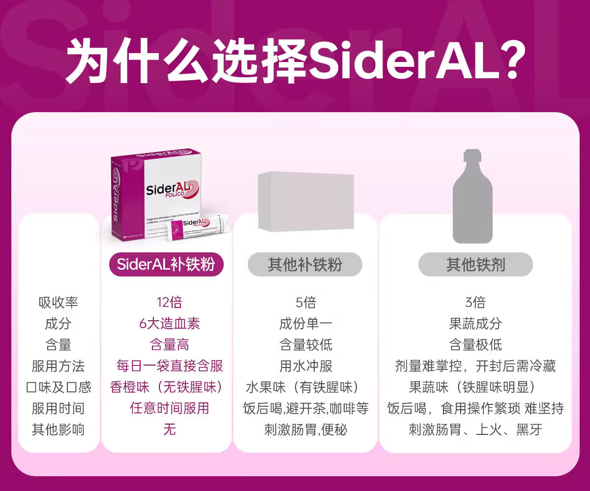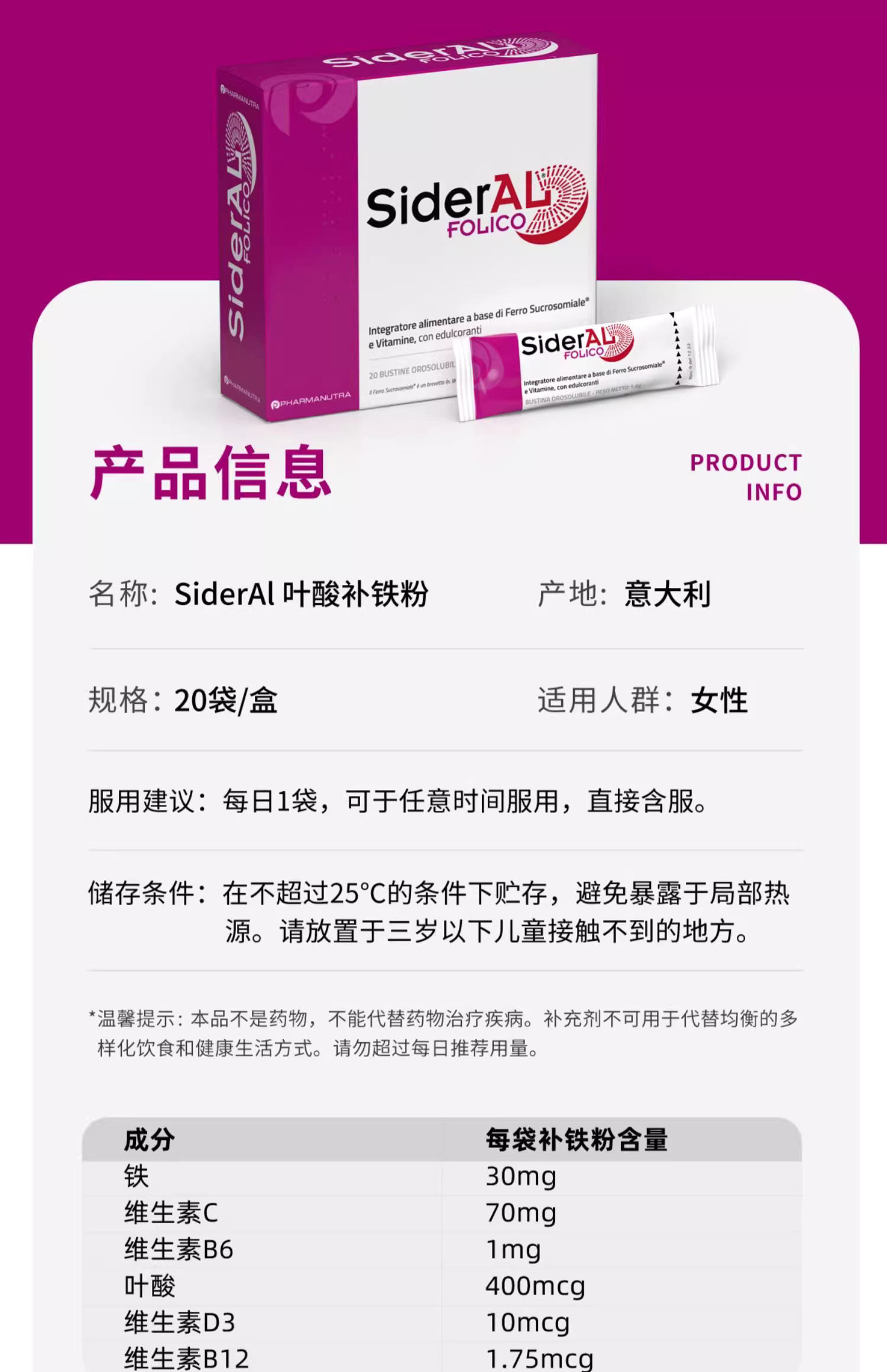 SiderAL意大利叶酸维生素补铁粉贫血孕期铁元素补气血女性补血