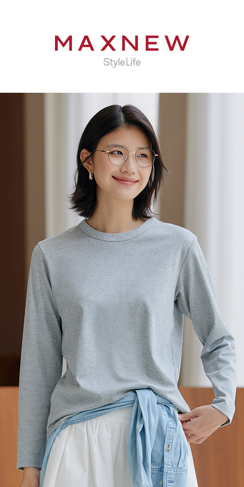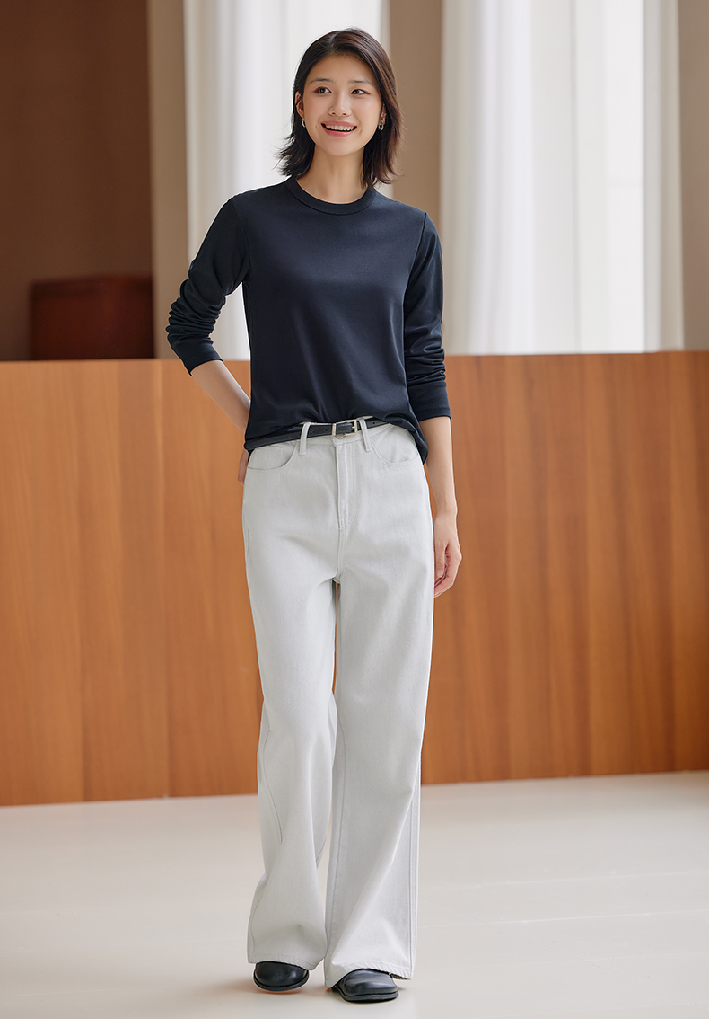 【门店同款】马恩MAXNEW2025秋新款白色正肩打底衫宽松长袖T恤女