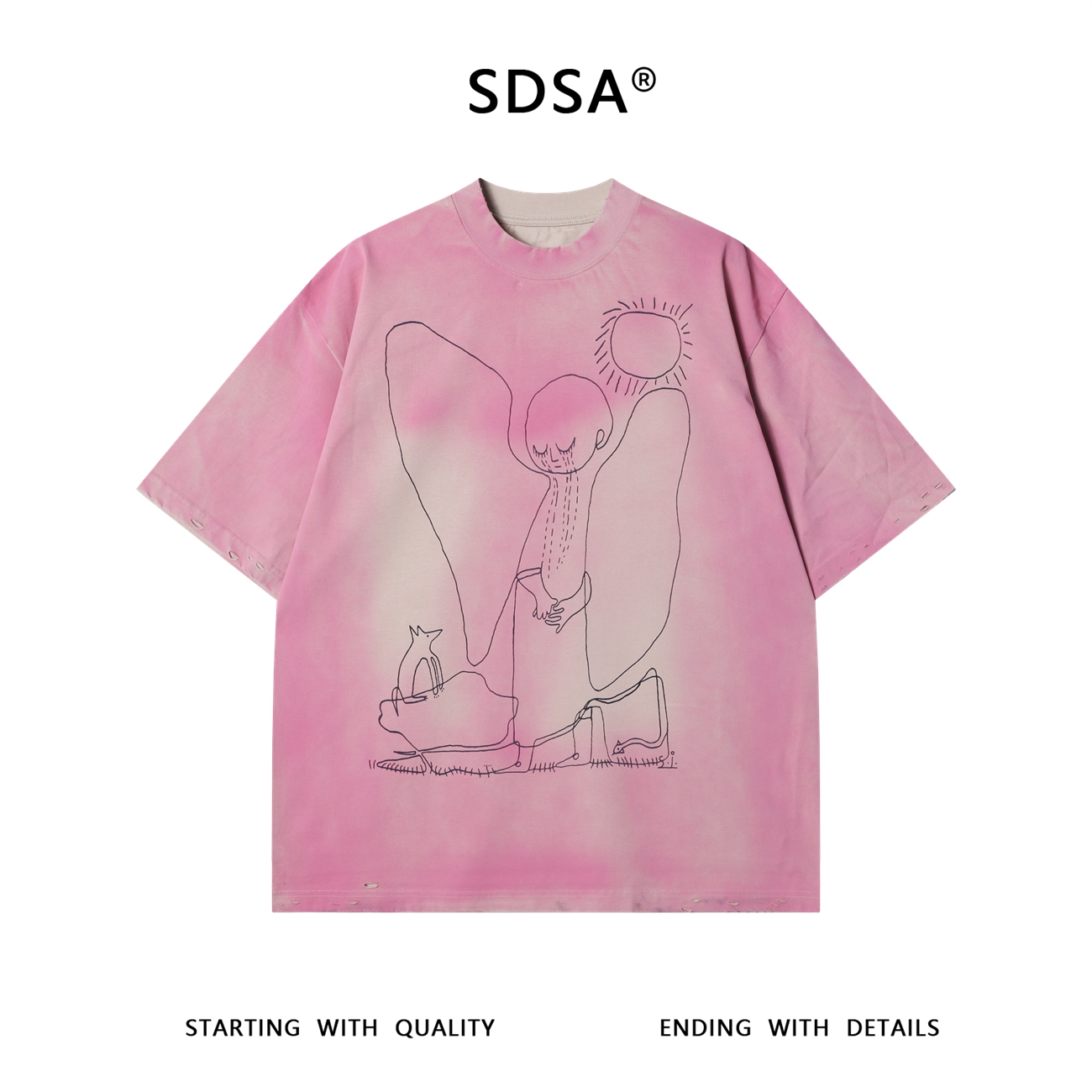 T3393夏季高级感新款美式手绘喷绘印花设计感短袖T恤潮流宽松圆领上衣