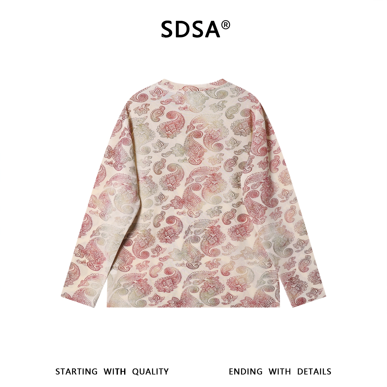 SDSA男装2026新款高贵轻奢潮牌百搭腰果花卉圆领长袖T恤时尚上衣