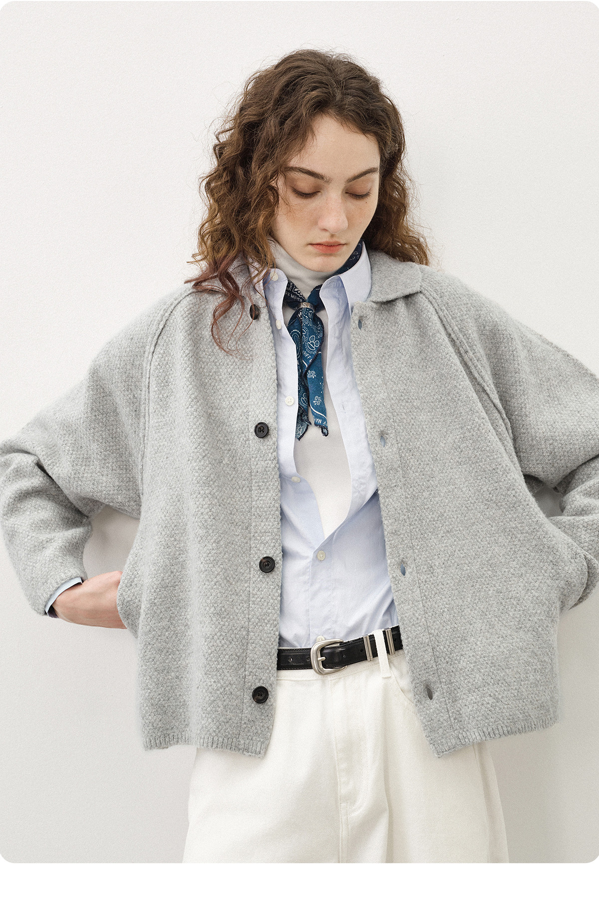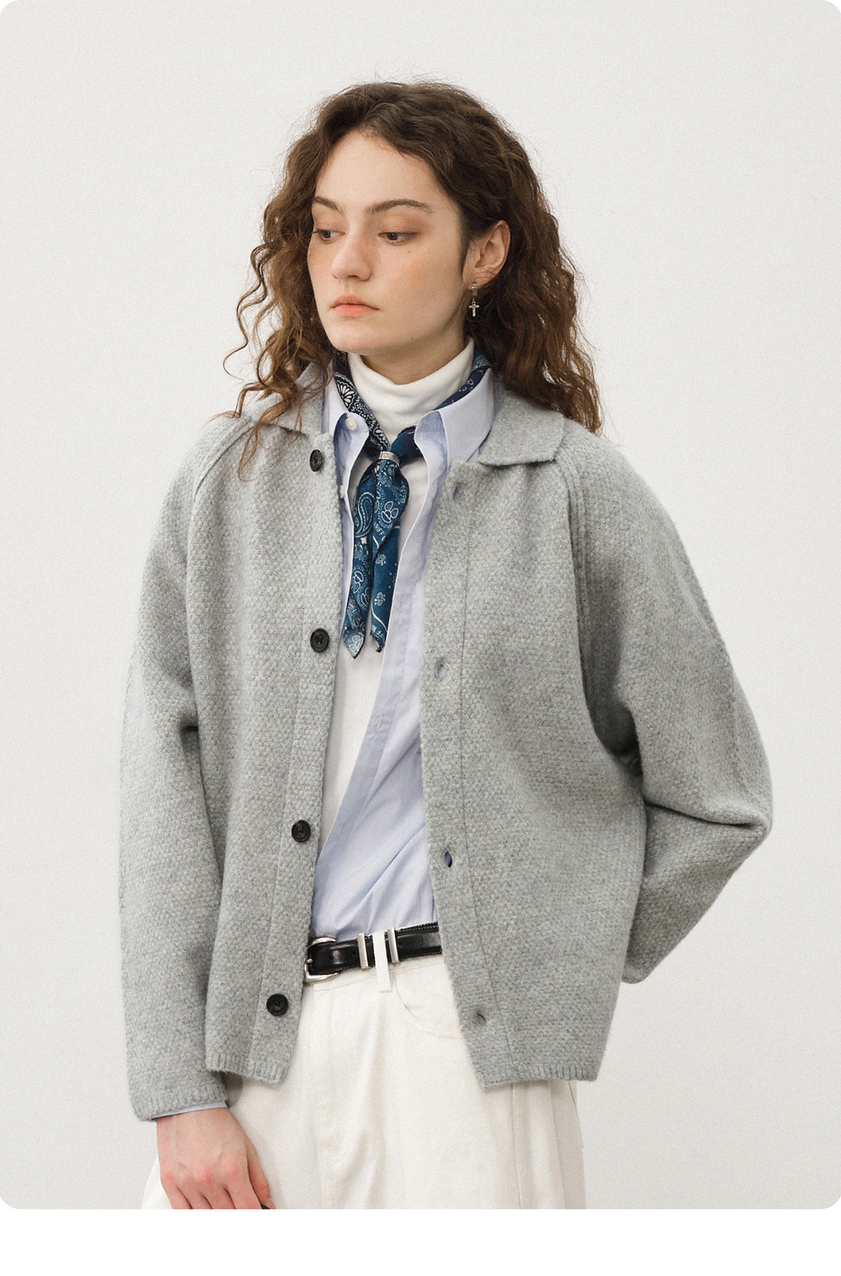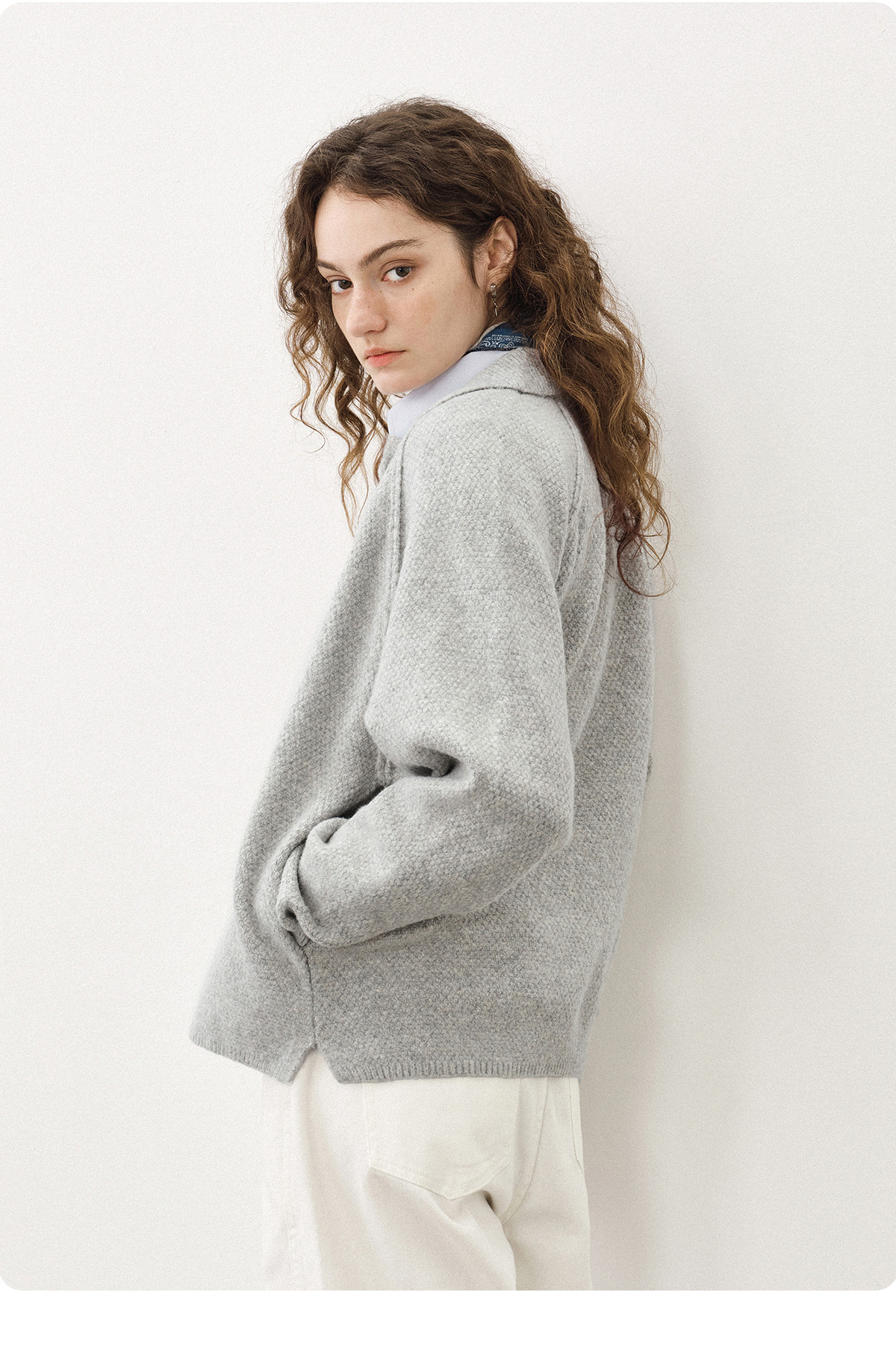 714street亲肤糯米绒半开领毛衣2026春季立领毛衫宽松高弹针织衫