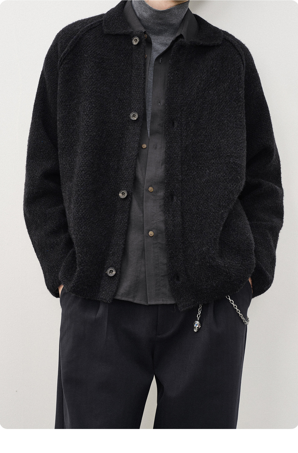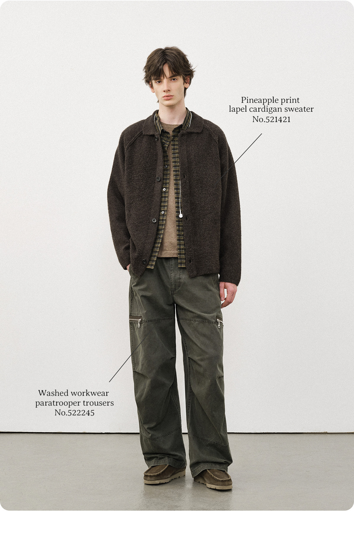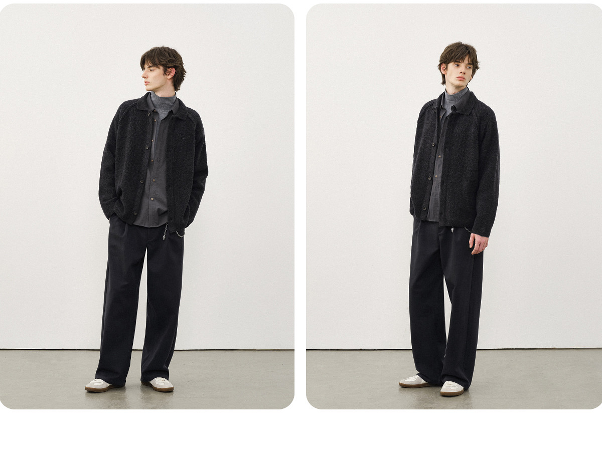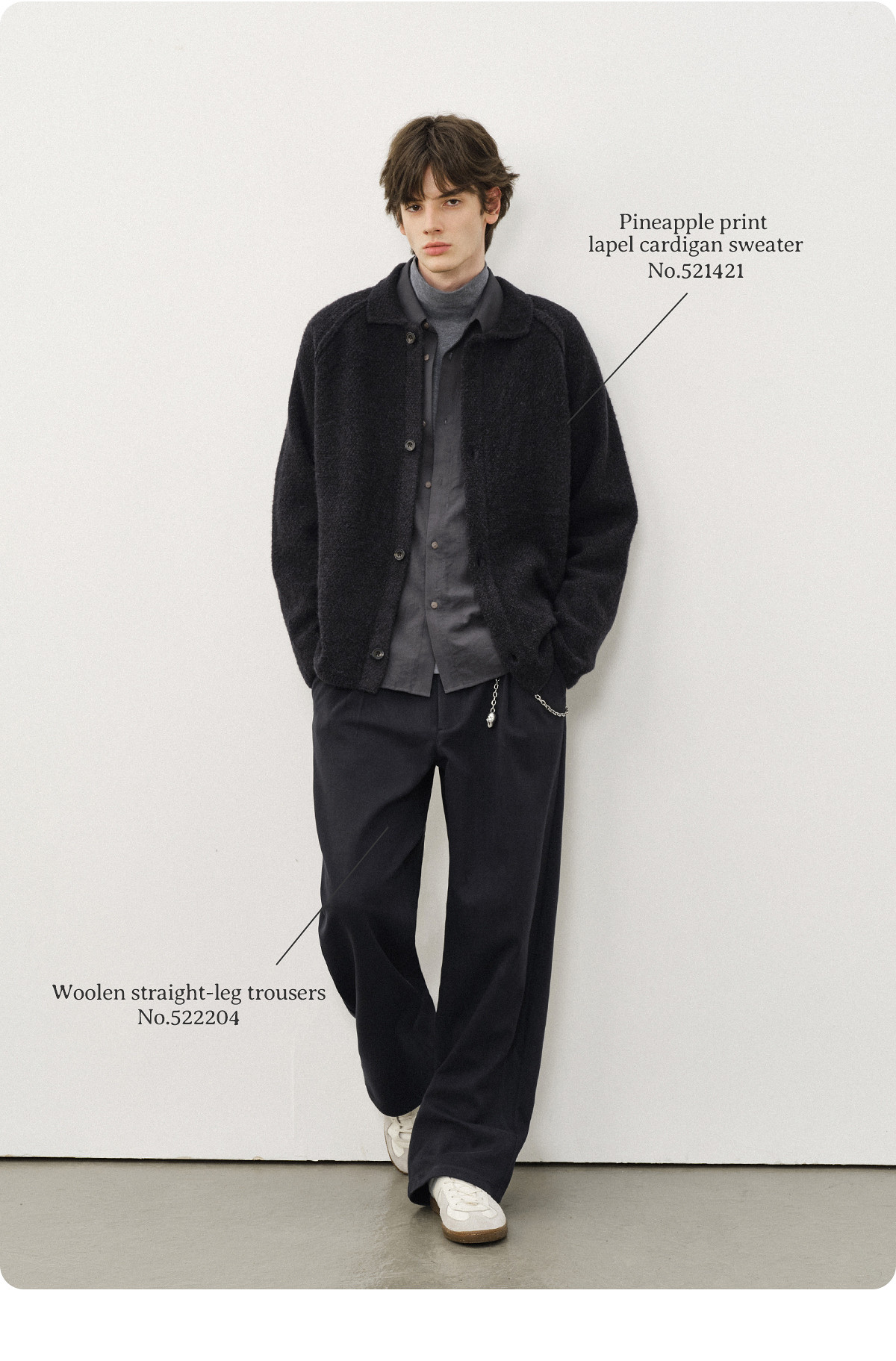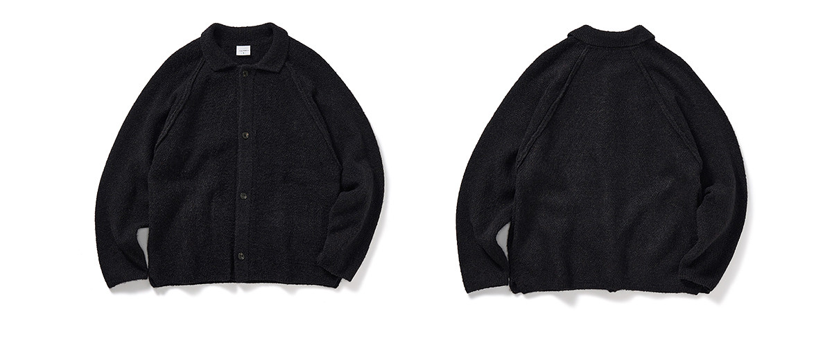 714street菠萝纹情侣翻领毛衣开衫男2025秋冬cleanfit针织外套女