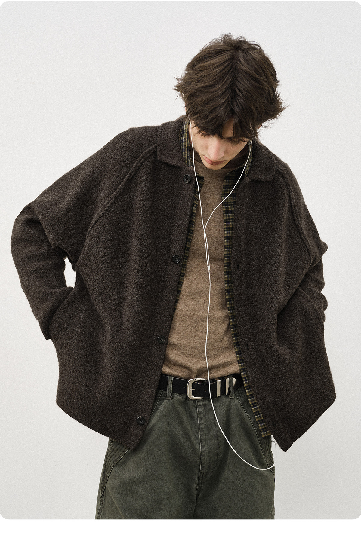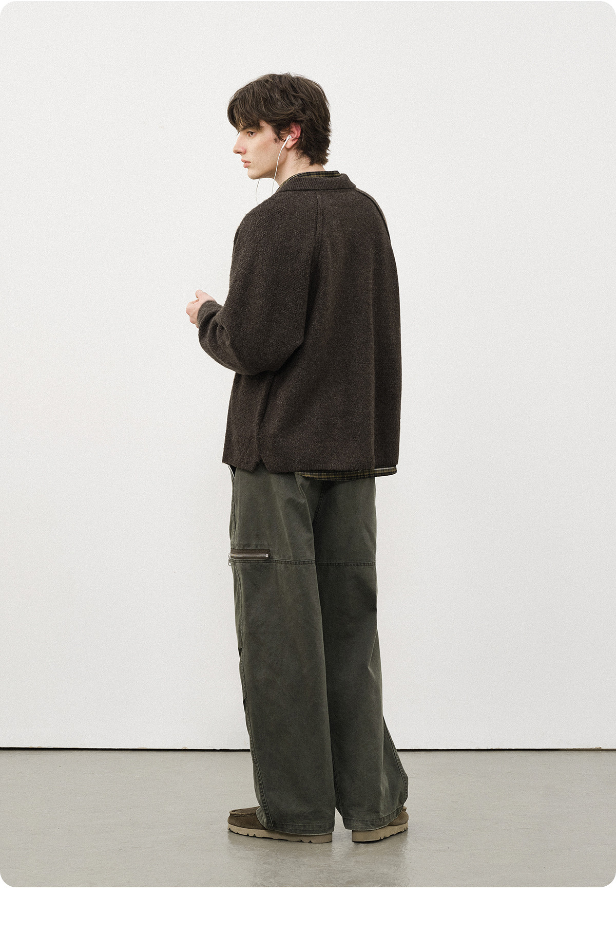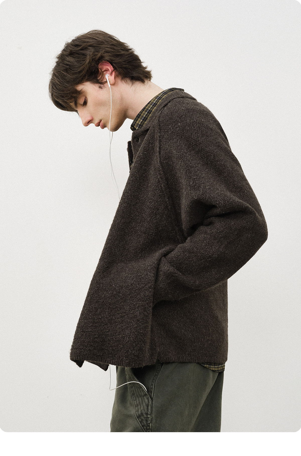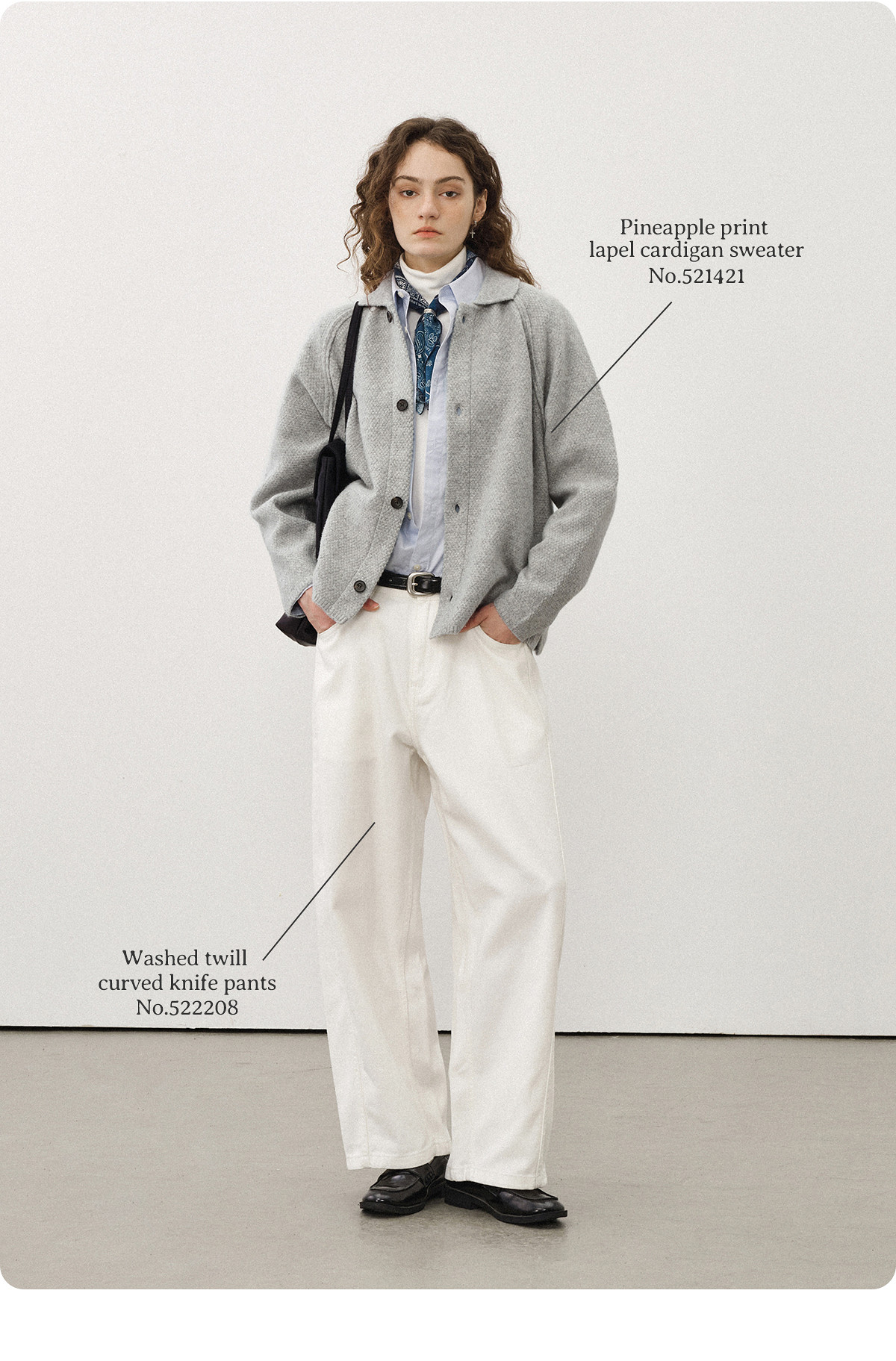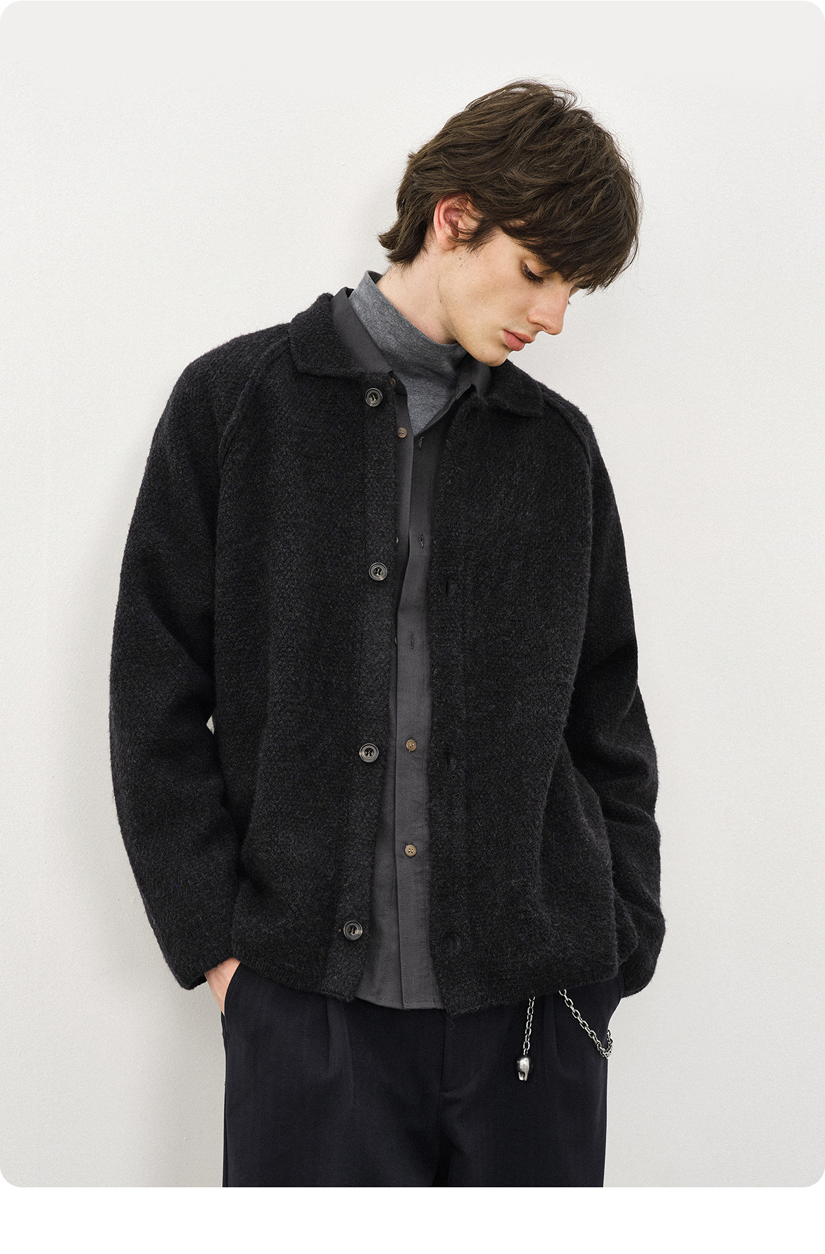 714street菠萝纹情侣翻领毛衣开衫男2025秋冬cleanfit针织外套女