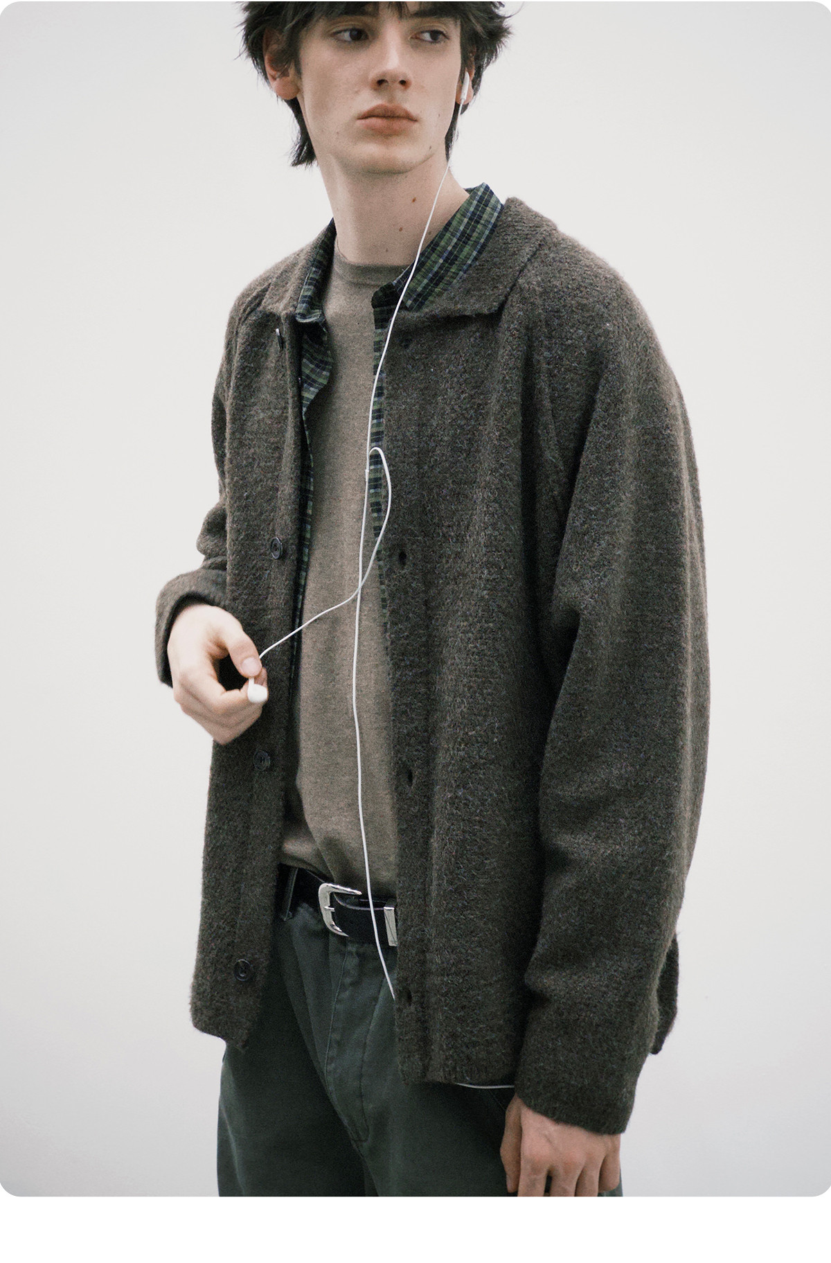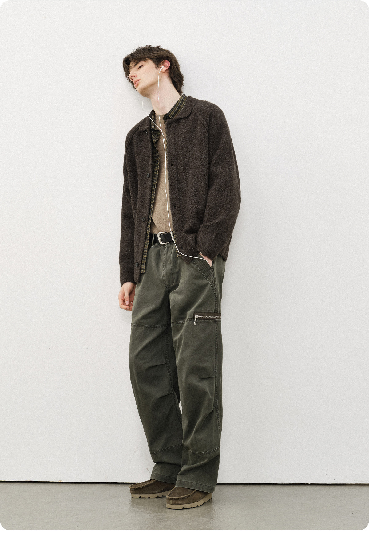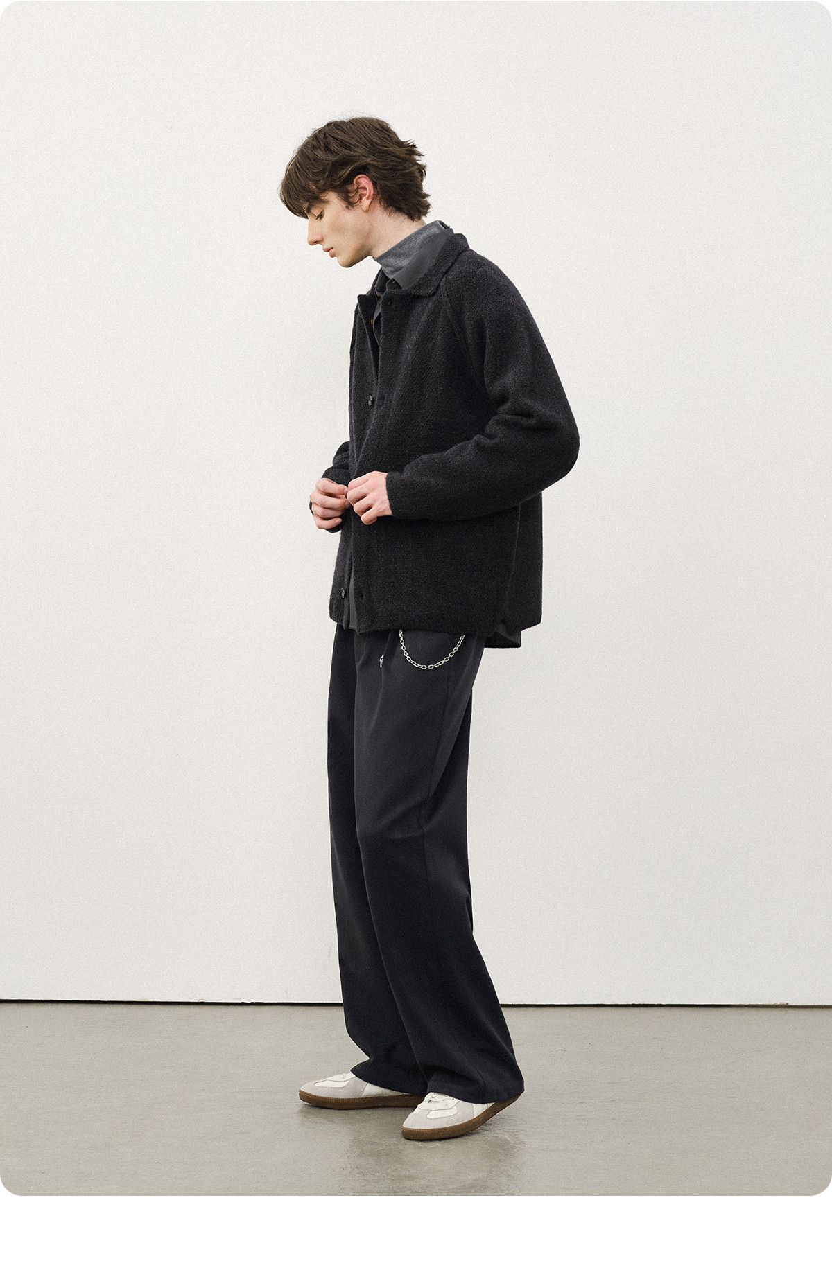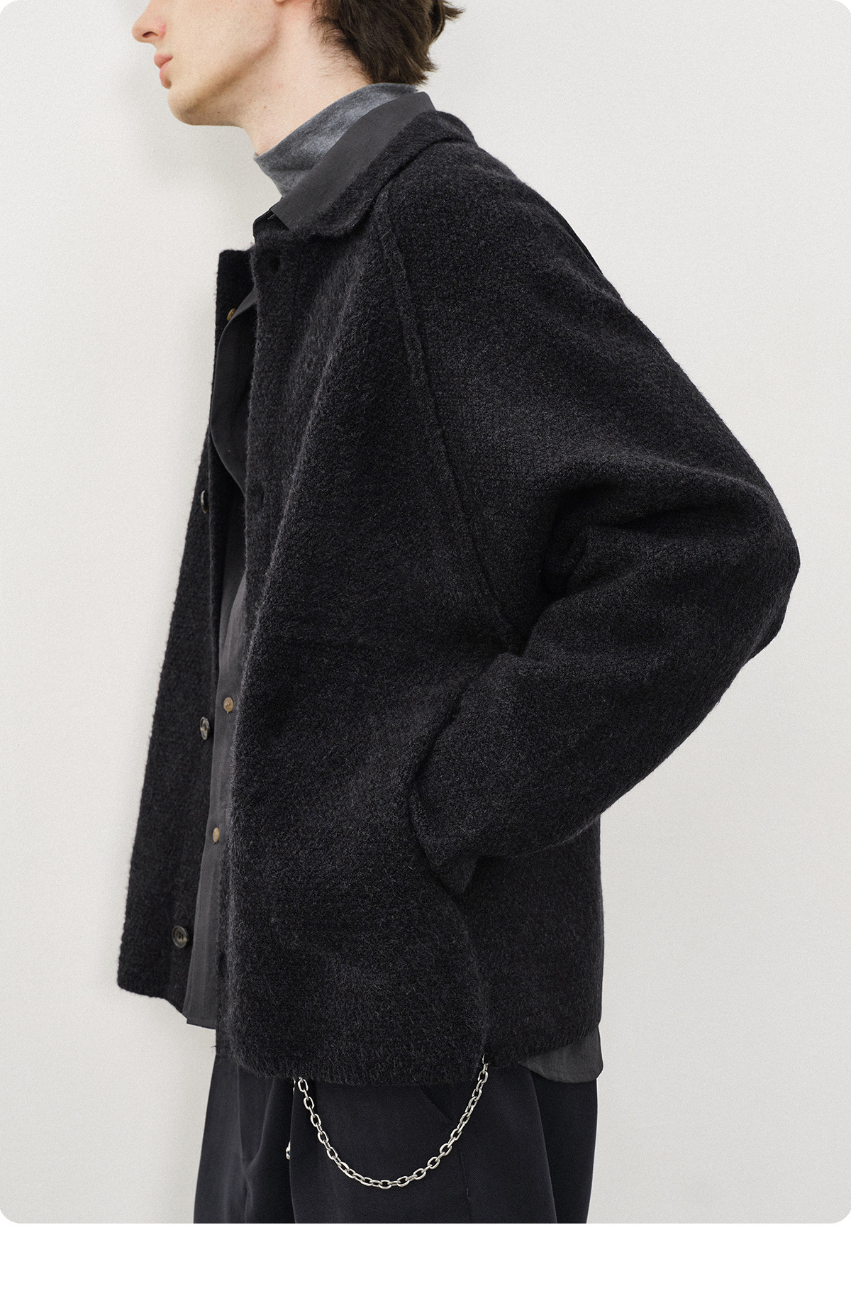 714street菠萝纹情侣翻领毛衣开衫男2025秋冬cleanfit针织外套女