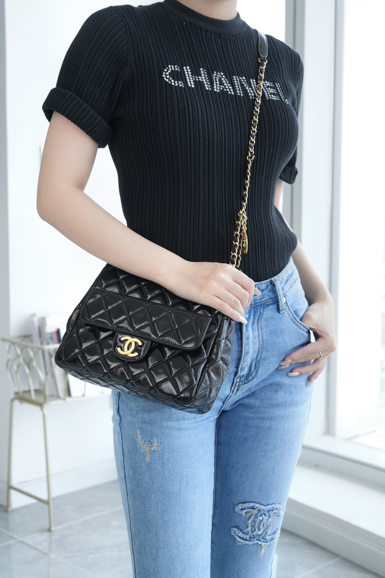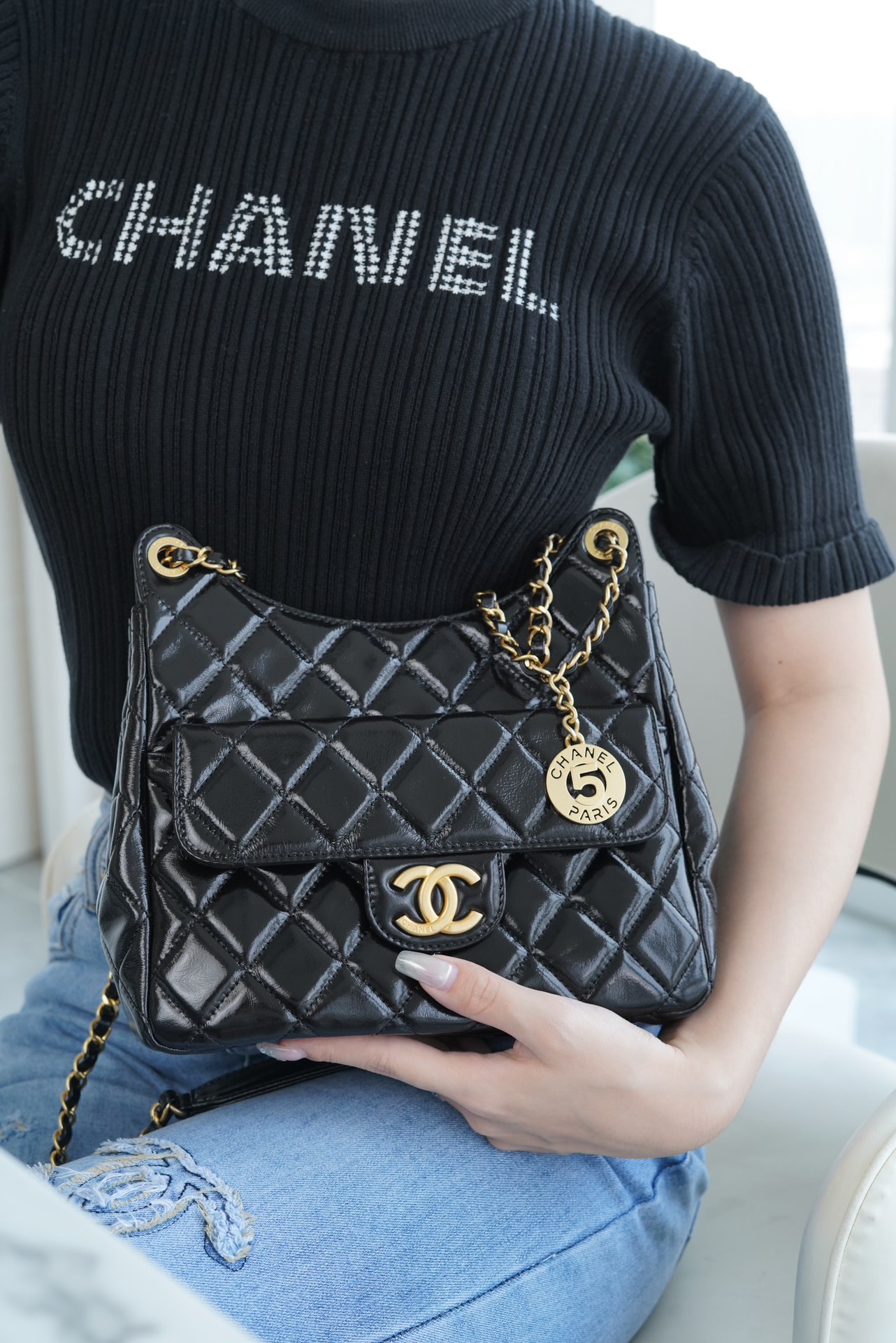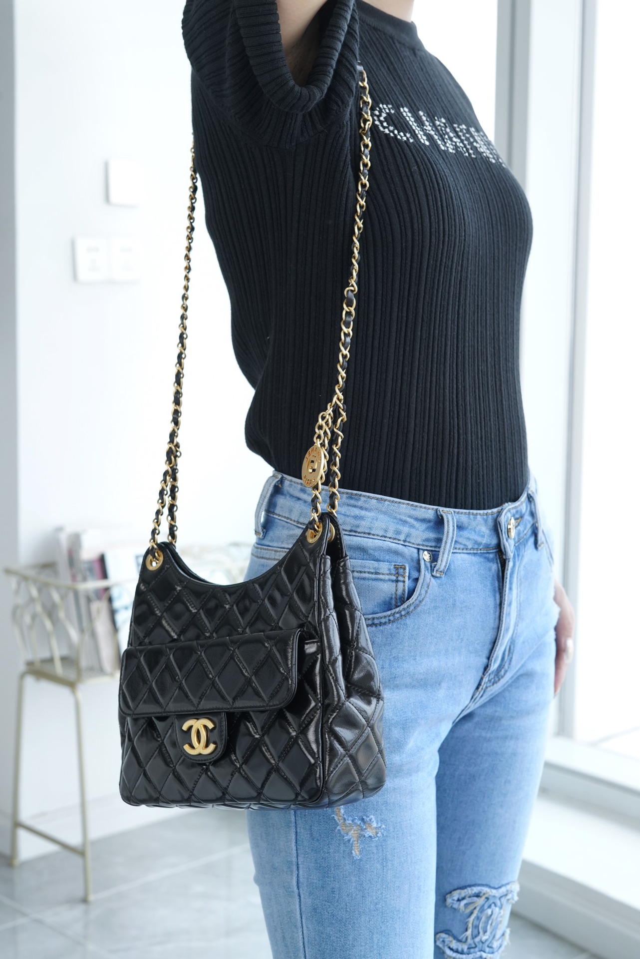 香奶奶  23 早春度假系列  流浪包  黑 中号天猫精灵 商品图3