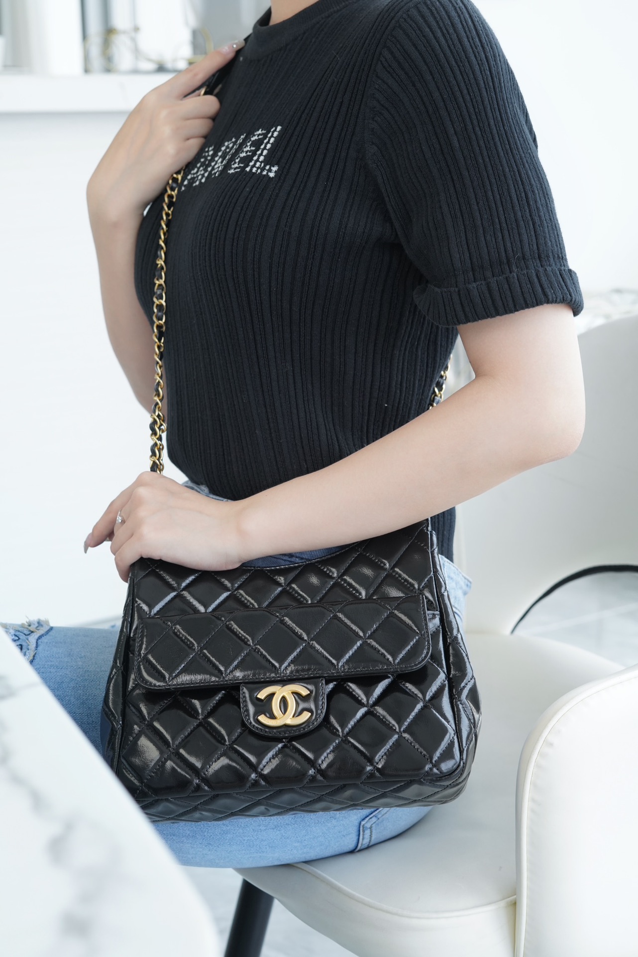 香奶奶  23 早春度假系列  流浪包  黑 中号天猫精灵 商品图2