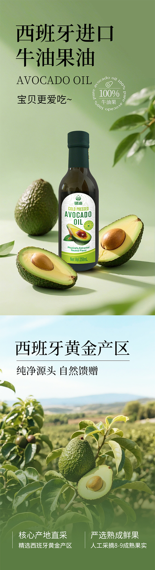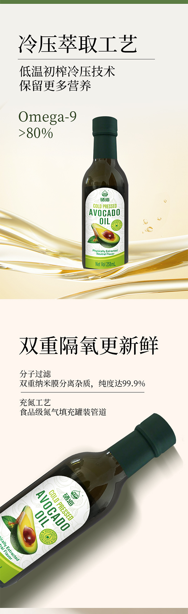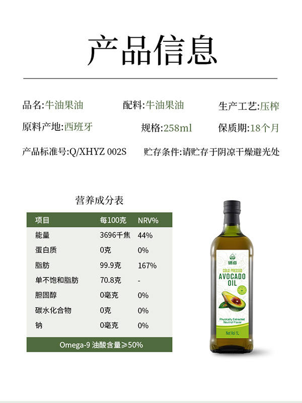 硒海鲜榨牛油果油258ml