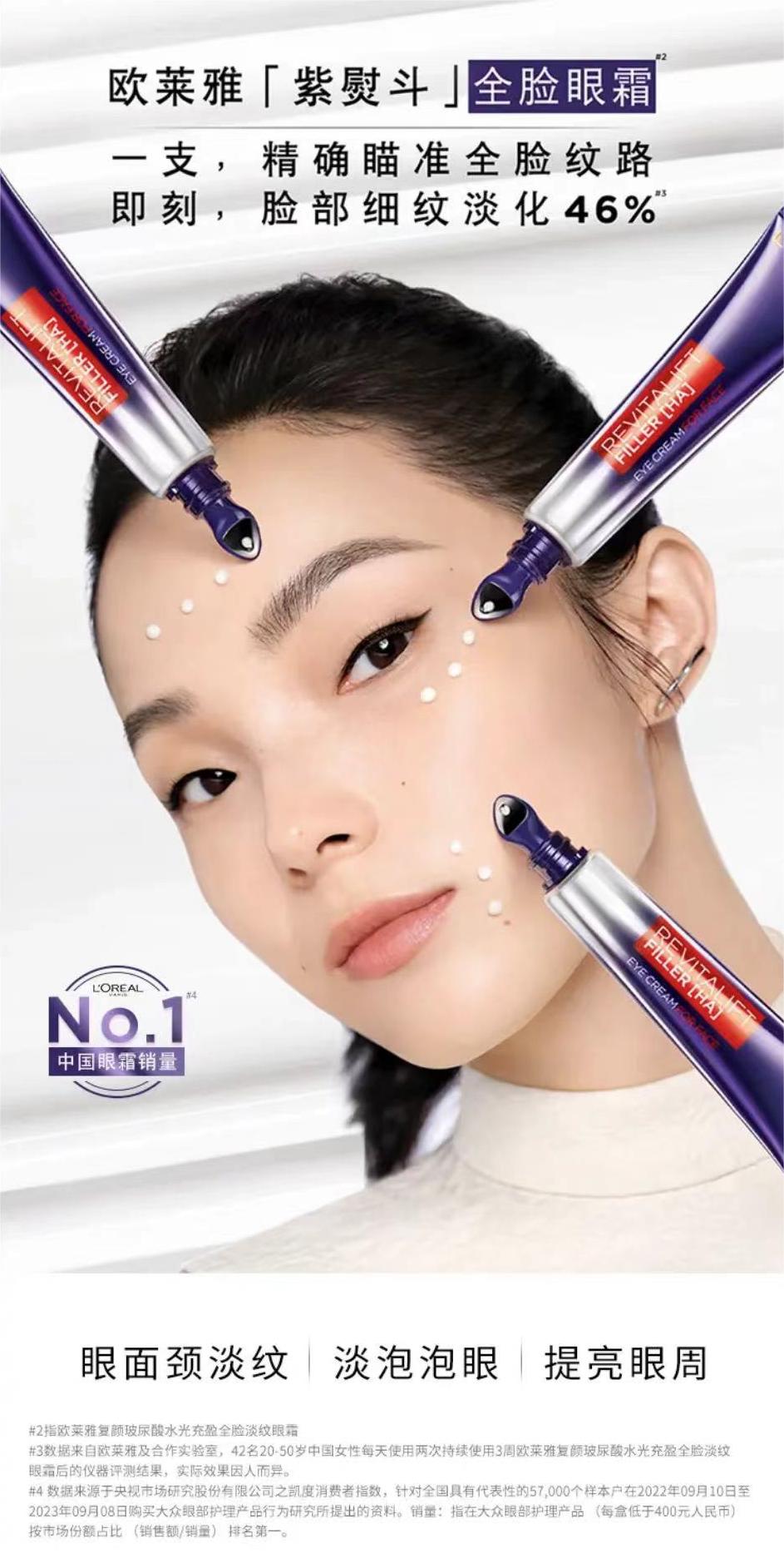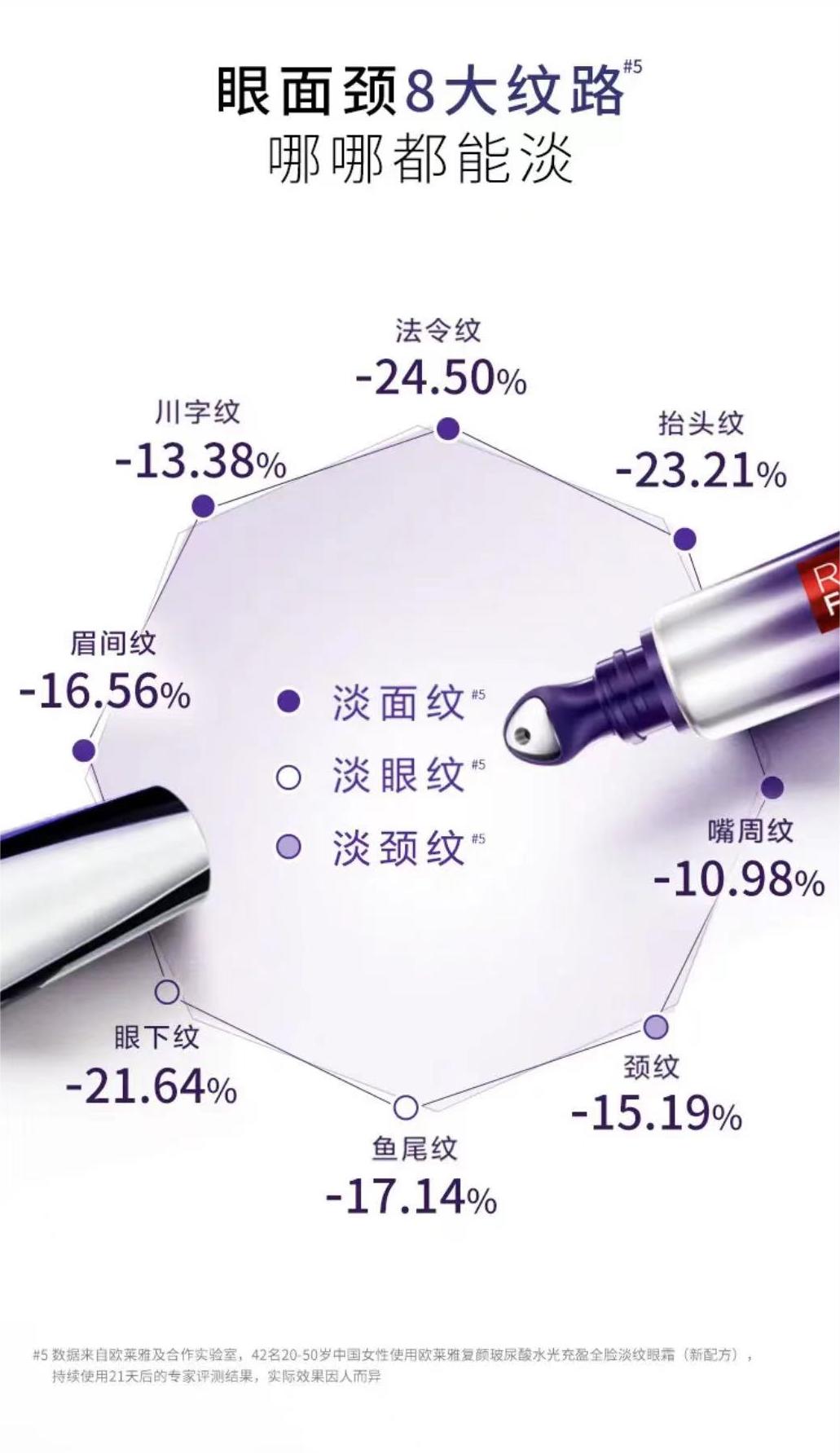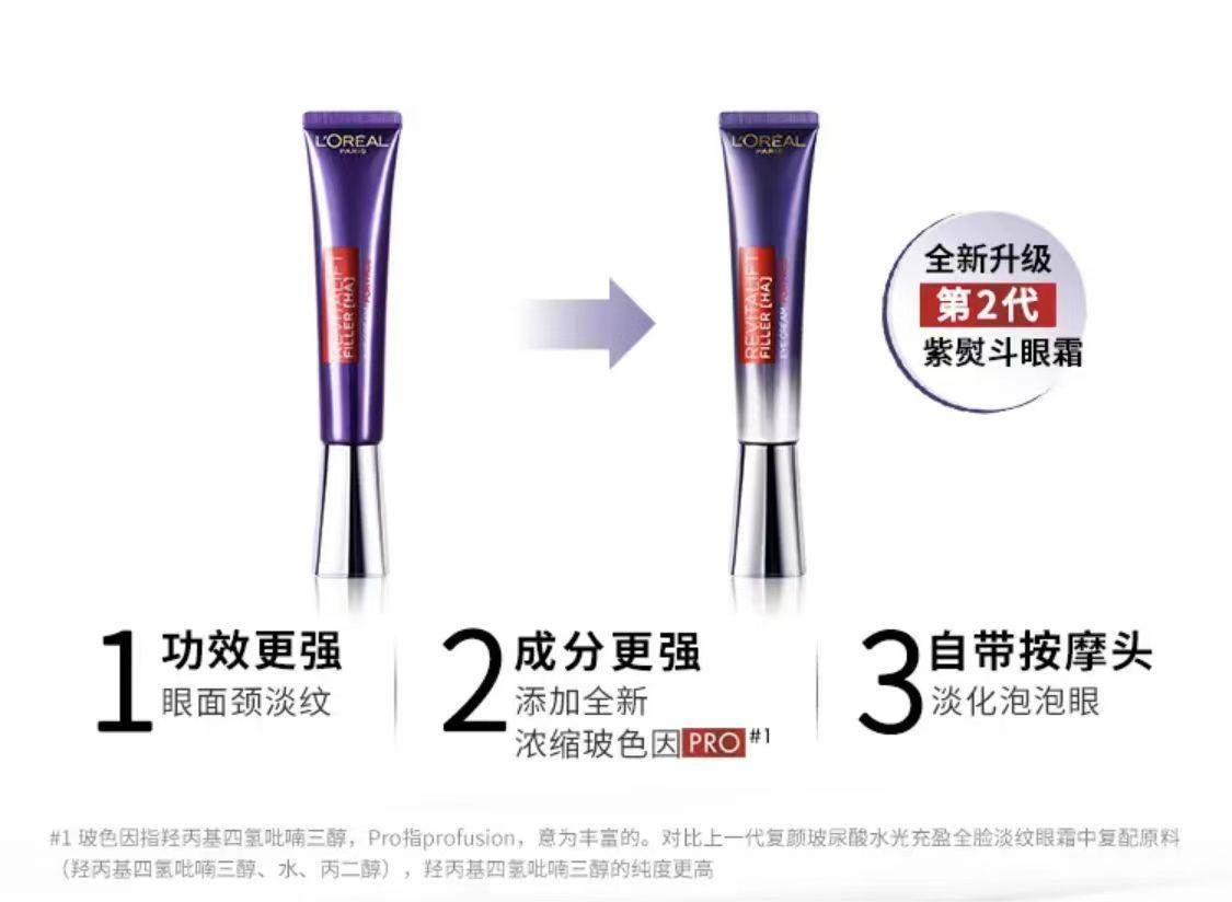 欧莱雅紫熨斗玻色因全脸淡纹眼霜眼部紧致抗皱淡化细纹