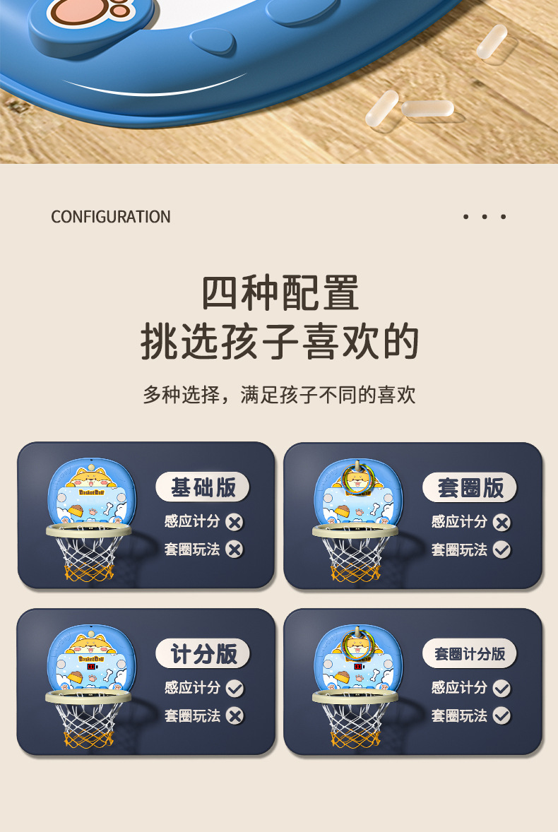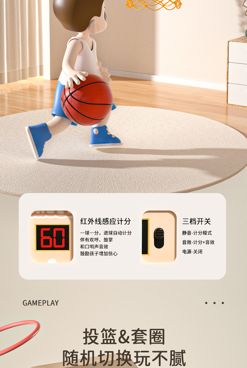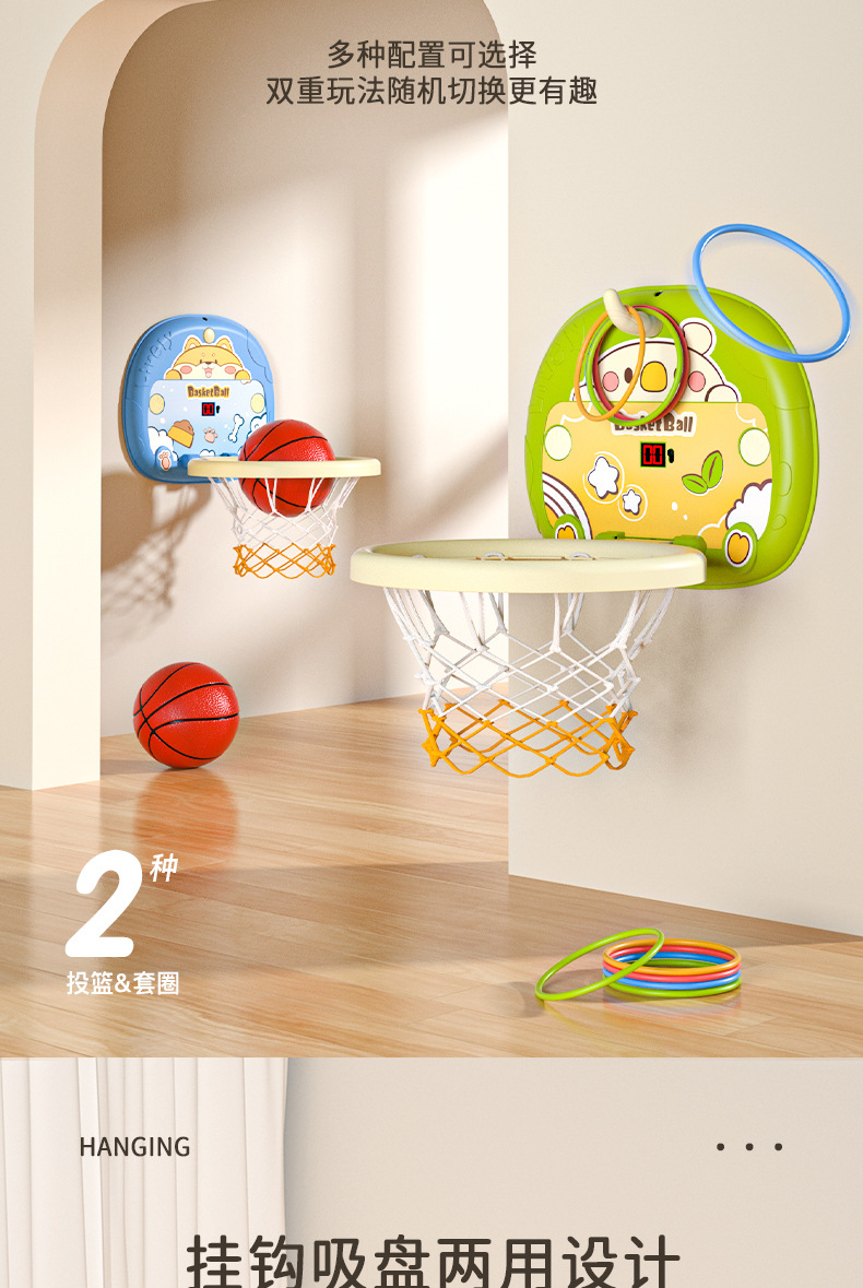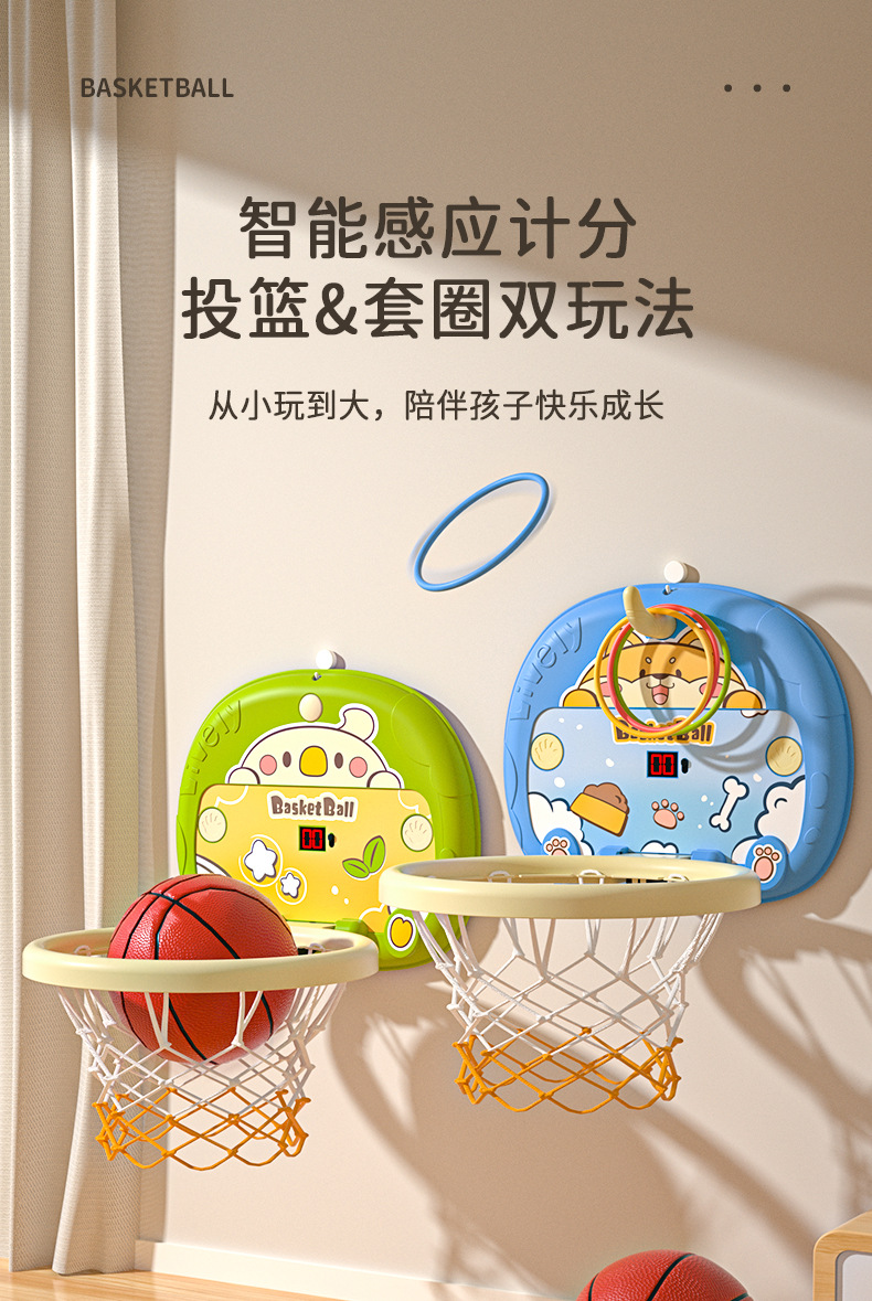 【新年不打烊】【智能感应计分篮球板】可折叠收纳儿童篮球架玩具 室内篮球框 投篮&套圈双玩法 从小玩到大