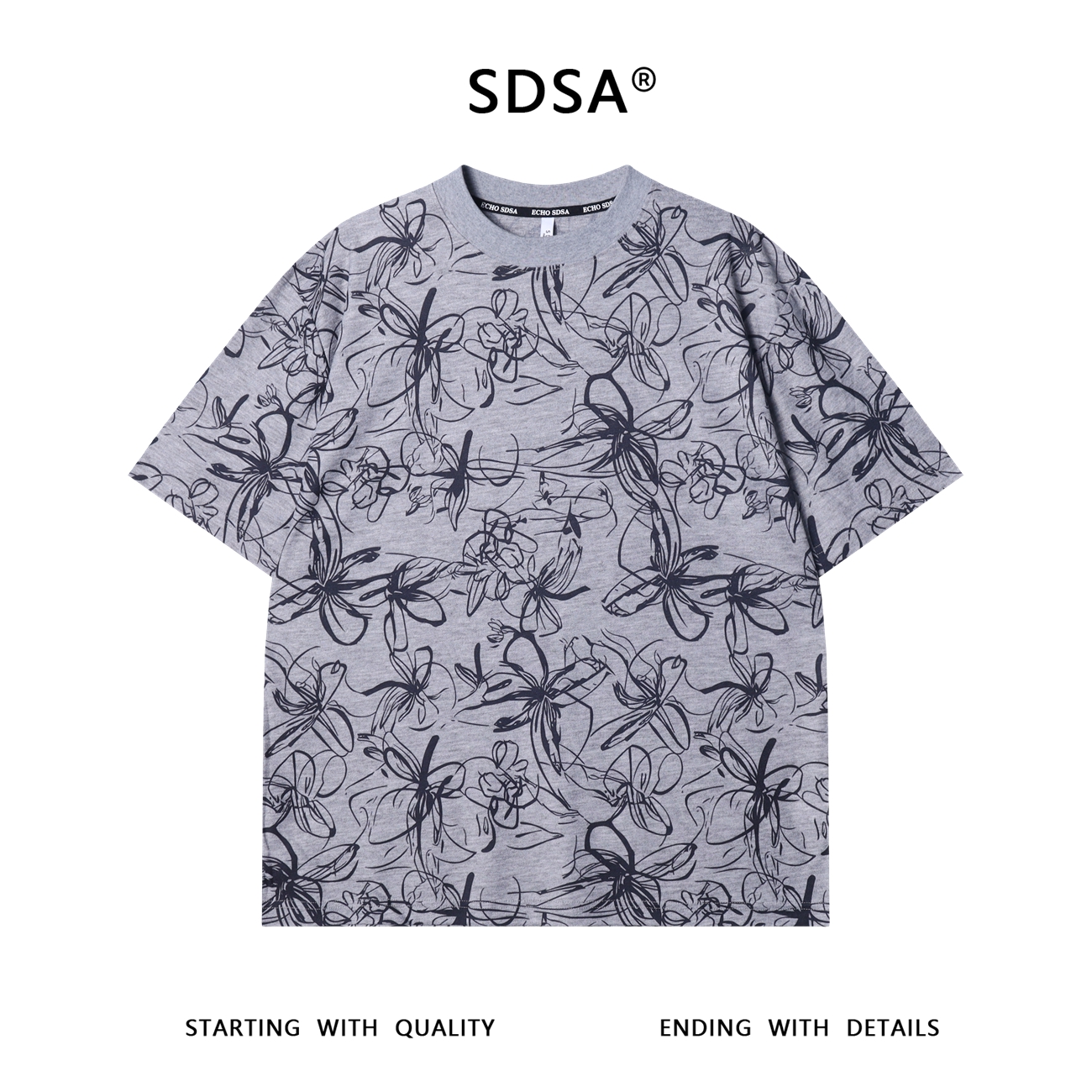 T3543夏季高级感新款男士美式扎染破烂设计圆领短袖T恤高街时尚上衣