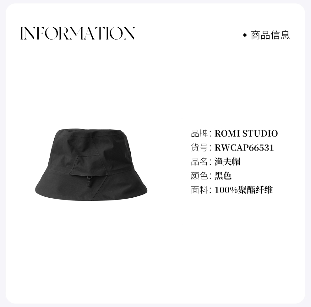 ROMI STUDIO“轻薄无物”户外防水软壳面料可调节渔夫帽RWCAP66531
