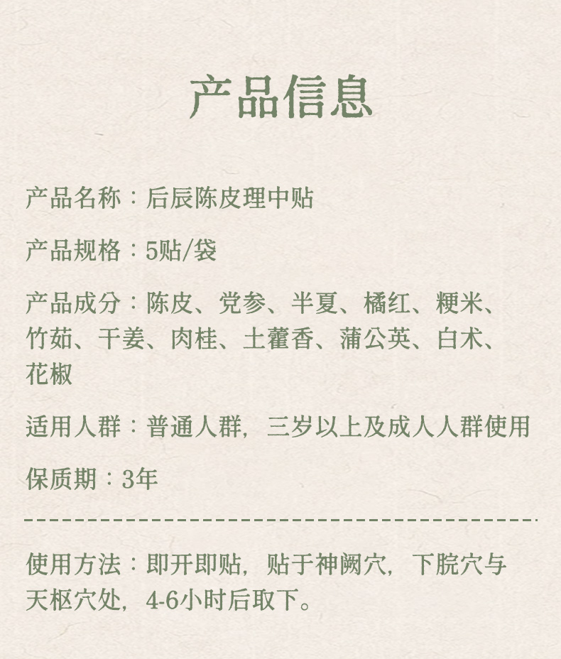 后辰【陈皮理中贴】脾胃贴艾草贴草本肚肚贴热敷缓解草本亲肤