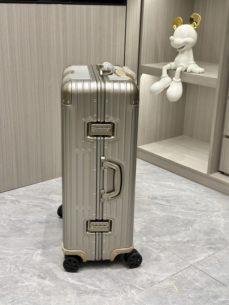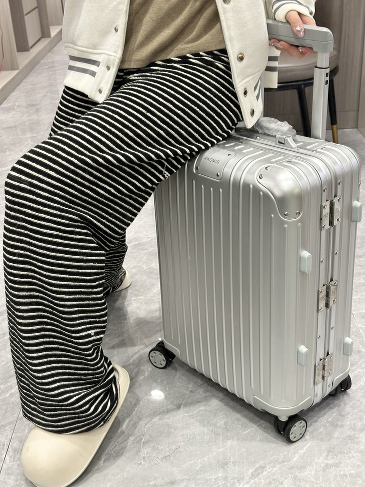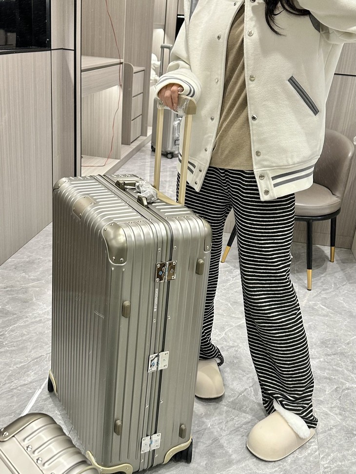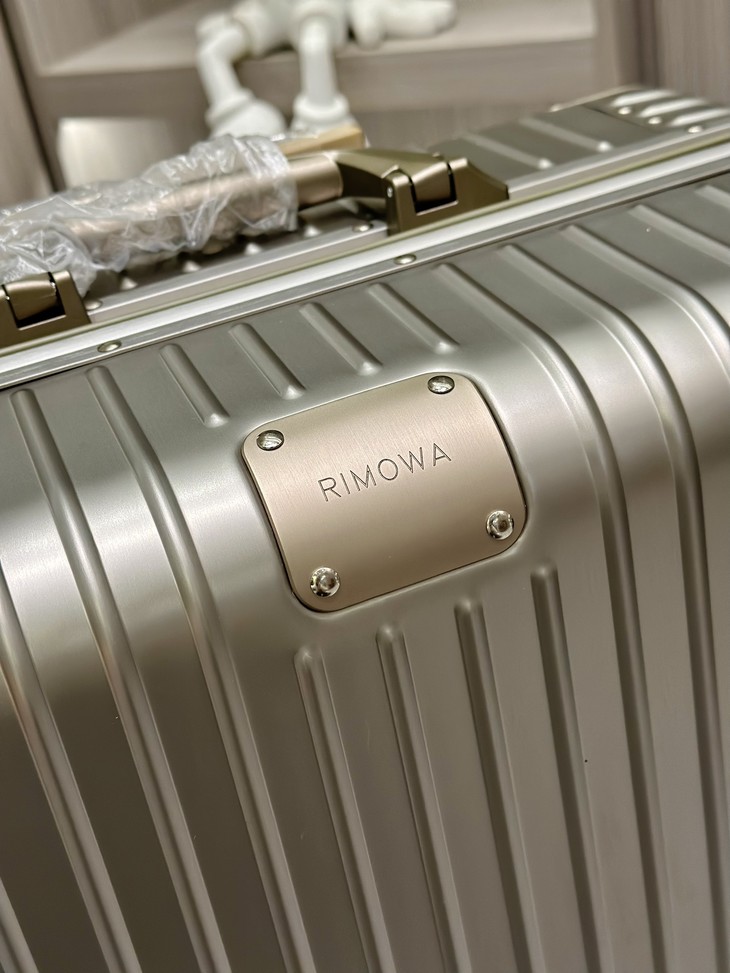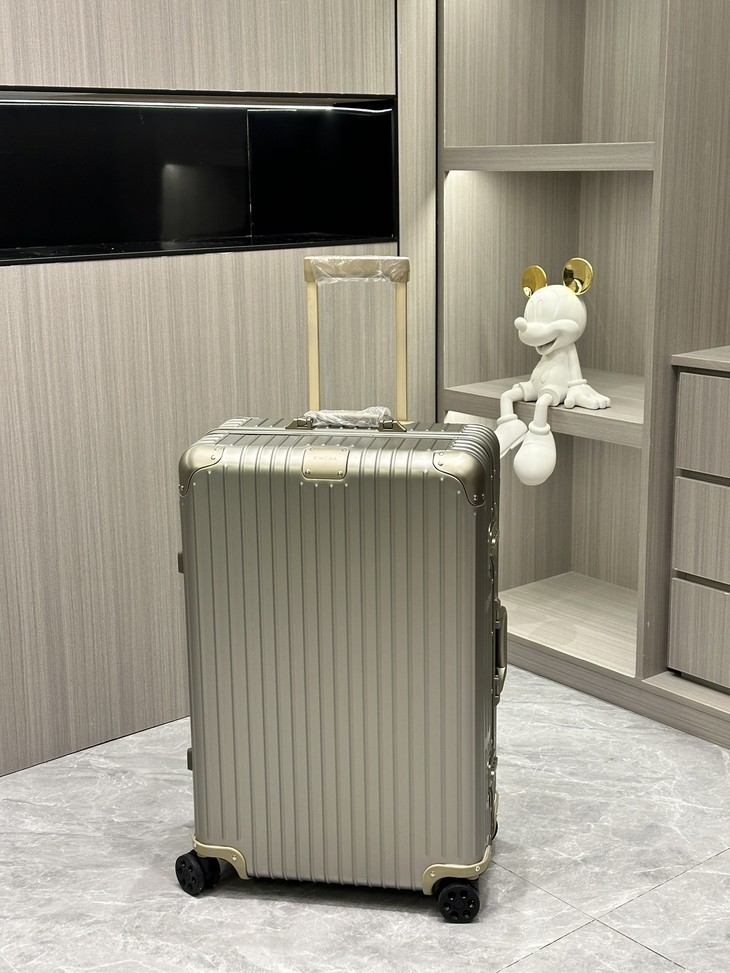 RIMOWA Original全新系列行李箱 纯原标准登机箱 每一款都有自己数字型号! 碰撞金属质感✨ 彰显极简现代风范 而且大半个娱乐圈全都在使用,他的影响力可算是吵架大。除了良好的性能之外,在这就是行李箱颜值方面,它绝对算得上 排名前三的 佼佼者! 质感带来的美是色彩比不了的 永远的铝镁合金 经典的就是耐得住时间的 个性鲜明的铝镁合金制 RIMOWA Original 持有标志性的行李箱设计,由高端阳极氧化铝制作的,有多么好用 我相信大家的眼光是雪亮的,这么多人都选择它,肯定是经过了大众使用过后在,推荐给大家,旅游旺季已经来临,正巧需要换行李箱的,看过来,绝对让你实现了前所未有的坚硬与轻巧,成为工艺与创新的上佳典范。 ORIGINAL系列,个性鲜明的铝镁合金制,拥有标志性的行李箱设计,确保经久耐用的同时,实现既坚硬又轻巧,成为工艺与创新的经典之作。随着政府对旅游业的扶持,最近出游的人增多,行李箱的订单也比以前多很多,如果您正在考虑购买,那么这一款就推荐给您。 一共三个颜色:银色、黑色、钛金、 尺寸:20、26、30 ✅20寸长宽高38.22.55 ✅26寸长宽高43.27.67 ✅30寸长宽高 50.28.78(6.7kg) 默认007海关锁 需定制006可联系客服