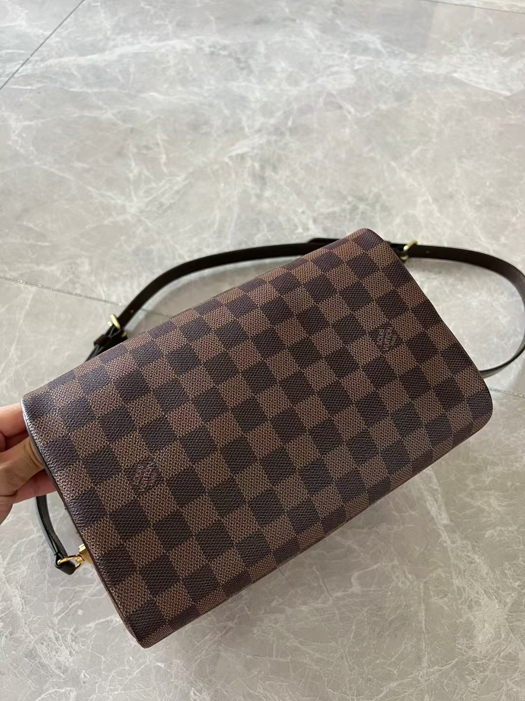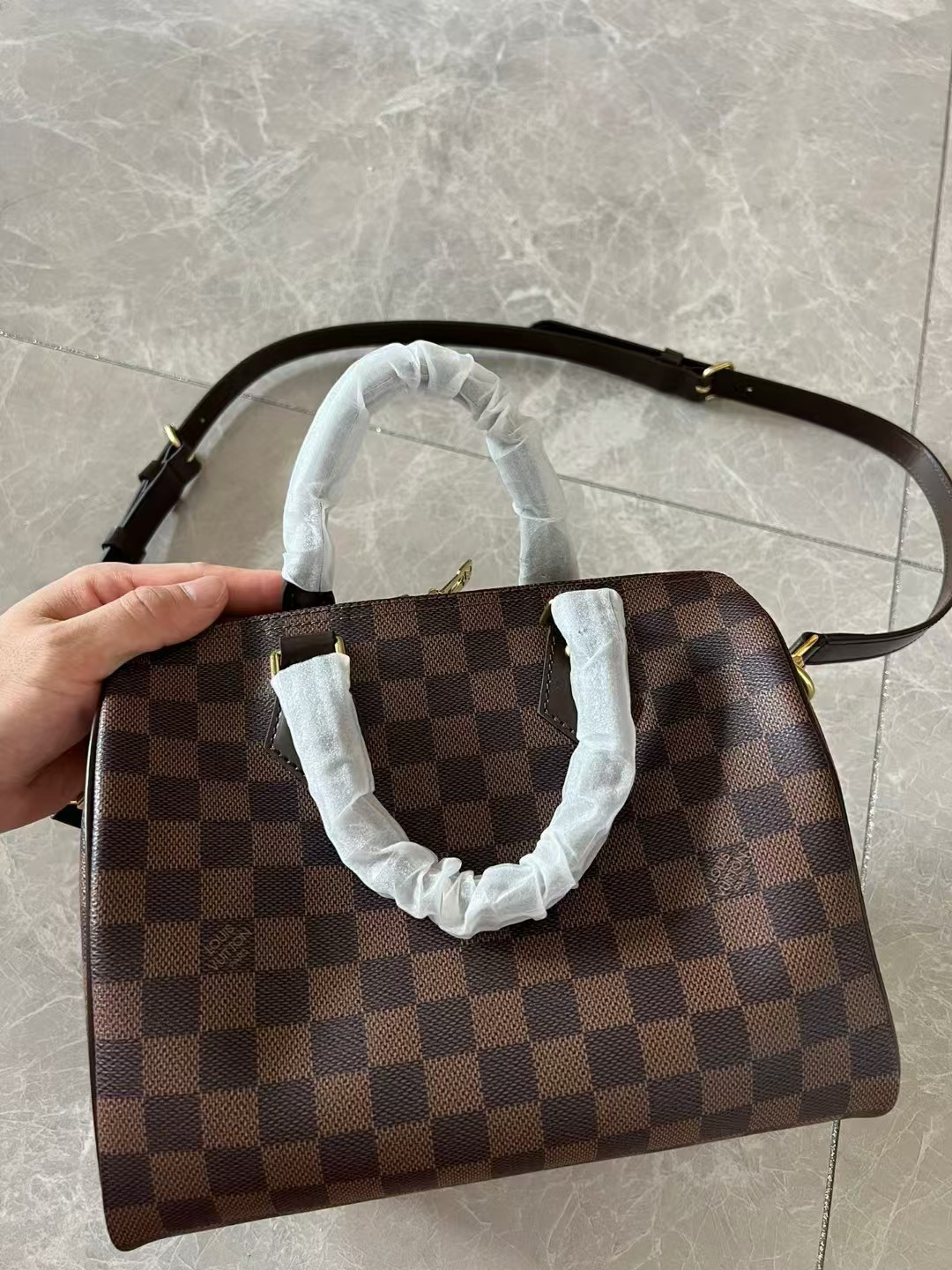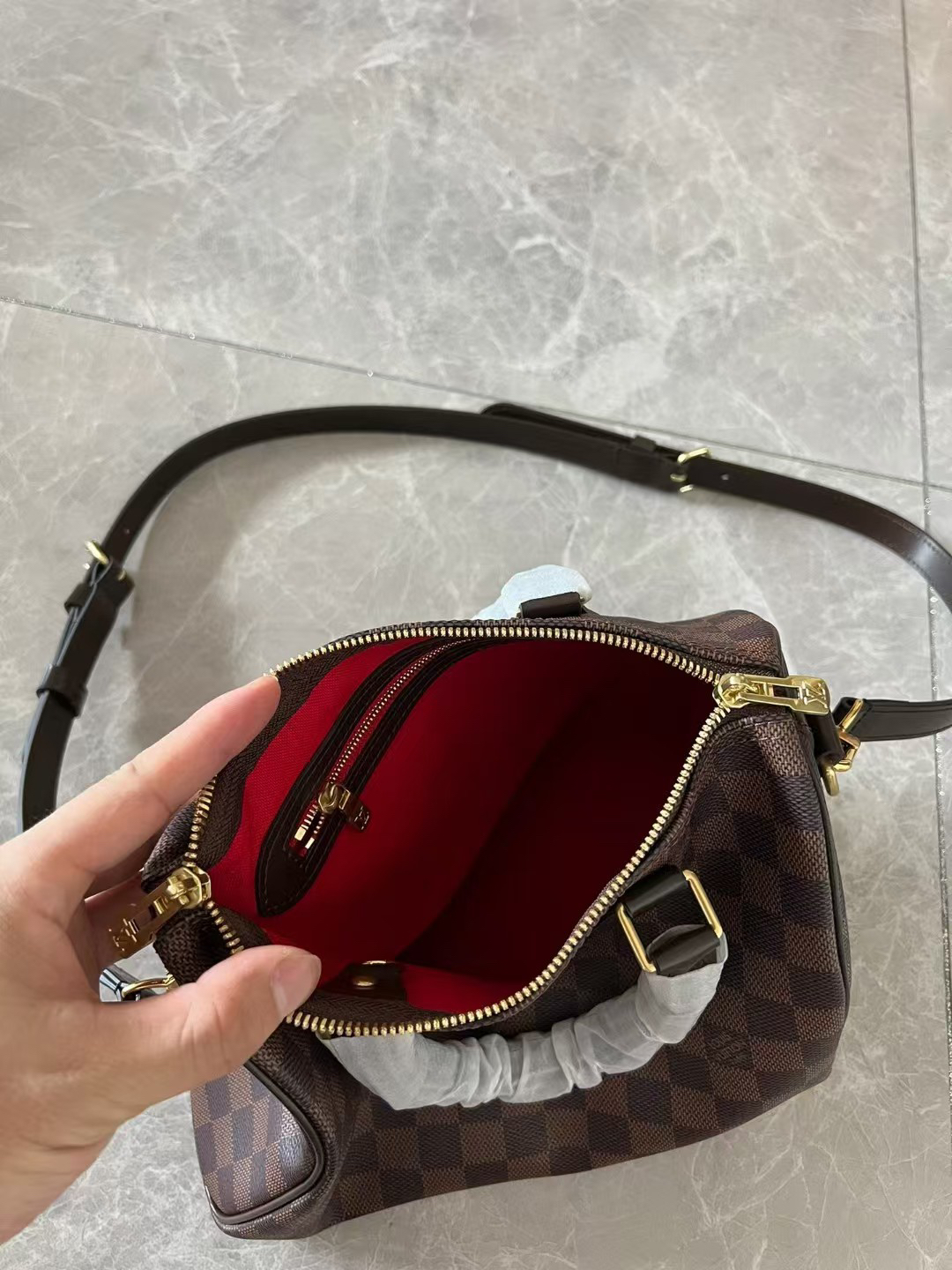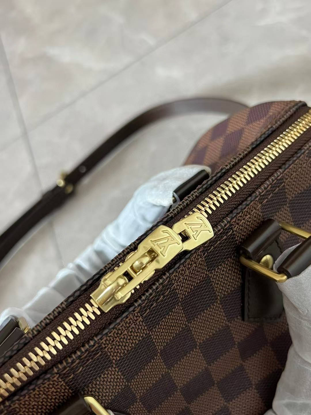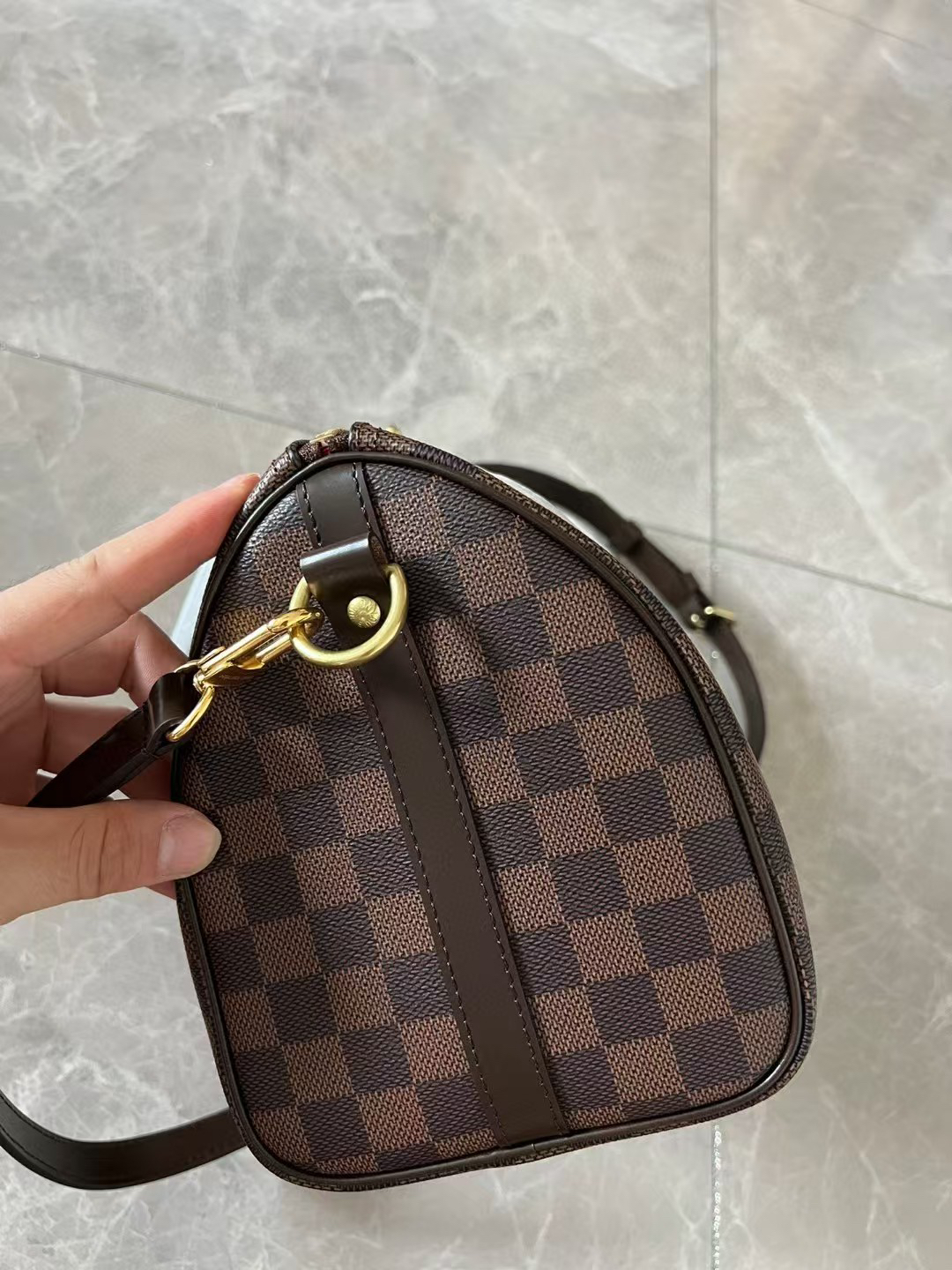 驴家|Speedy 25 棋盘格肩带款 牛皮拼帆布 枕头包单肩斜挎手提包 女款 棕褐色(HH)