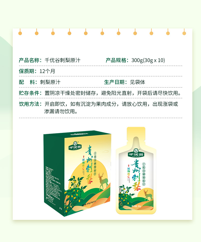 贵州黔南龙里县千优谷刺梨原汁植物维C便携装30ml*10袋