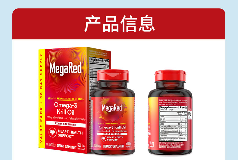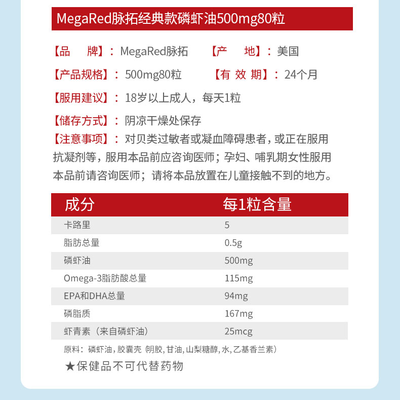 MegaRed脉拓经典磷虾油500mg80粒多规格