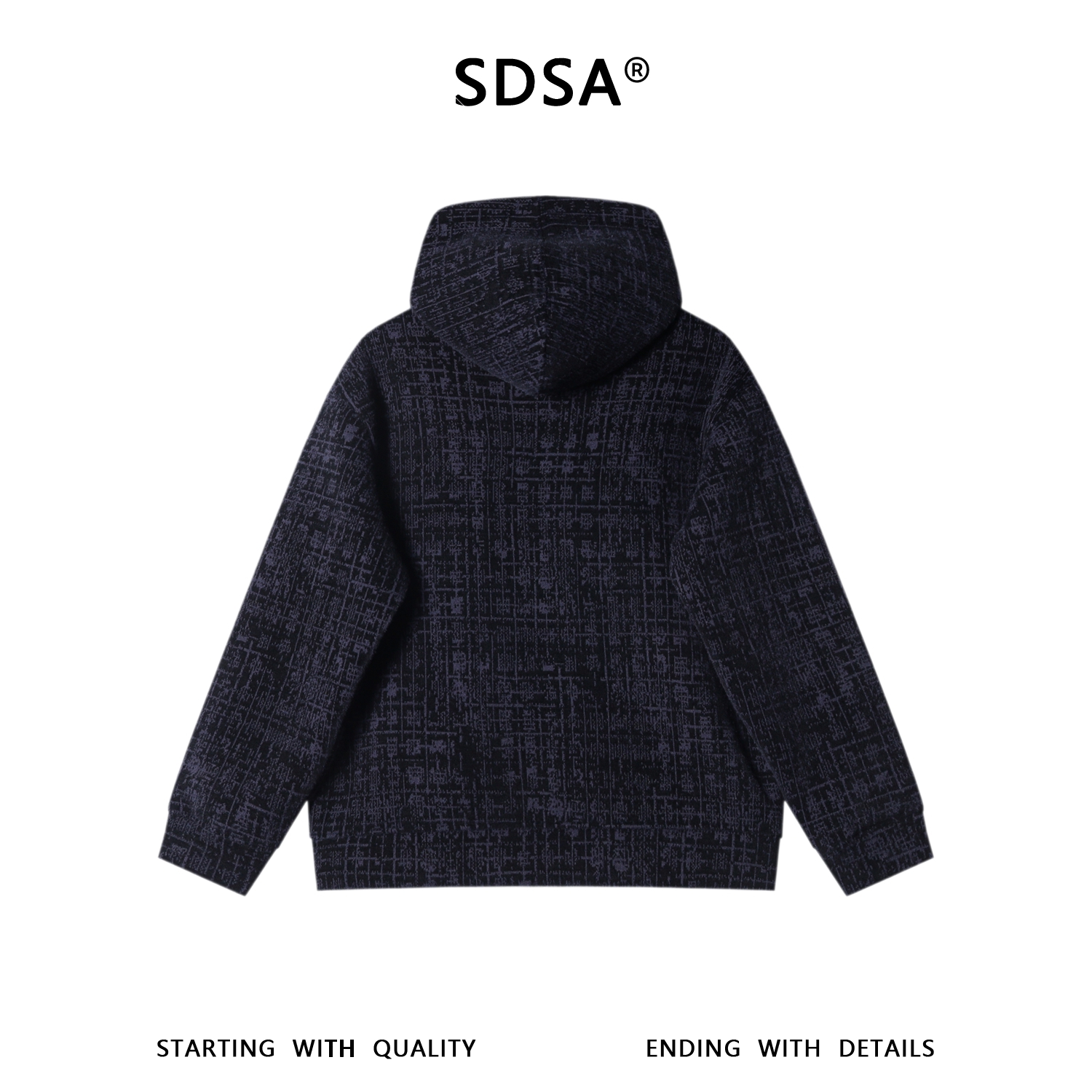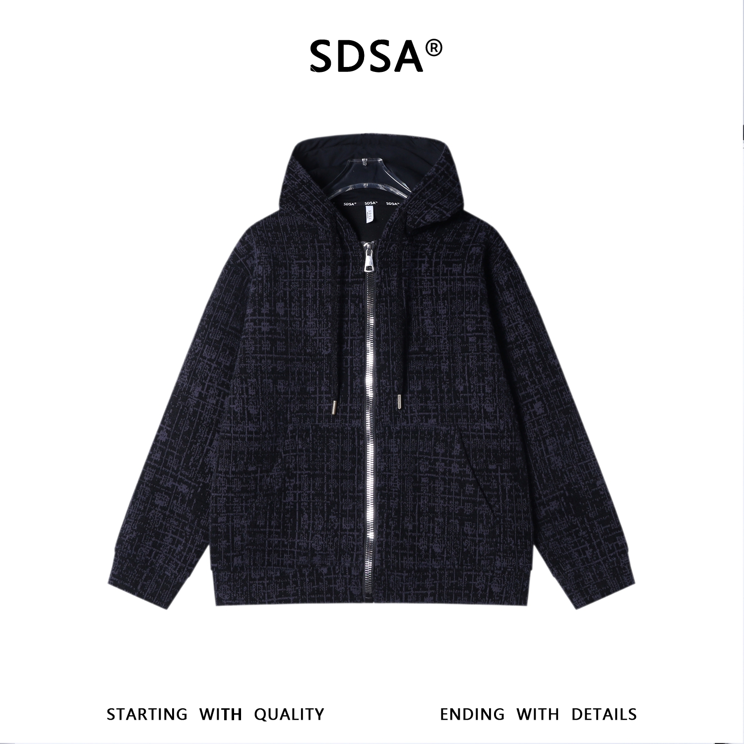 SDSA男士秋冬新款痞帅男装高级感提花格纹格子拉链连帽卫衣外套