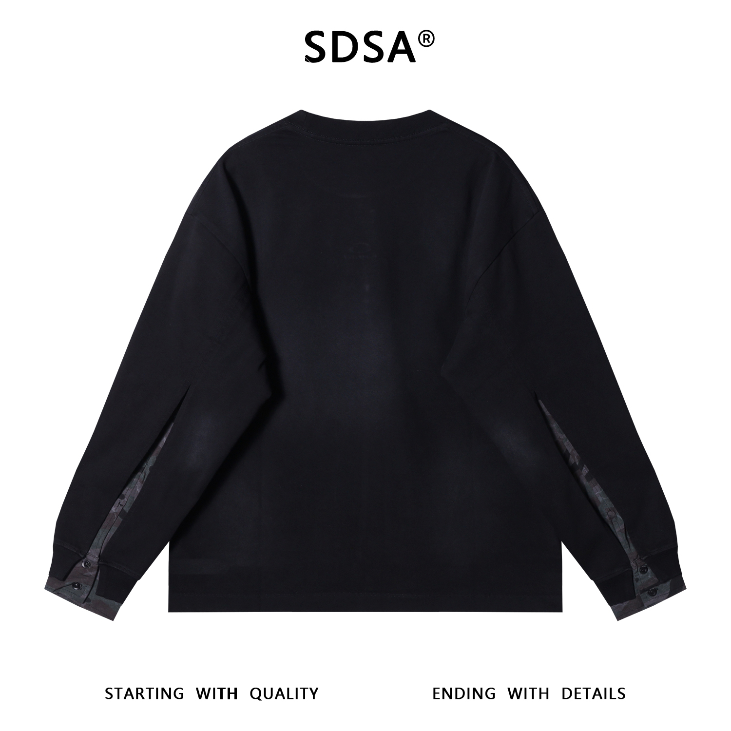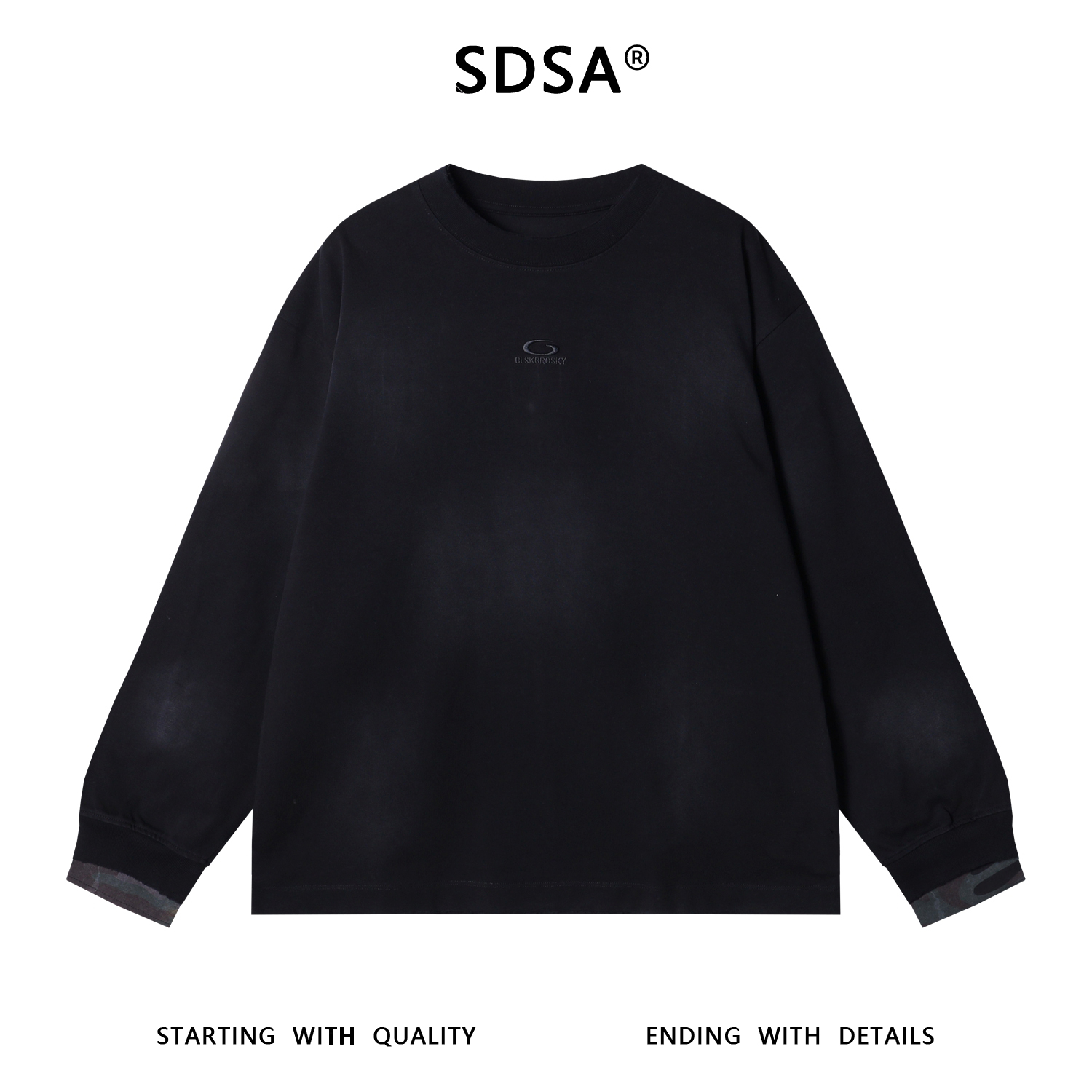 SDSA男士秋冬新款痞帅男装韩版胸前刺绣字母拼接圆领卫衣街头百搭