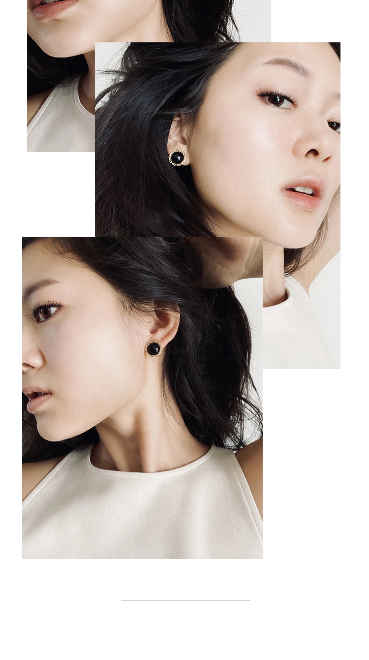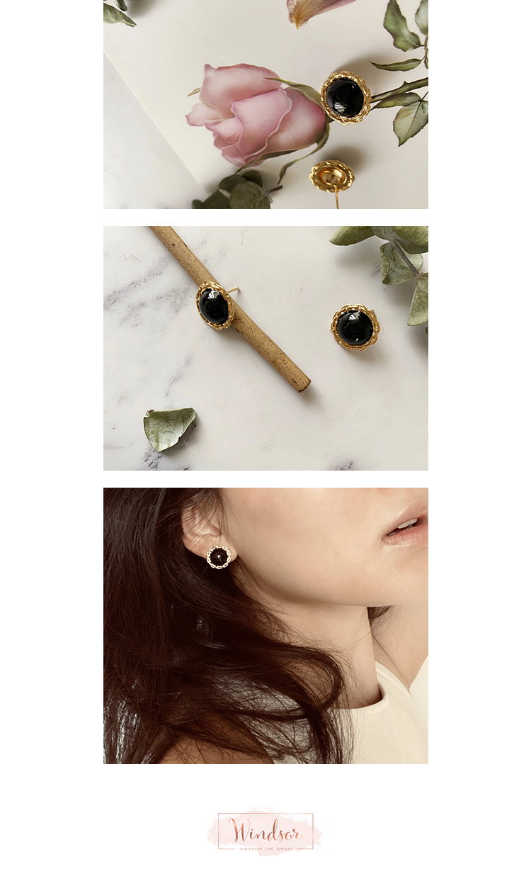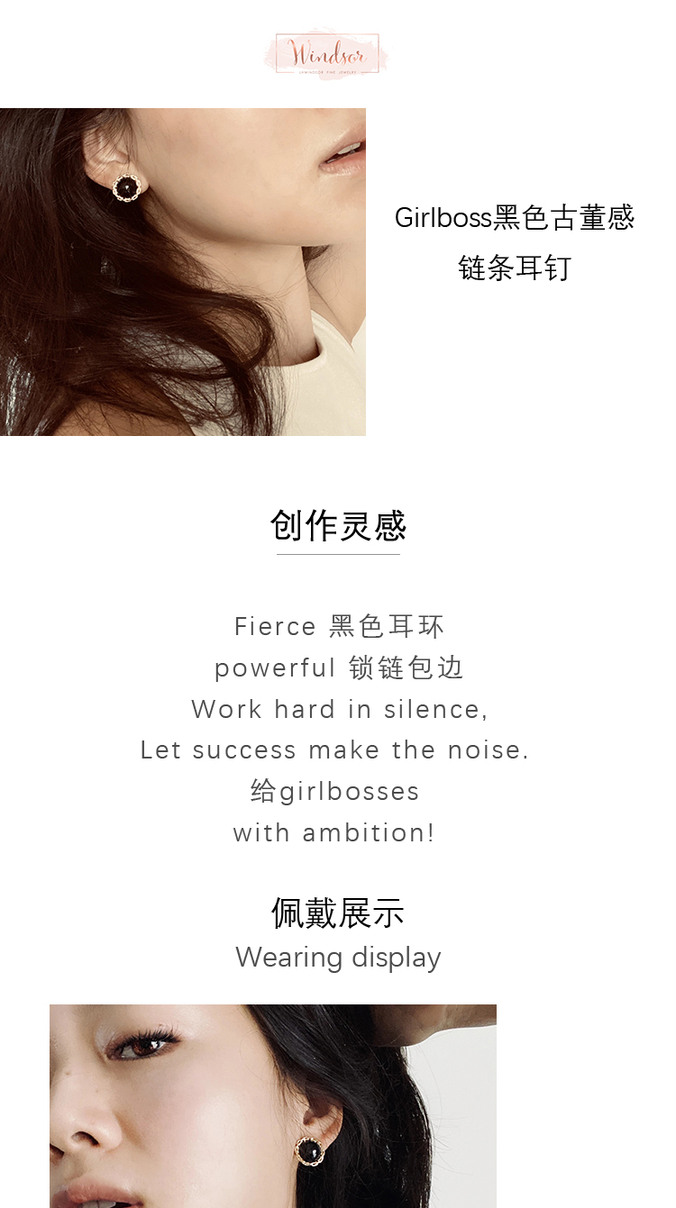LHWINDSOR Girlboss黑色古董感链条耳钉圆形简约链条包边小巧耳饰