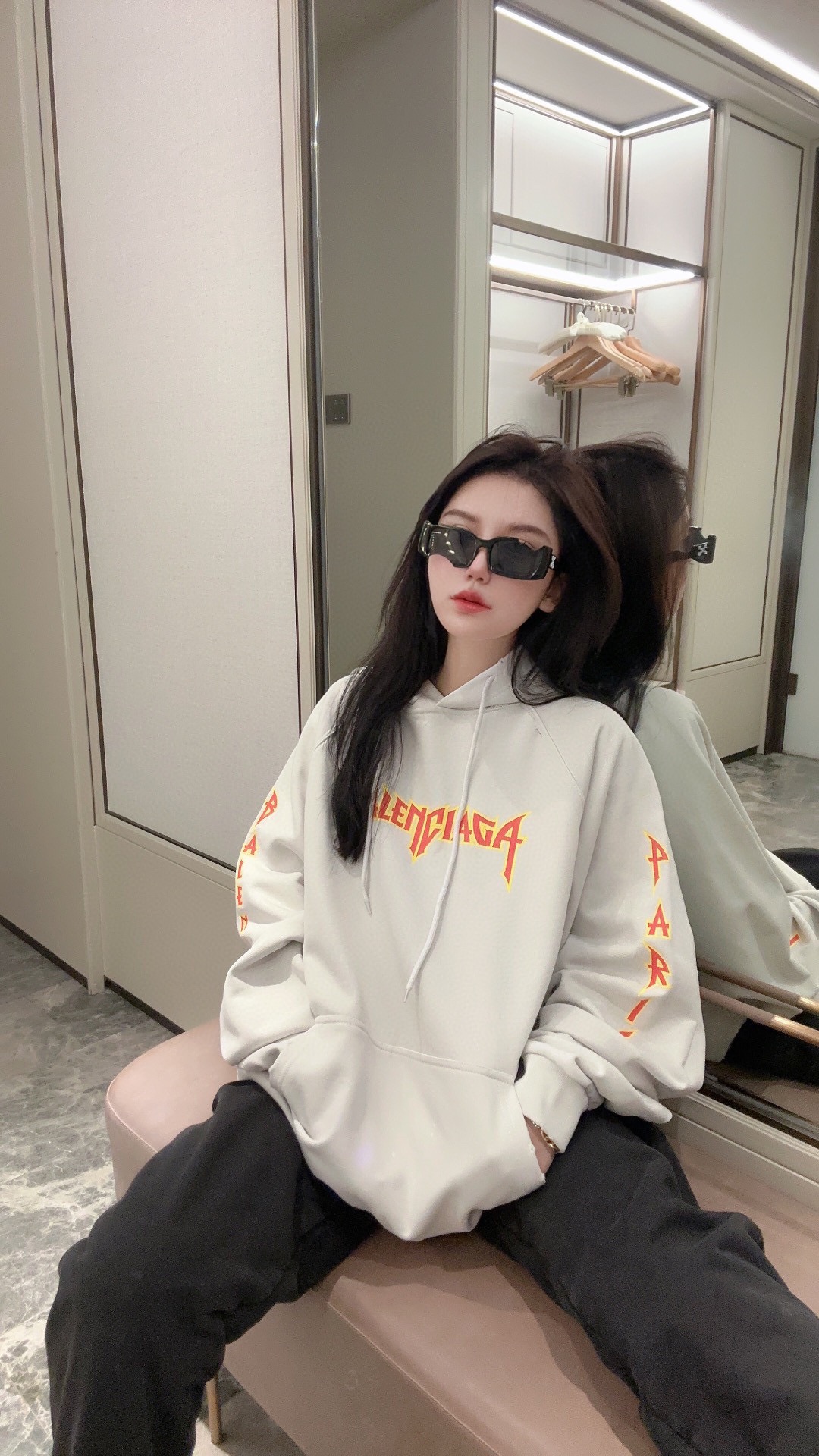BALENCI*GA 巴黎裂印泼墨连帽卫衣