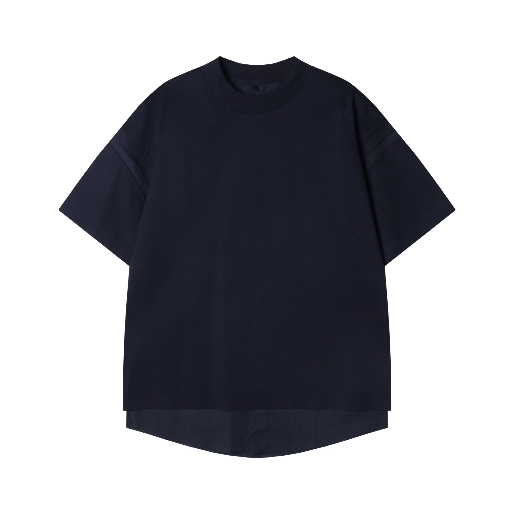 38698春夏新款时尚个性韩版纯色拼接圆领假两件短袖T恤潮流ins百搭上衣