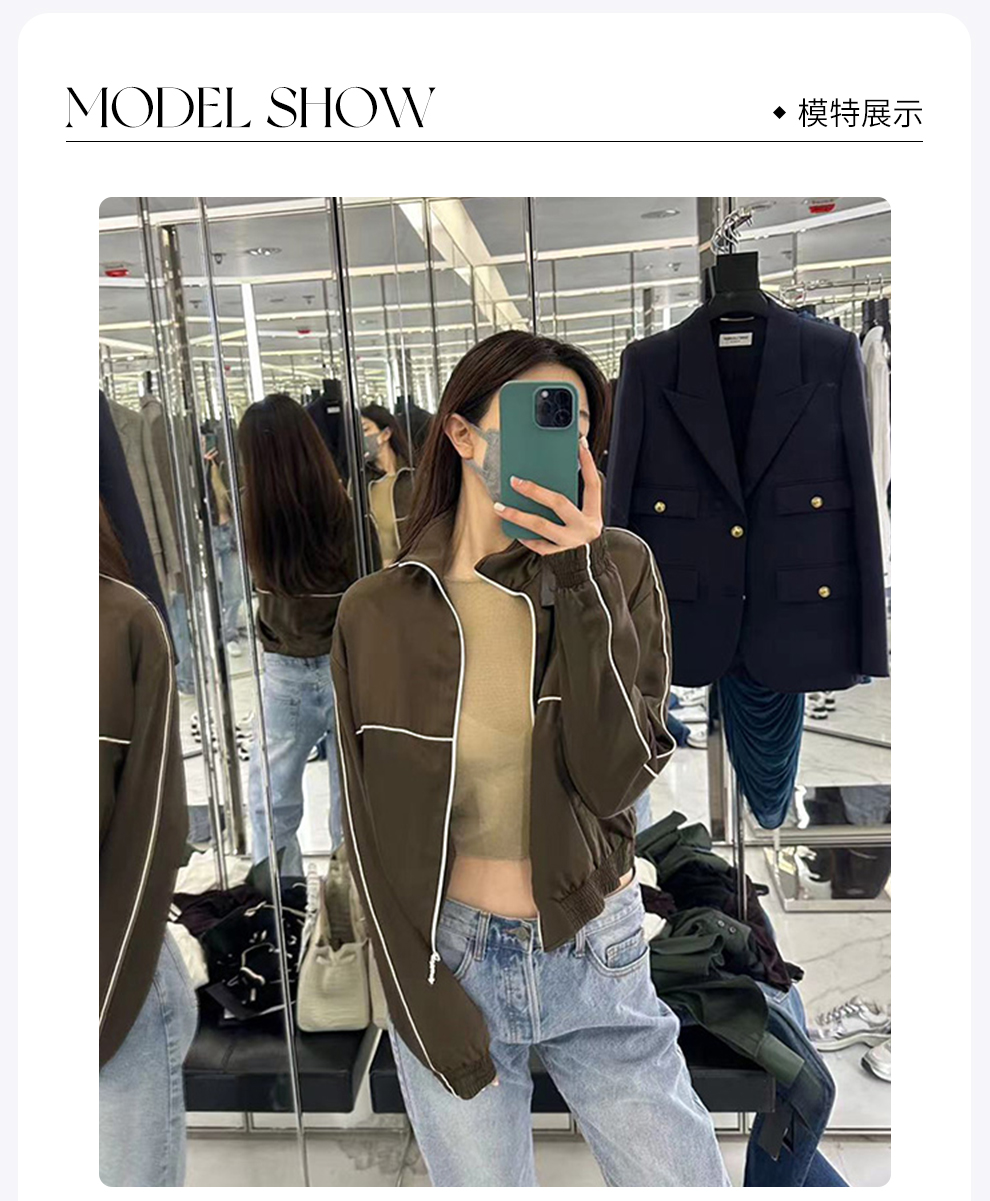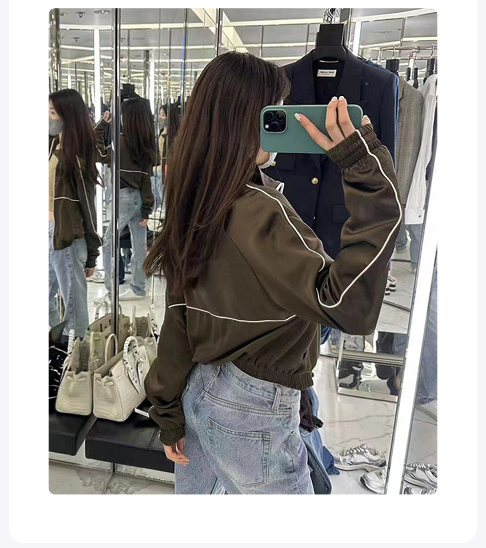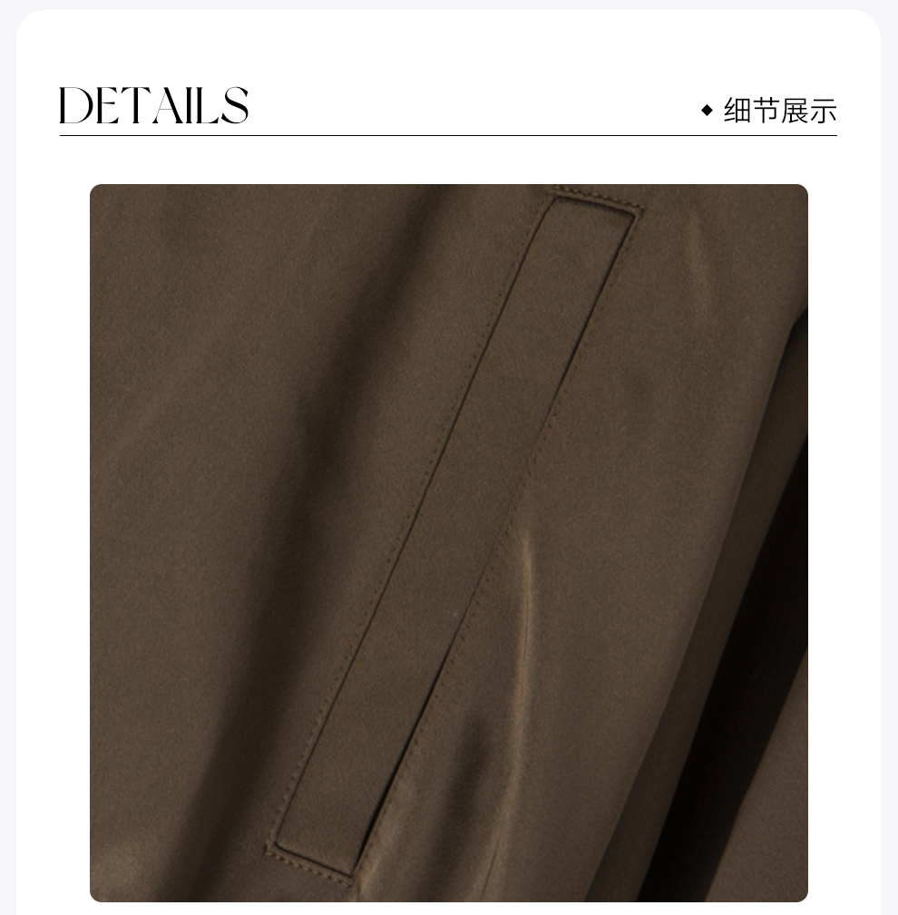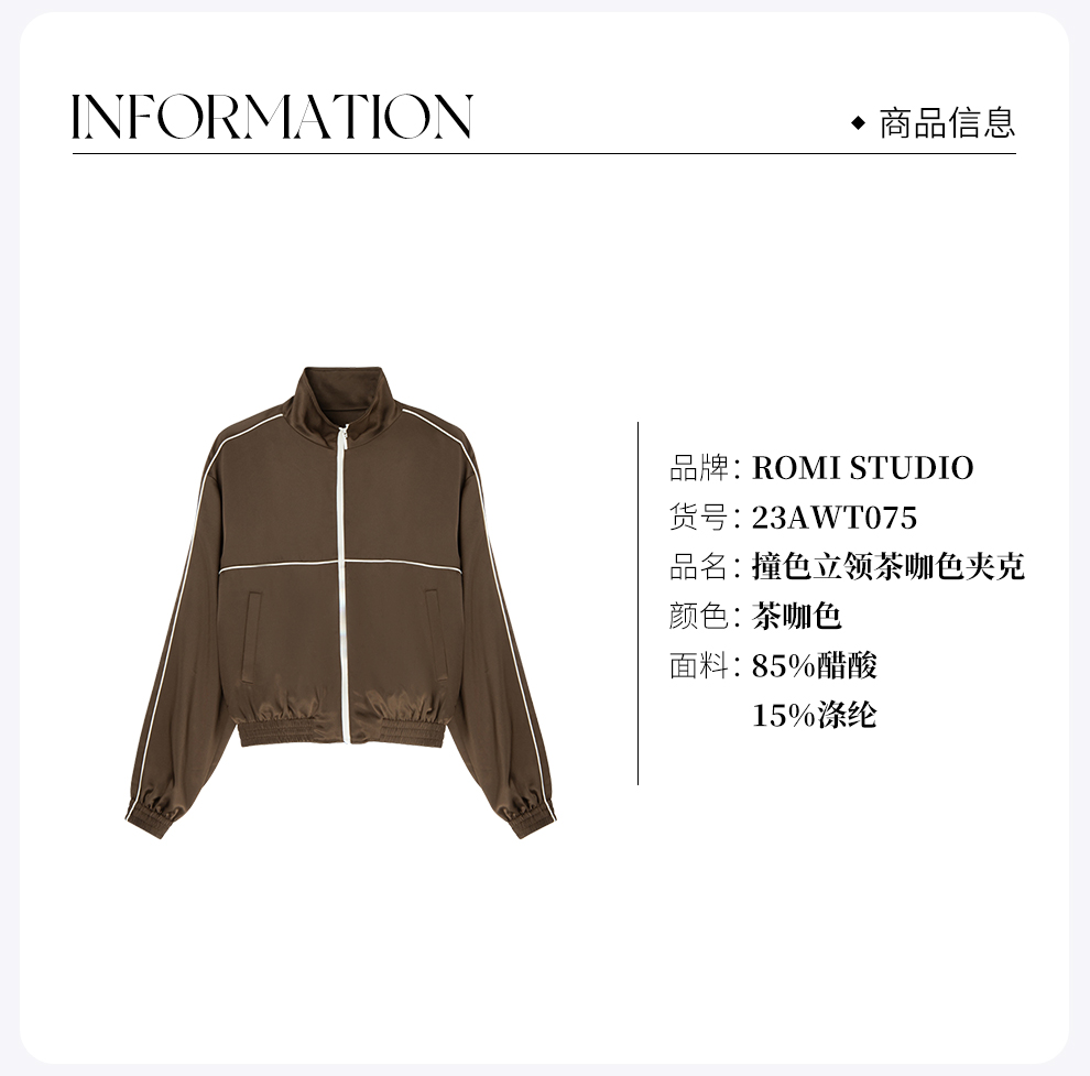 ROMI STUDIO“内外兼备”重磅醋酸撞色立领茶咖色夹克外套23AWT075