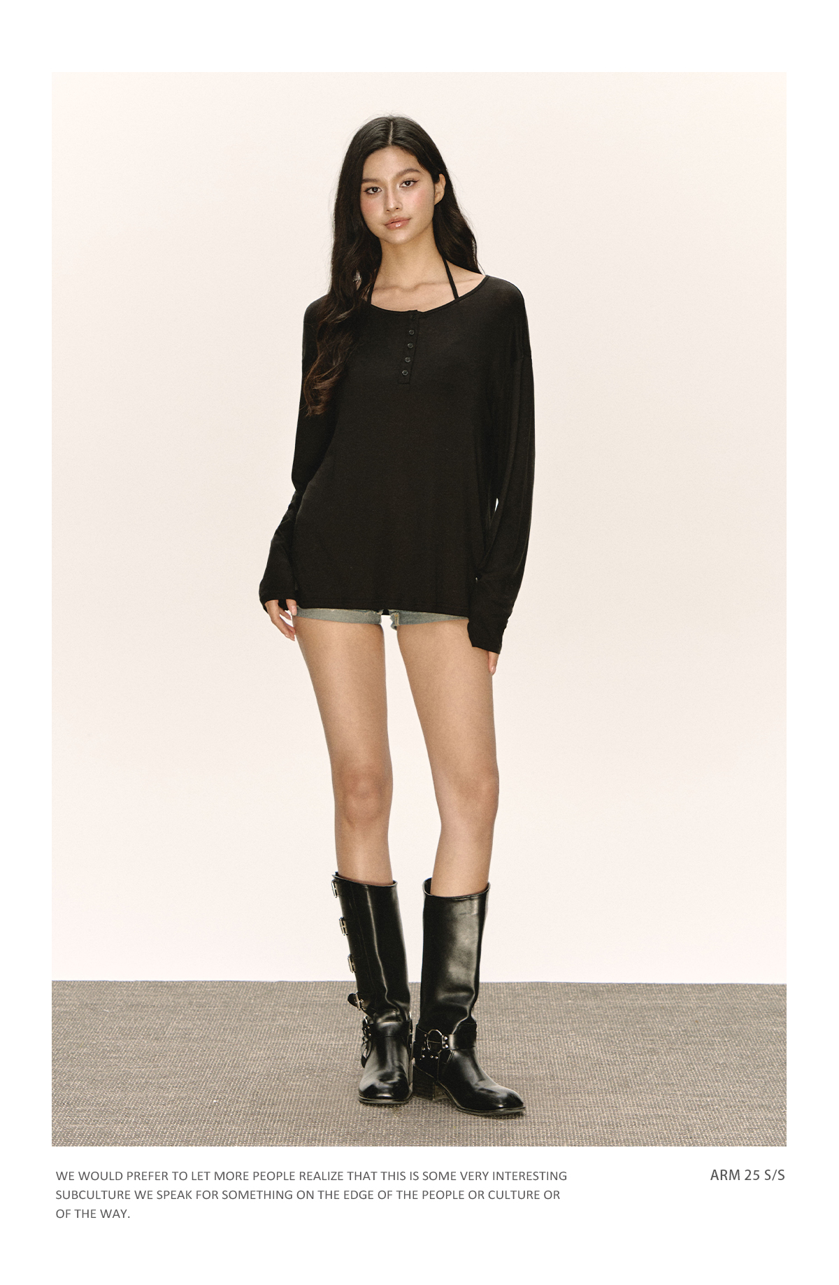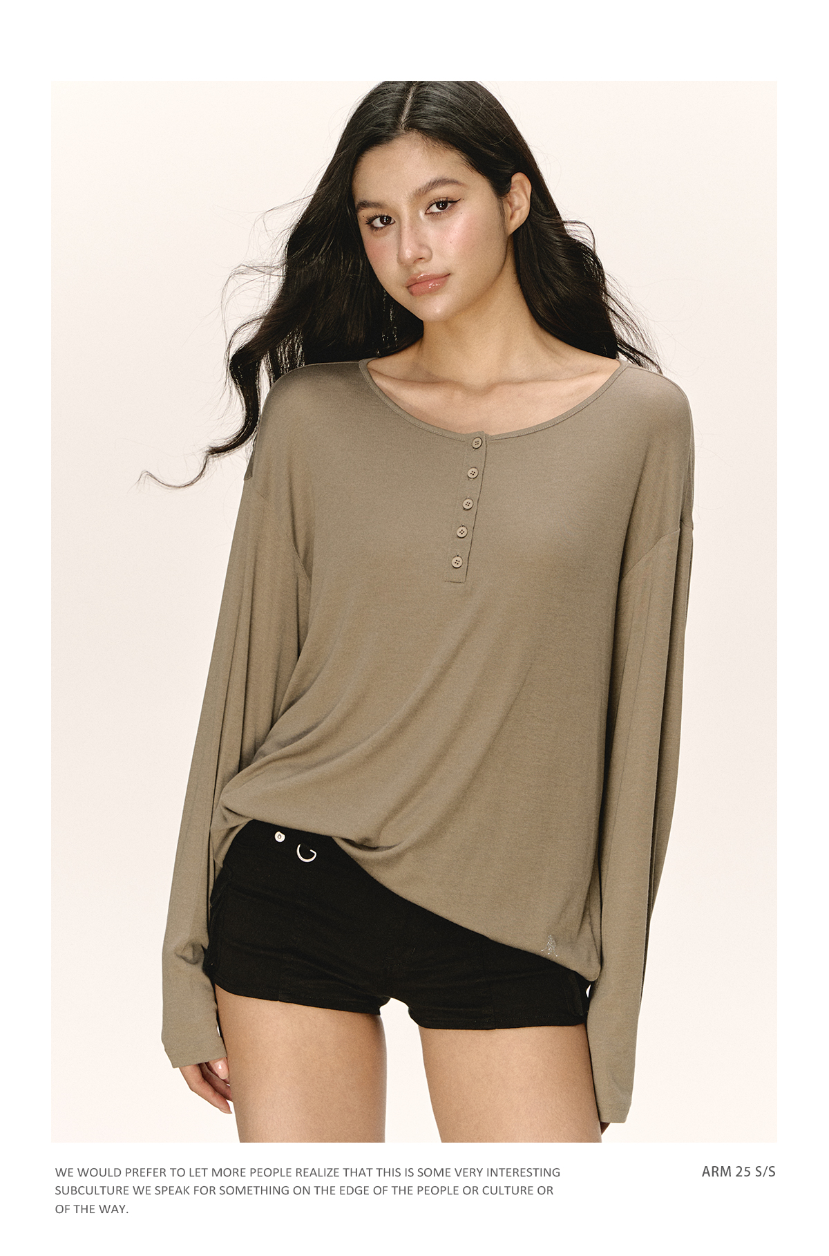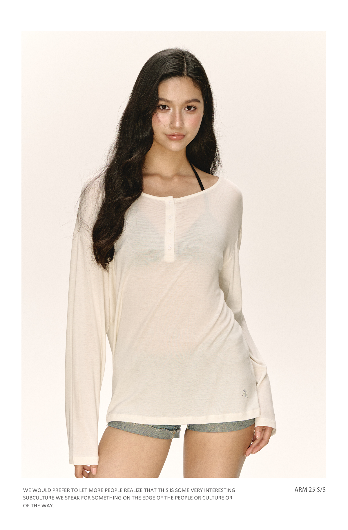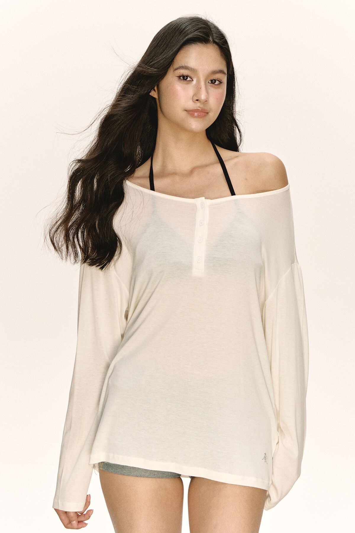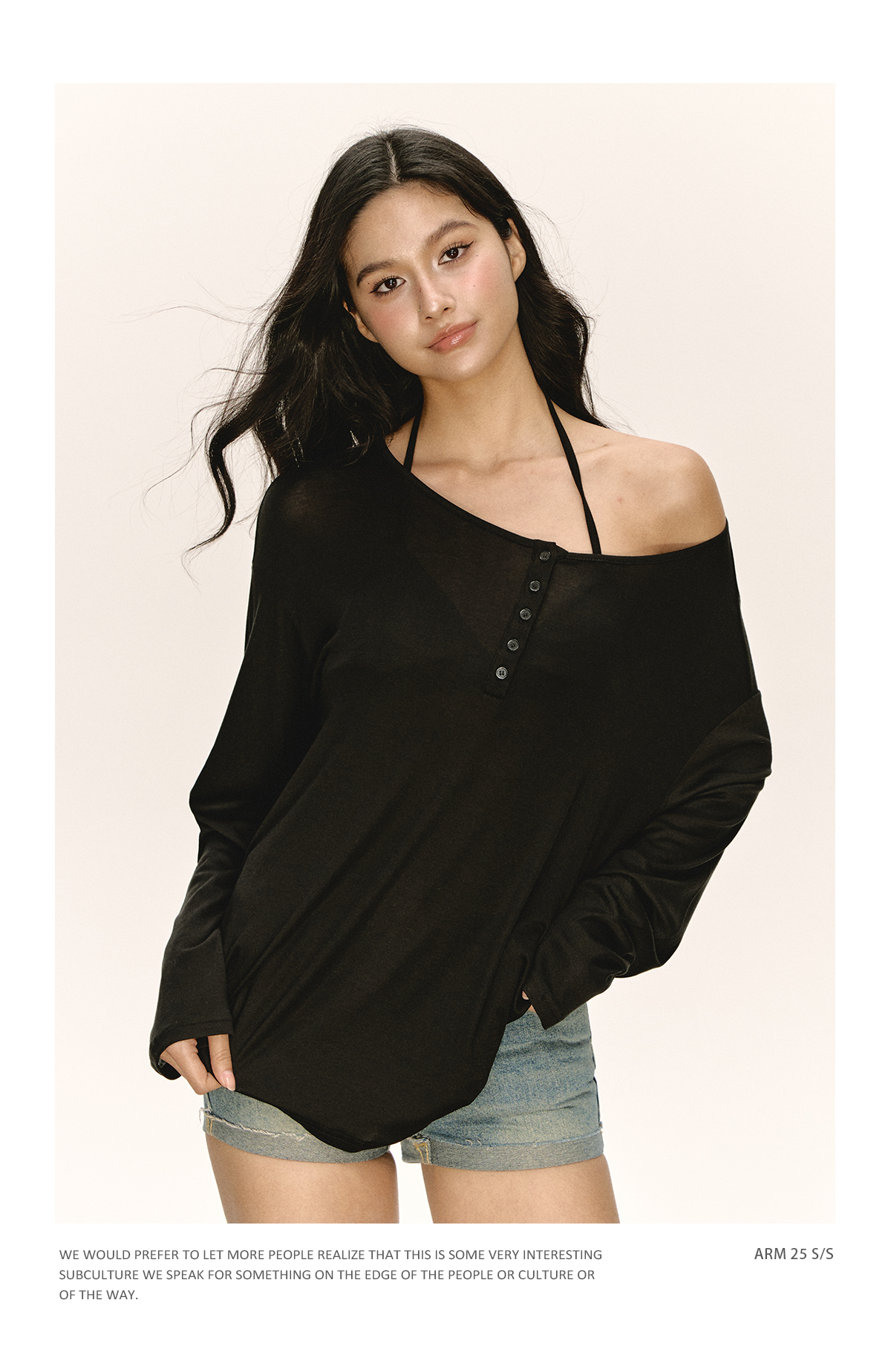 Ariseism 美式复古薄款微透长袖T恤女秋季新款辣妹露肩宽松上衣