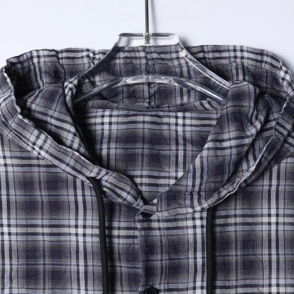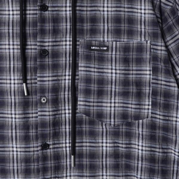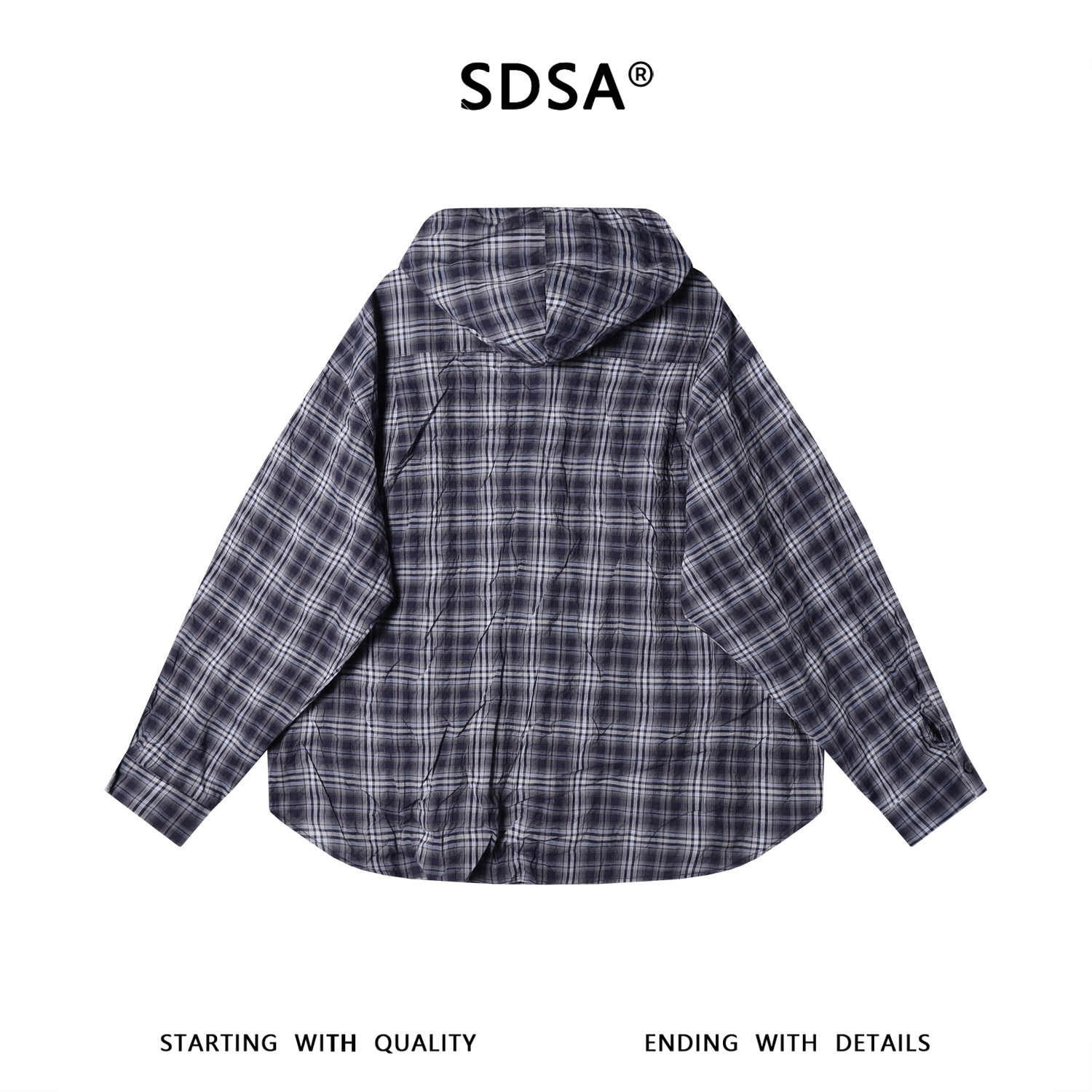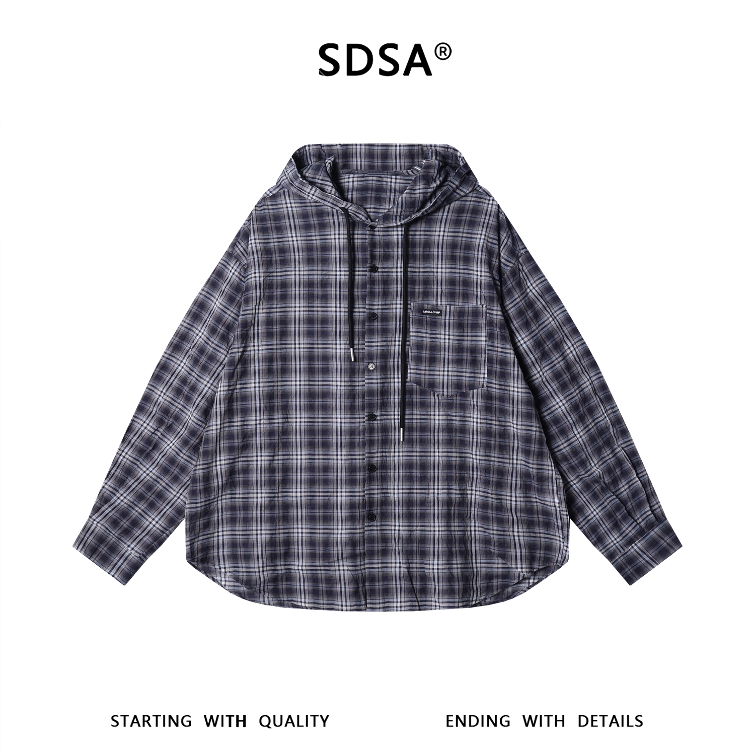SDSA男装2026新款高贵轻奢简约撞色格子纽扣连帽长袖衬衫百搭舒适