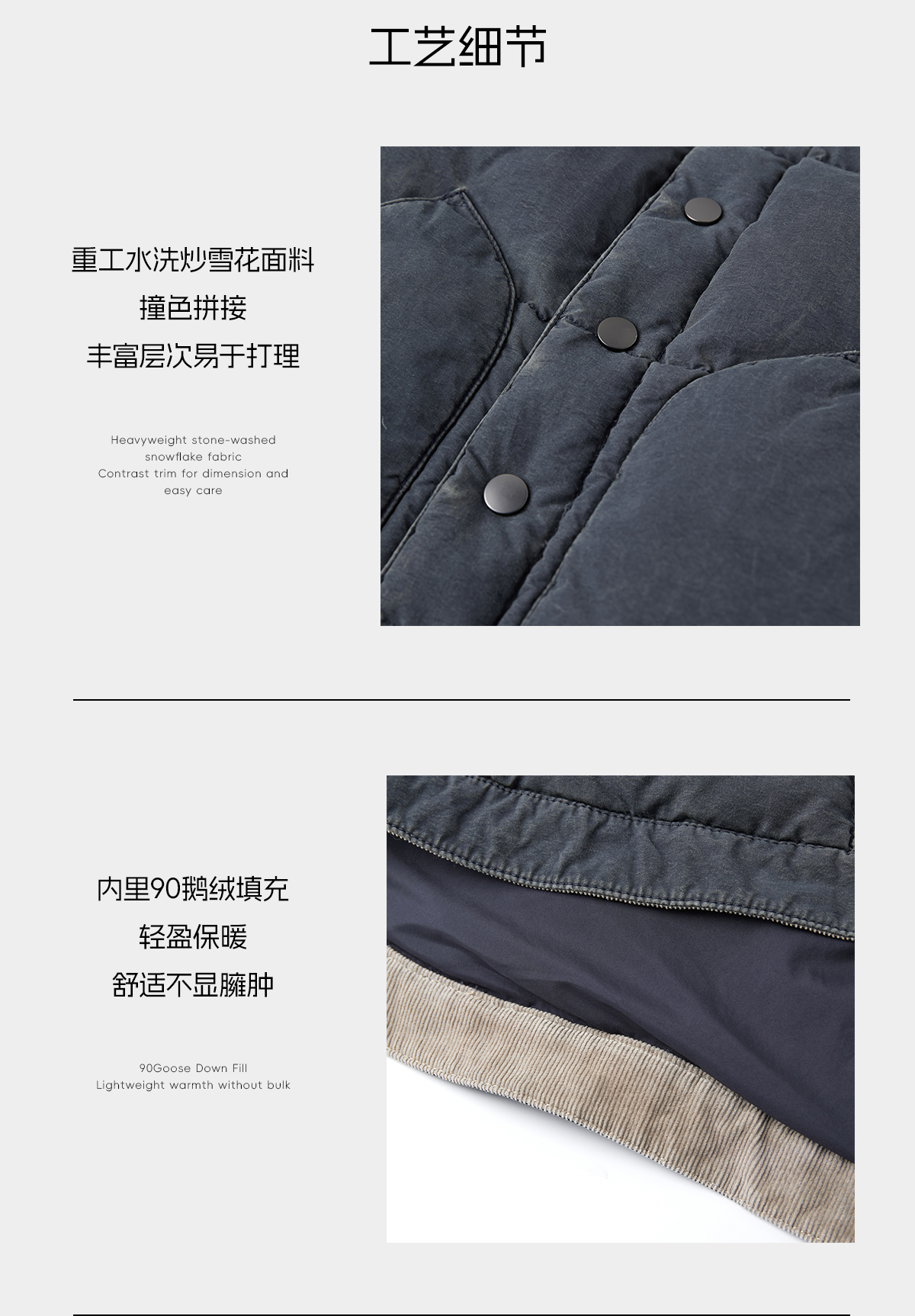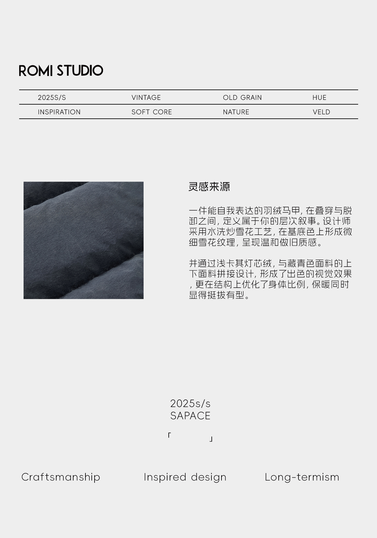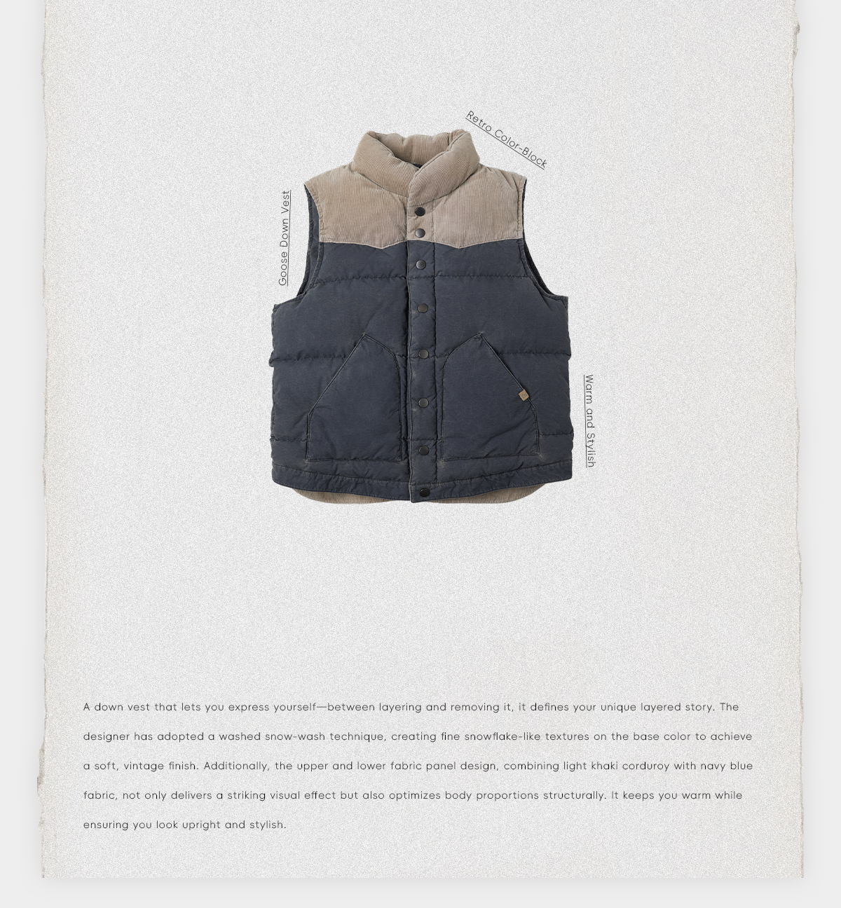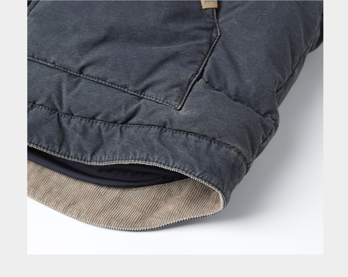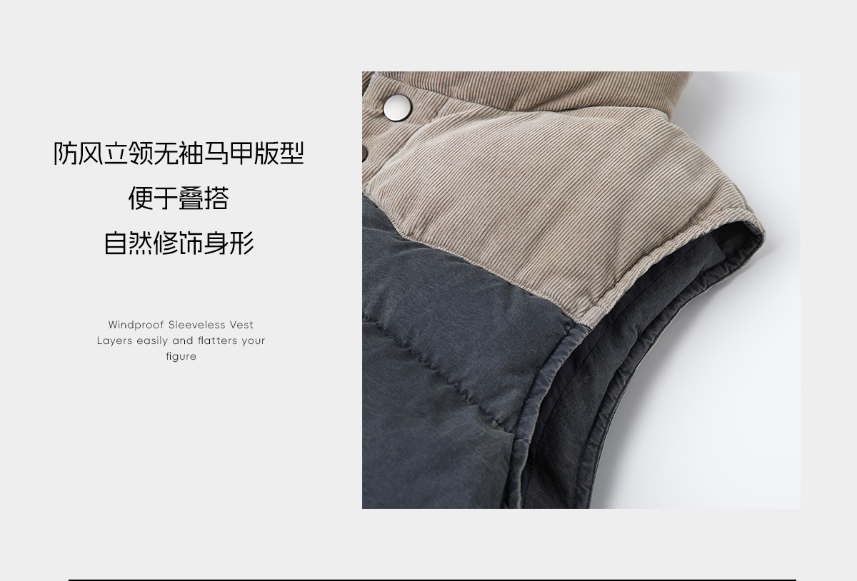 ROMI STUDIO90白鹅绒重洗水灯芯绒拼色立领羽绒马甲 RWCWWG5298