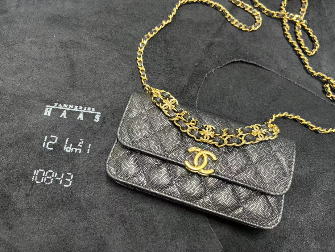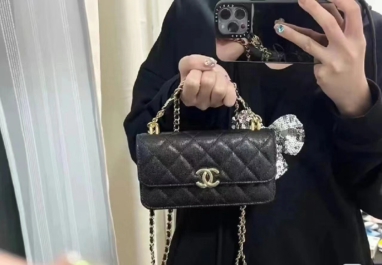 𝗖𝗛𝗔𝗡𝗘𝗟 新款链条𝐦𝐢𝐧𝐢 𝐰𝐨𝐜手机包 黑金