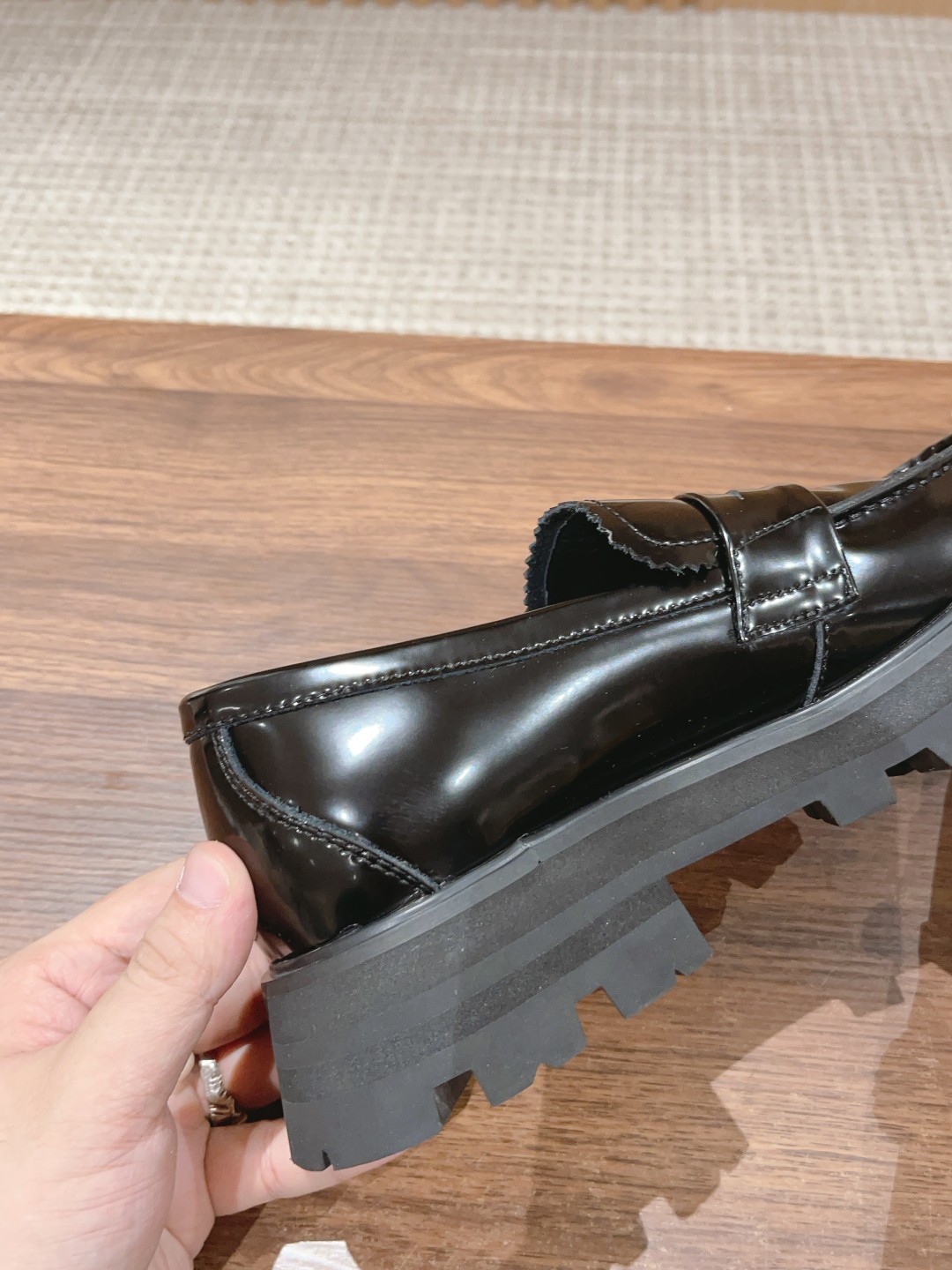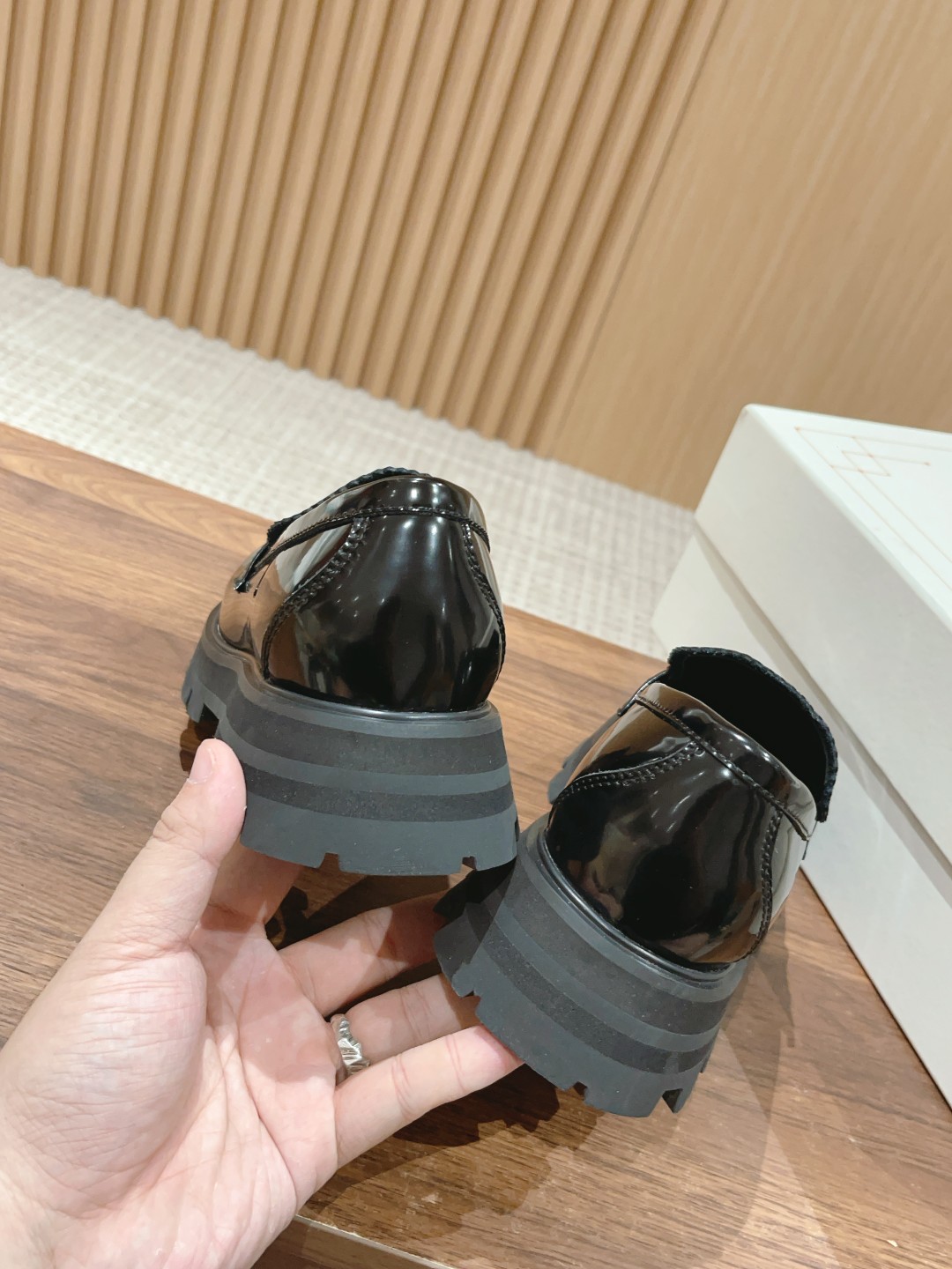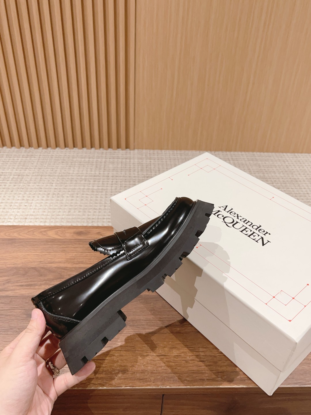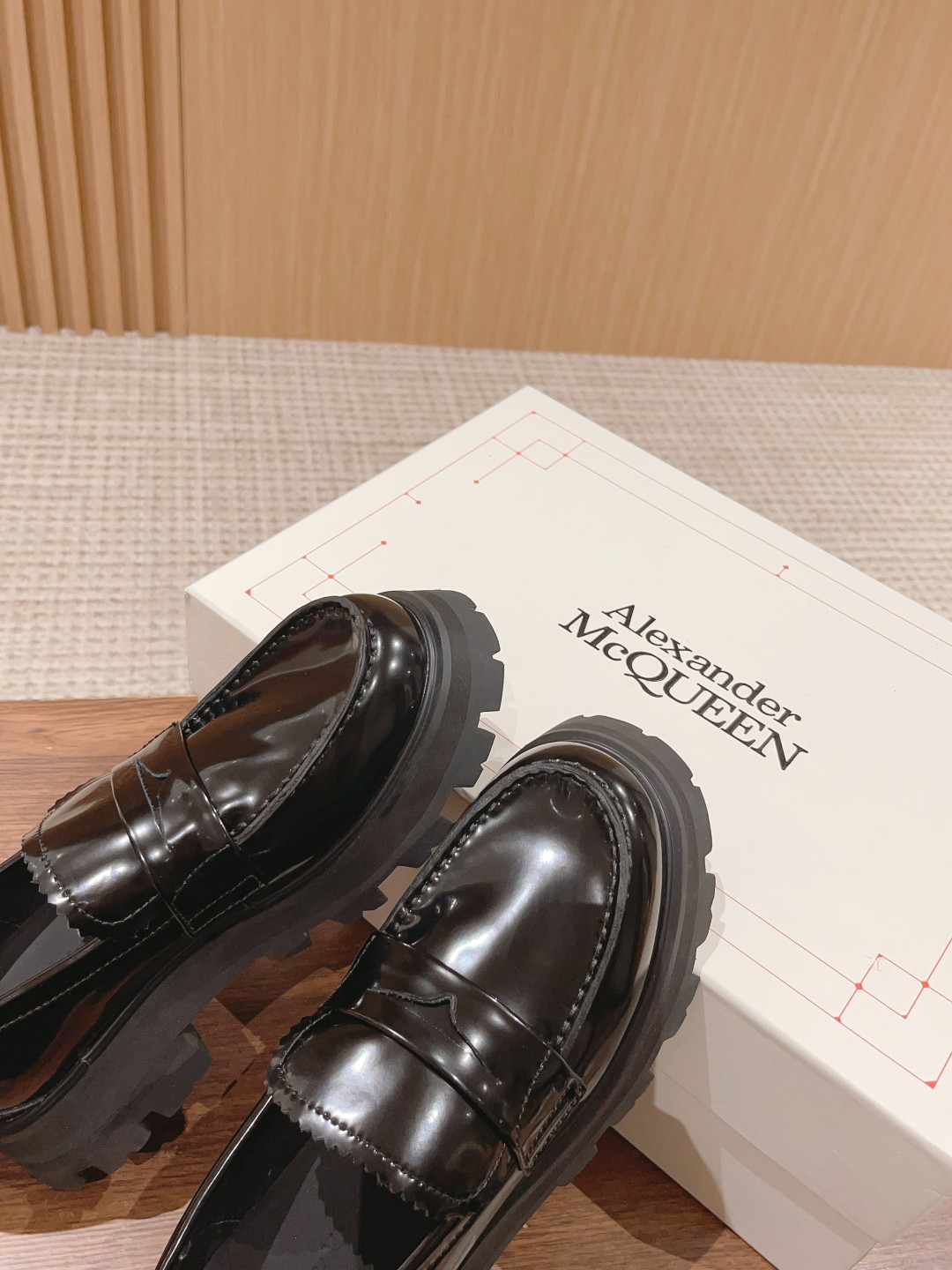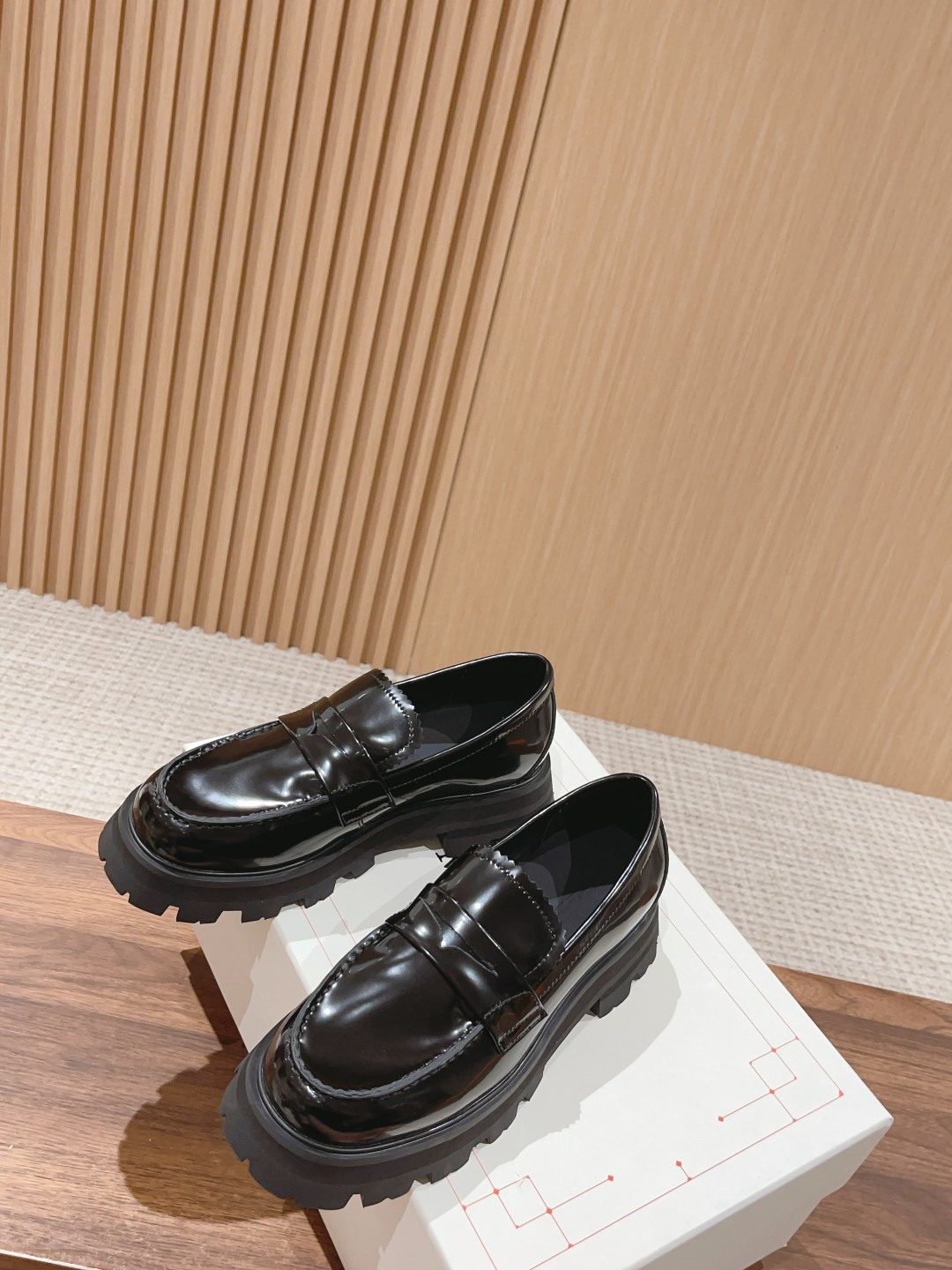 #系列 英伦风乐福鞋 小皮鞋 短靴 当然作为休闲百搭的“王中王”麦昆自然也没有落下风~它来了!经典复古风,鞋型非常秀气,上脚舒服,进口开边珠牛皮,采用明线细节、夸张廓形橡胶沟纹鞋底和圆头造型。 经典的厚底设计它依然还是上脚秒变长腿MM的调性,特别受欢迎颇有一些帅气的范儿,走起路来,明晃晃的质感可以说能够抓足了眼球!
