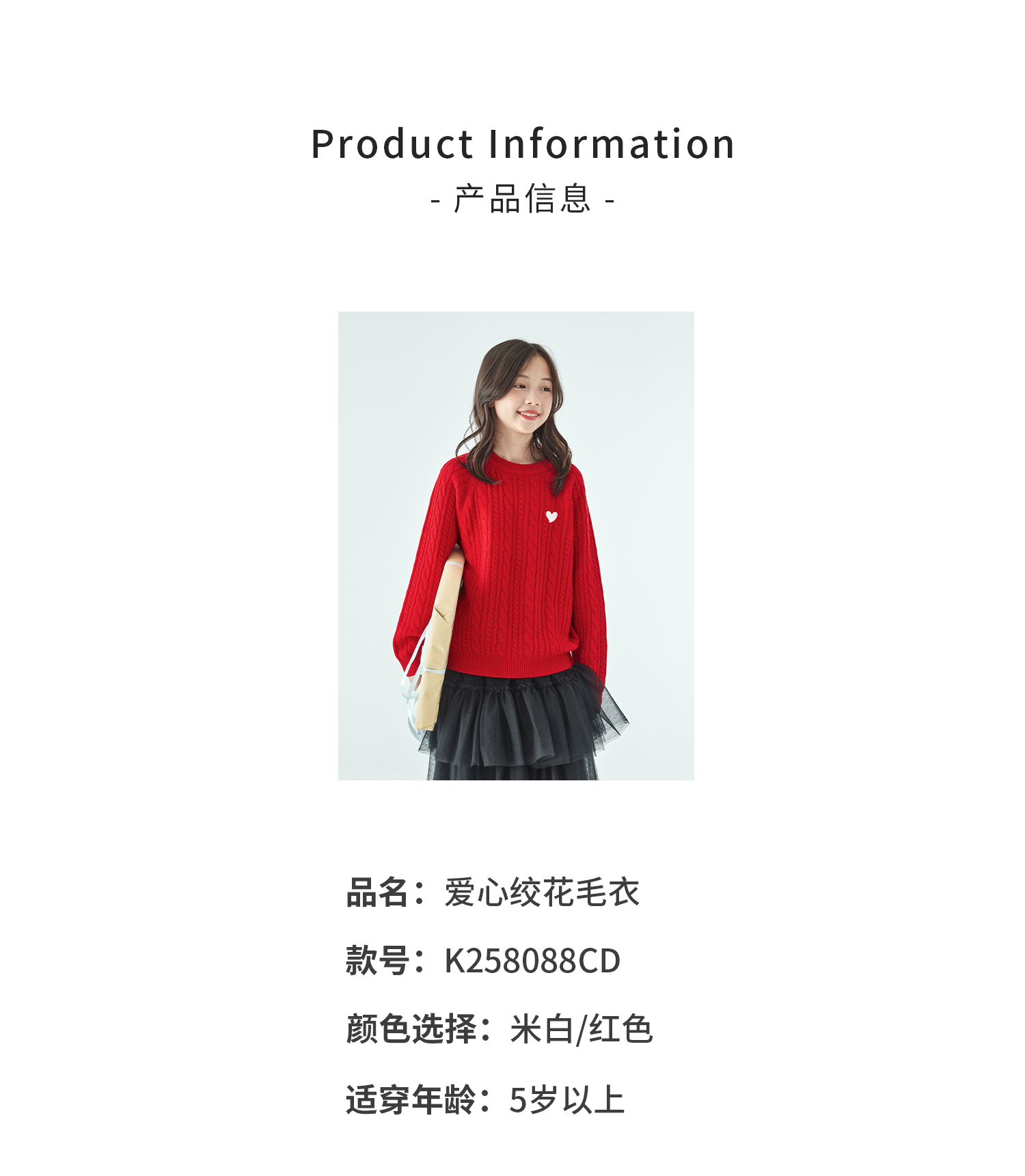 棵初爱心绞花毛衣801K258088CD 商品图1
