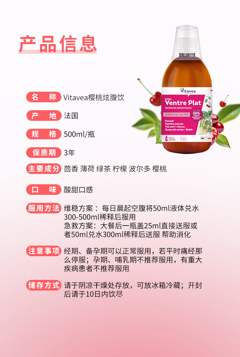 【Vitavea】樱桃炫腹饮益生菌果蔬小胖瓶阻断代谢纤维饮 500ml瓶
