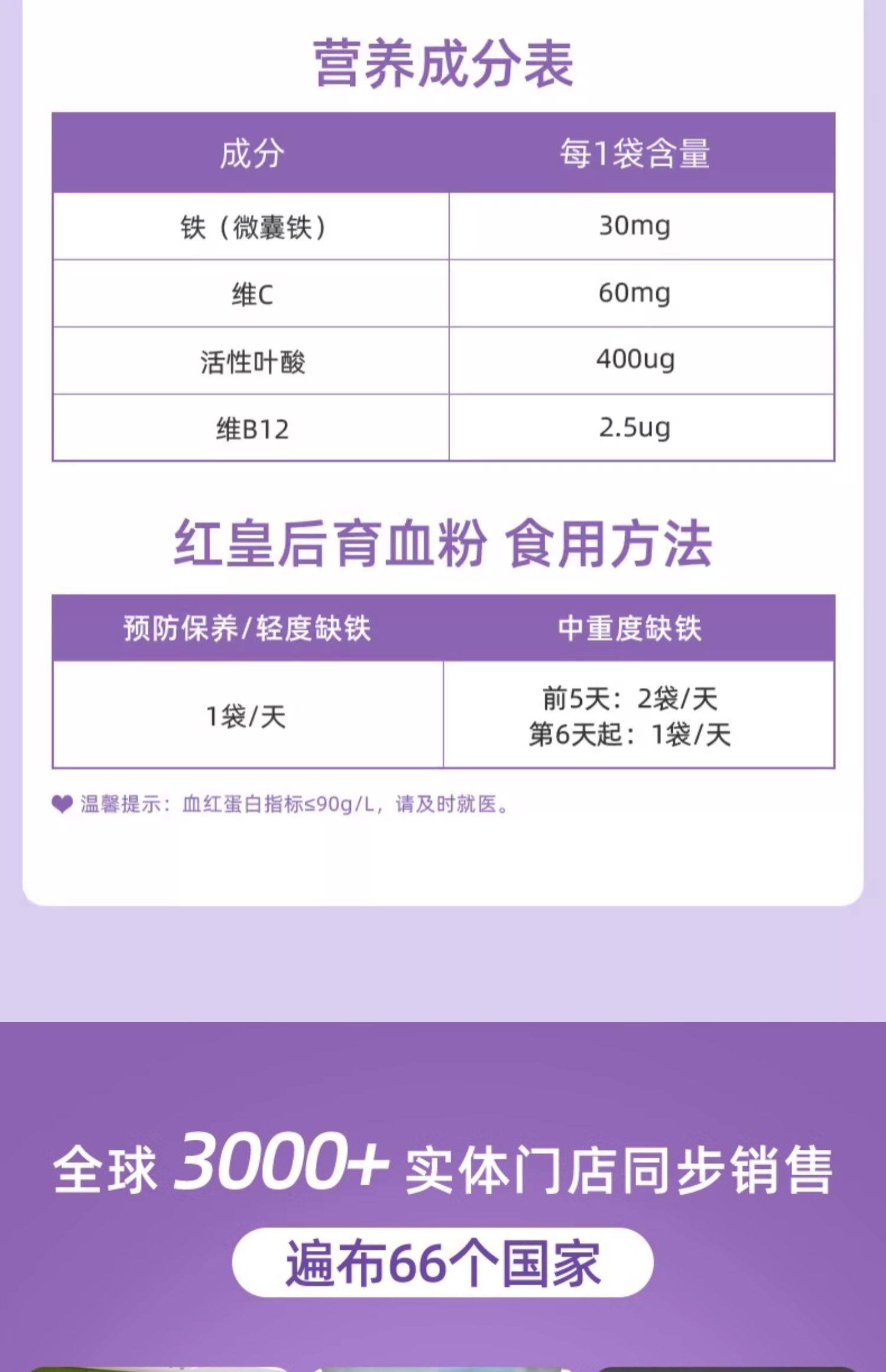 红皇后育血粉意之宝补铁剂贫血孕期女孕妇专用补气哺乳期补铁元素