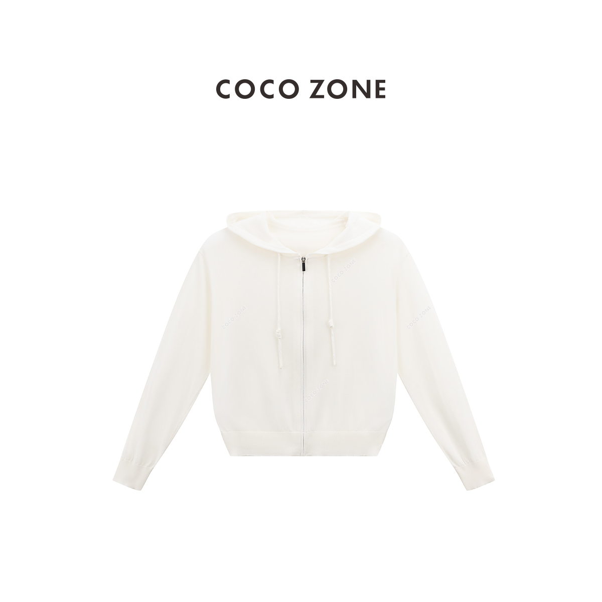 COCO ZONE 夏季薄款连帽针织开衫简约休闲长袖上衣CC1B1462