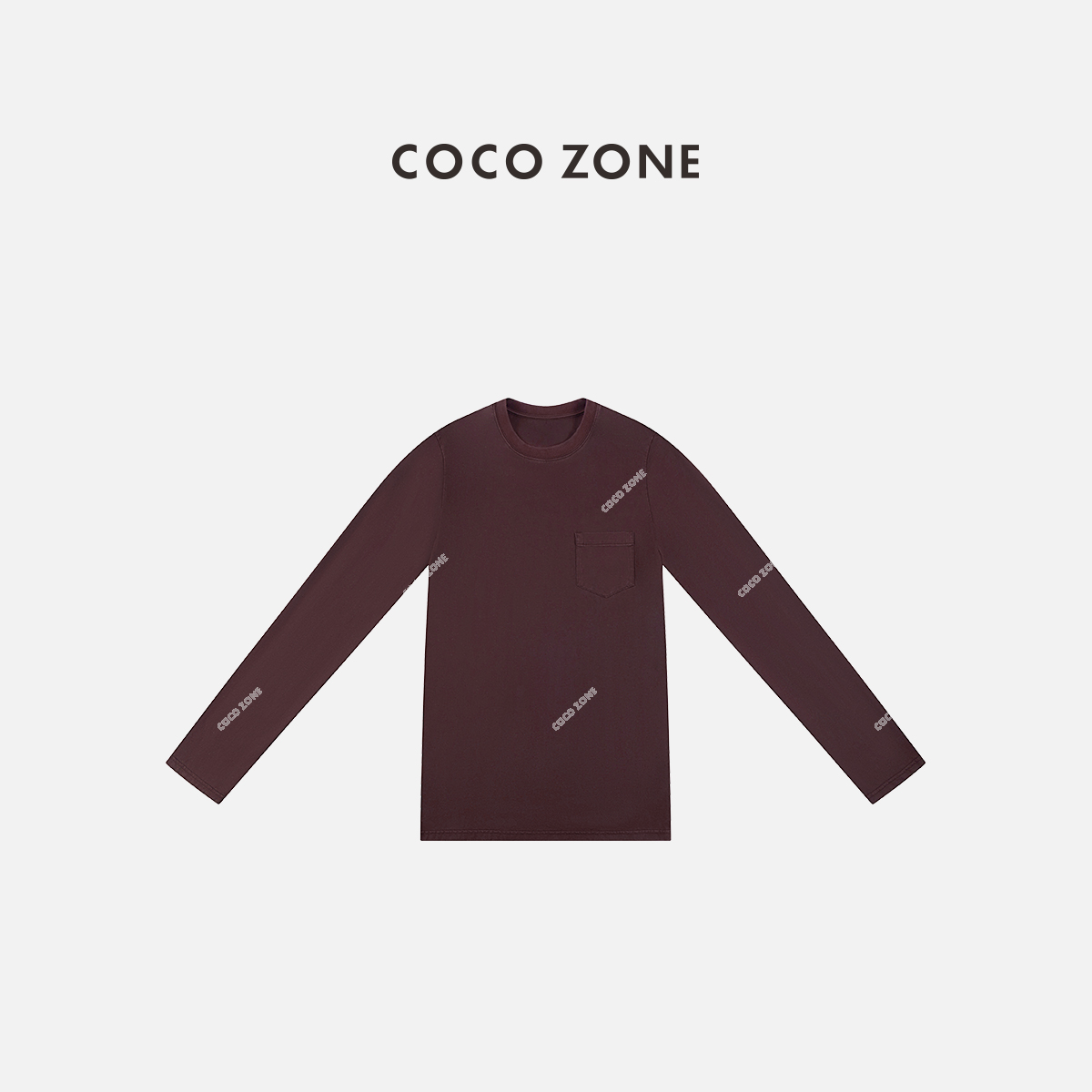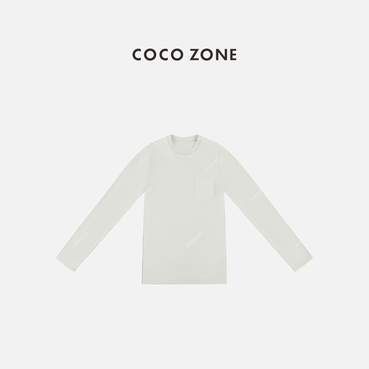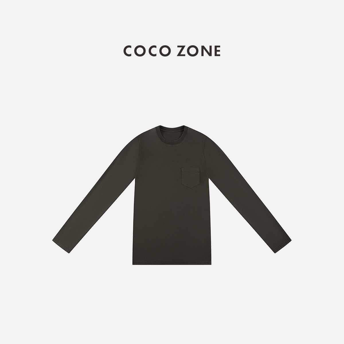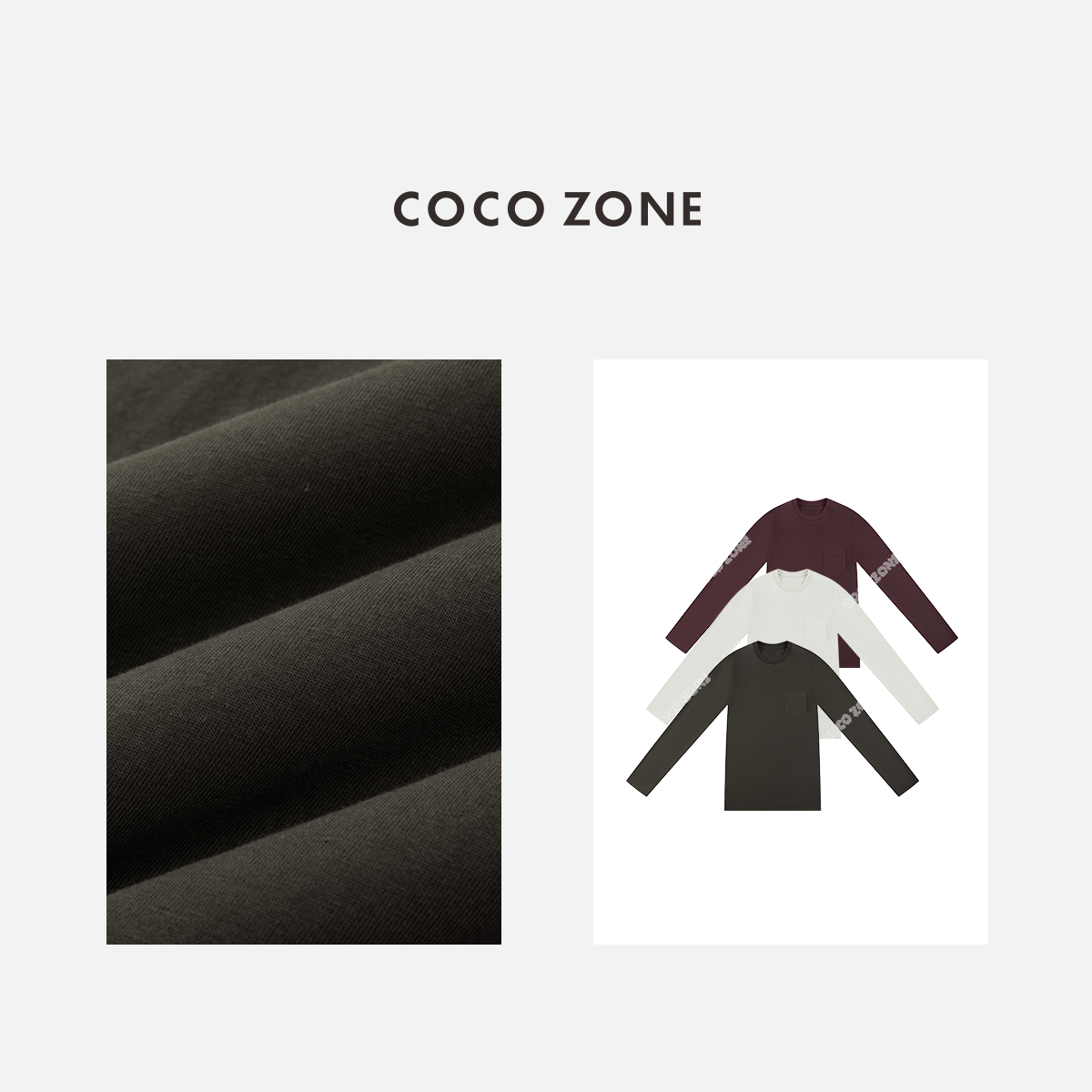 COCO ZONE 100棉口袋长袖T恤圆领休闲上衣 CC1C2309