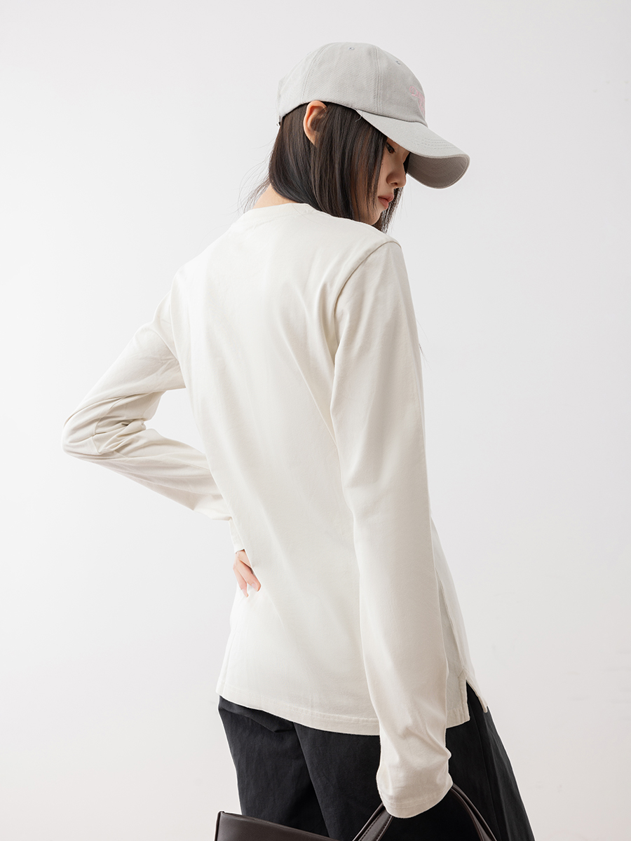 COCO ZONE 刘 一一 “扣子打底”半开领基础款长袖T恤 CD1A1783