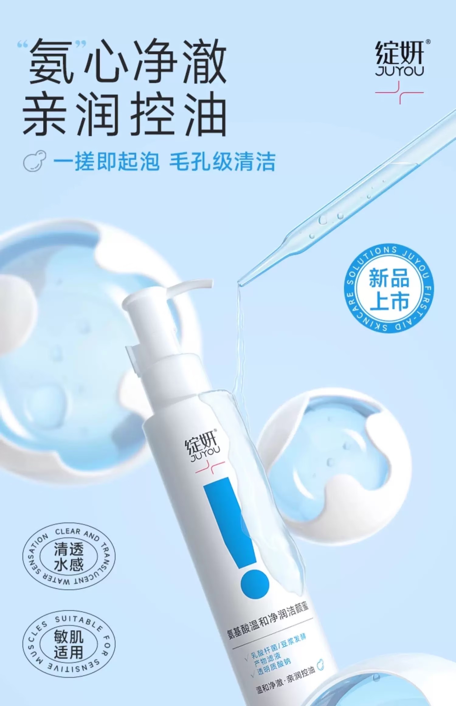 【深层净透】绽妍洗面奶 氨基酸洁颜蜜 泡沫绵密控油清洁温和敏感肌洁面