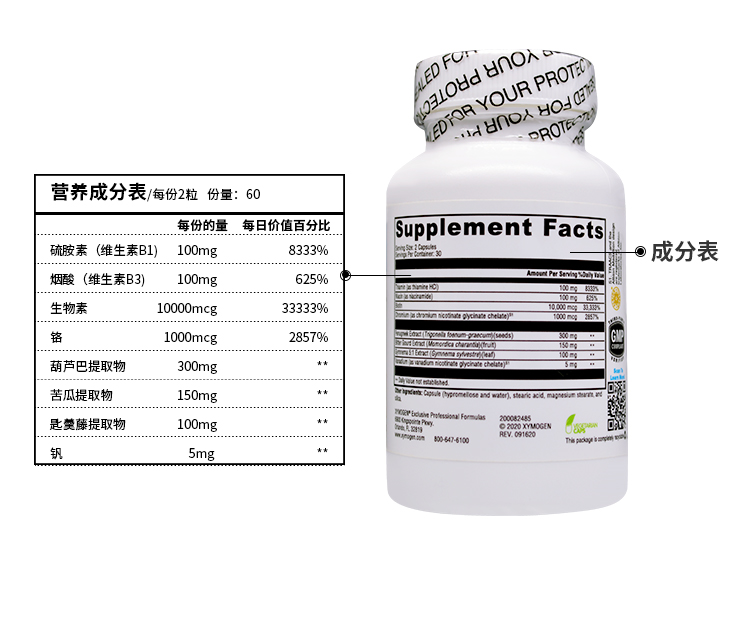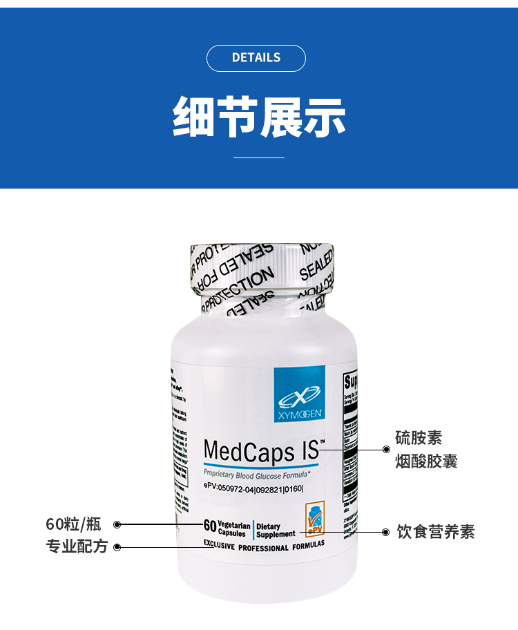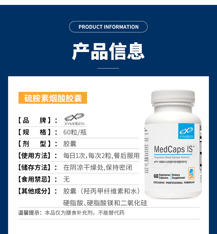 【效期至27年4月】硫胺素烟酸胶囊 XYMOGEN MedCaps IS 60粒/瓶