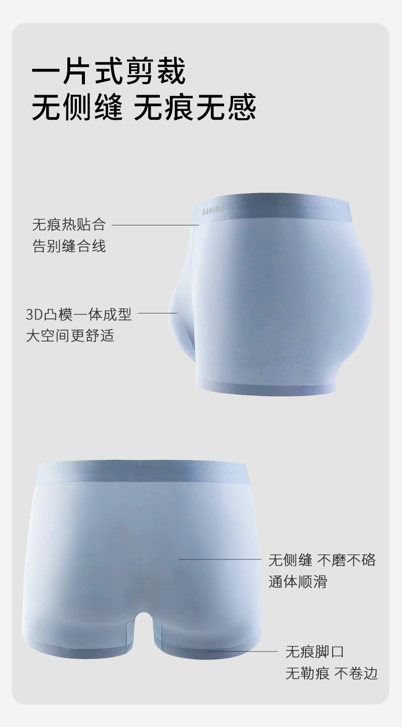 半醒男士冰皮内裤7A抗菌透气防夹臀高弹裸感无痕不卷边平角内裤短裤