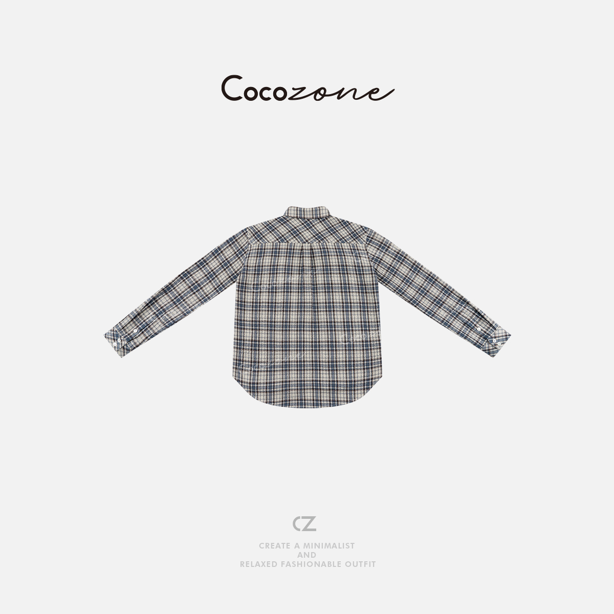COCO ZONE 新款设计感格纹百搭显瘦长袖衬衫CD1A0191