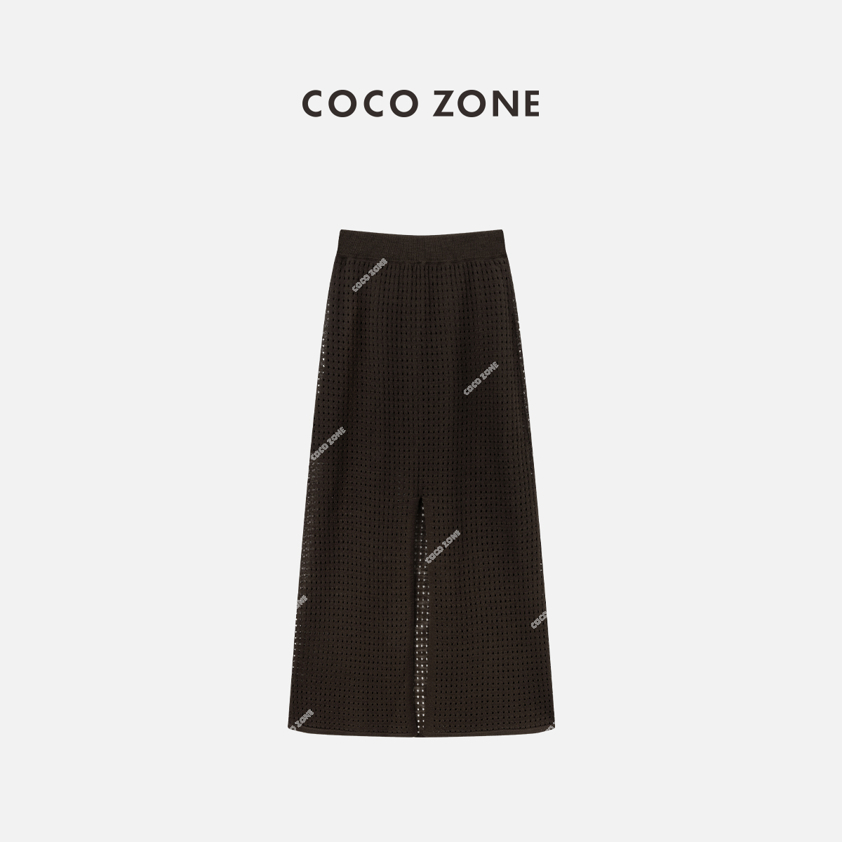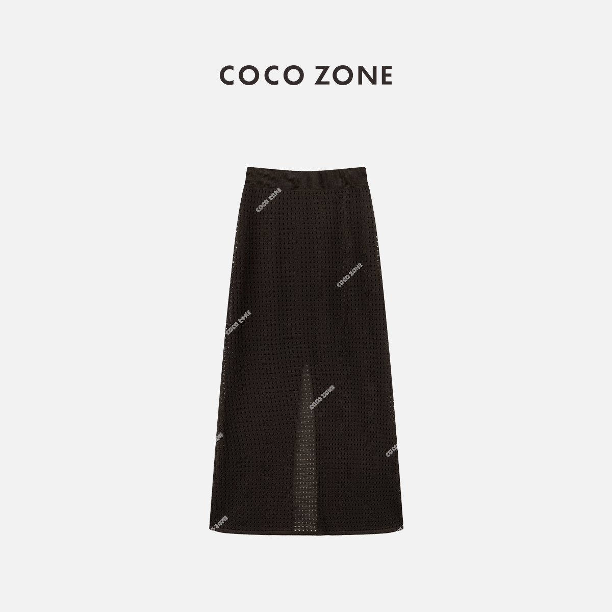 COCO ZONE "咖啡裙"夏季复古设计感镂空半身裙简约松紧腰中长裙CC1B1192