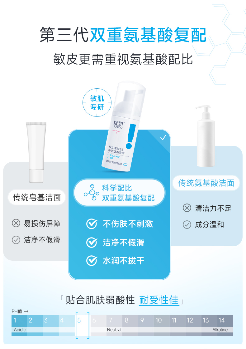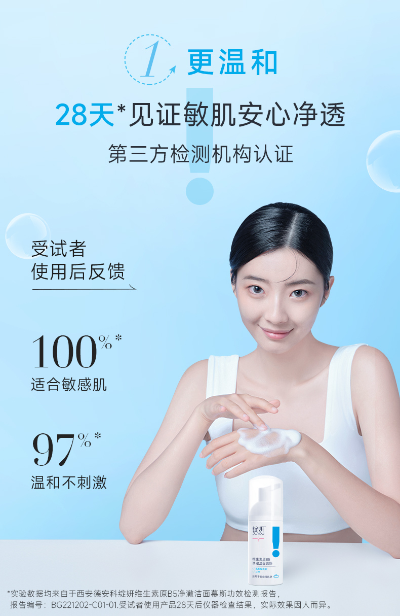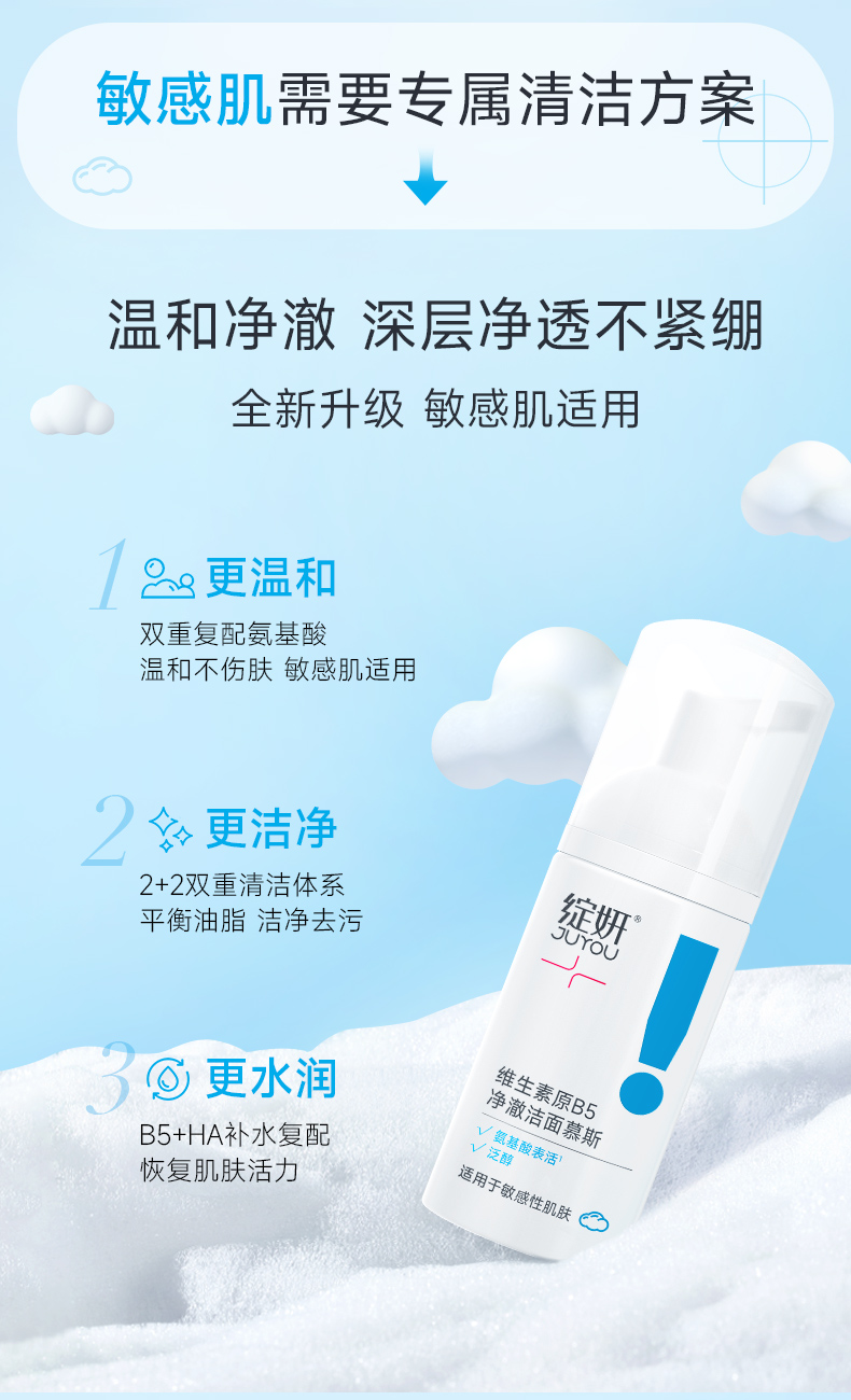 【深层净透】绽妍氨基酸温和洗面奶洁面慕斯深层清洁B5敏感肌干油皮学生