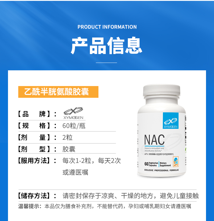 【效期至27年4月】N-乙酰ban胱氨酸 XYMOGEN NAC 60粒/瓶