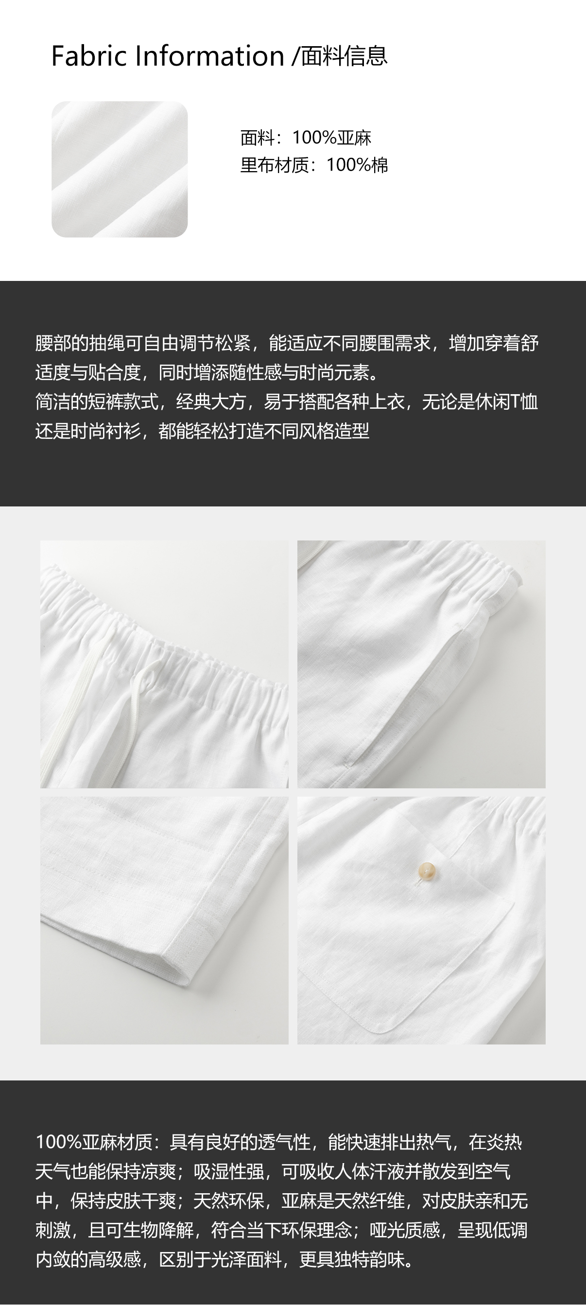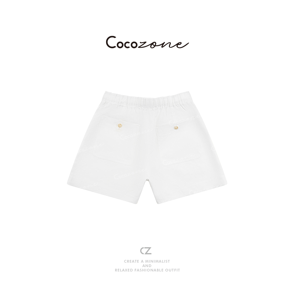 COCO ZONE 刘一一【100亚麻】简约纯色松紧抽绳短裤CD2A0850