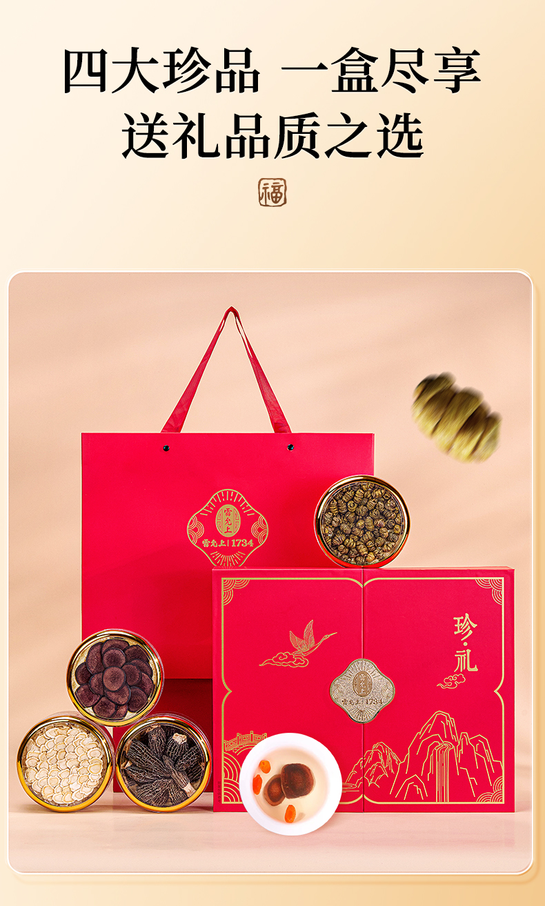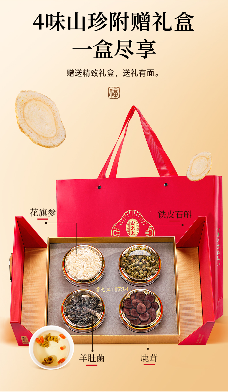 雷允上珍礼礼盒145g/盒 花旗参+铁皮石斛+羊肚菌+鹿茸