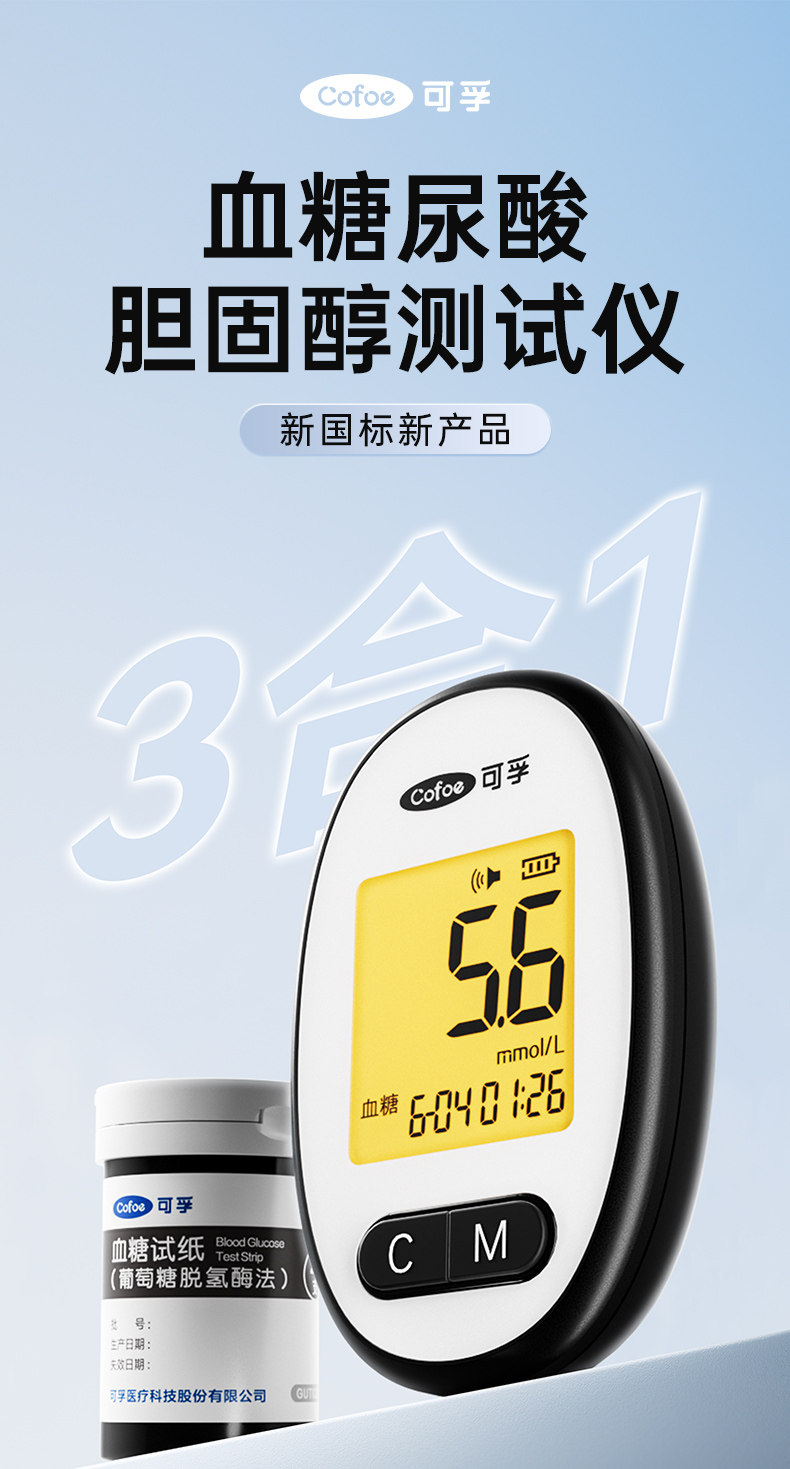 可孚测血糖尿酸胆固醇血脂的测试仪器家用双功能高精准官方旗舰店
