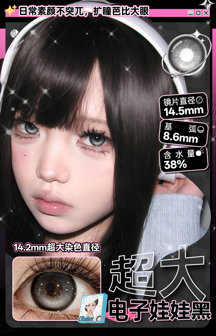 新款【超大电子娃娃黑】14.5大直径半年抛美瞳1片装