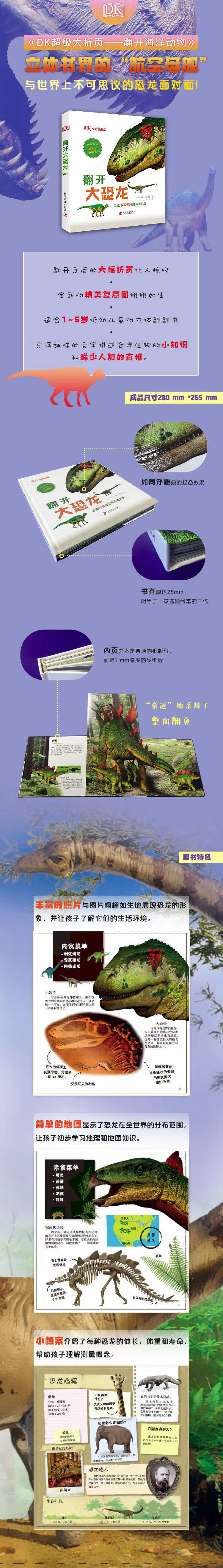 适读人群 :3-10岁 该书引导我们走近远古世界的巨大生物,与Z大、Z凶猛的恐龙相遇,了解这些曾经独霸地球的统治者!书中含有的大幅折页再现令人惊叹的恐龙世界,丰富的照片与图片栩栩如生地复原恐龙曾经的生活环境,充满趣味的文字讲述恐龙小知识和鲜少人知的真相。本书的语言生动有趣,画面活泼生动,形式比较新颖,是一本相当不错的少儿图画书。
