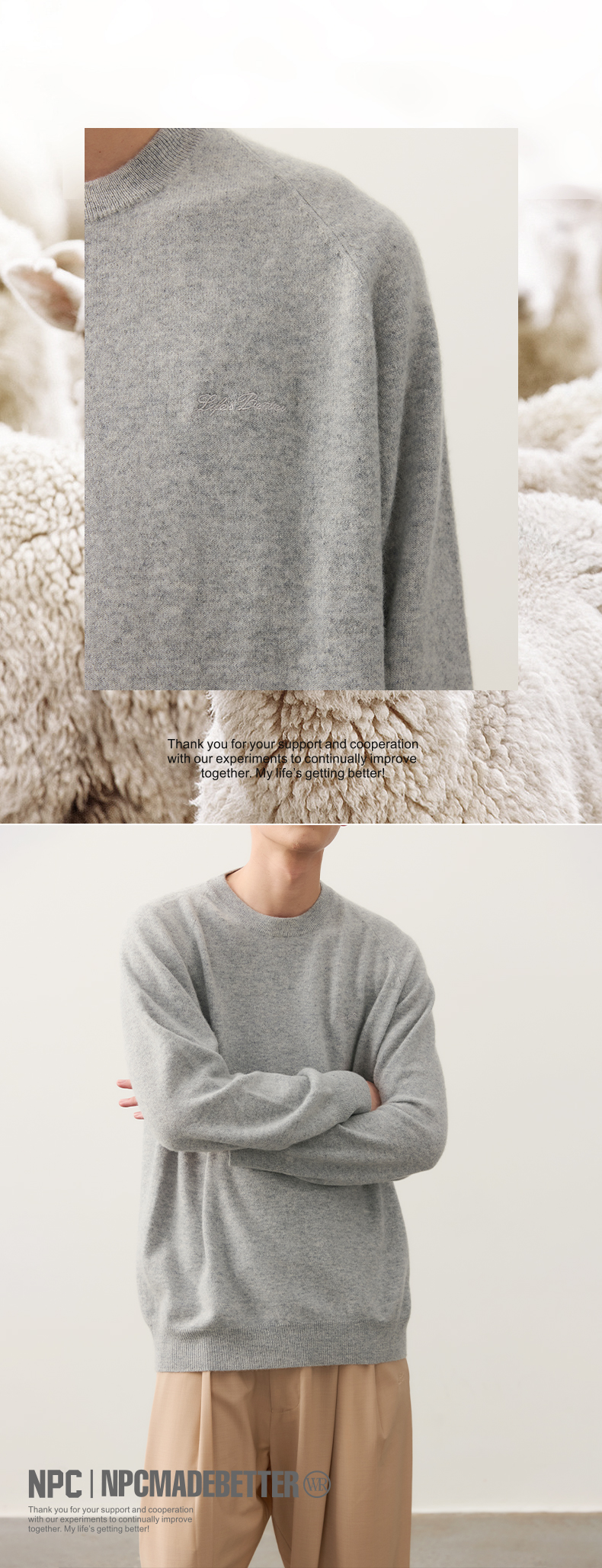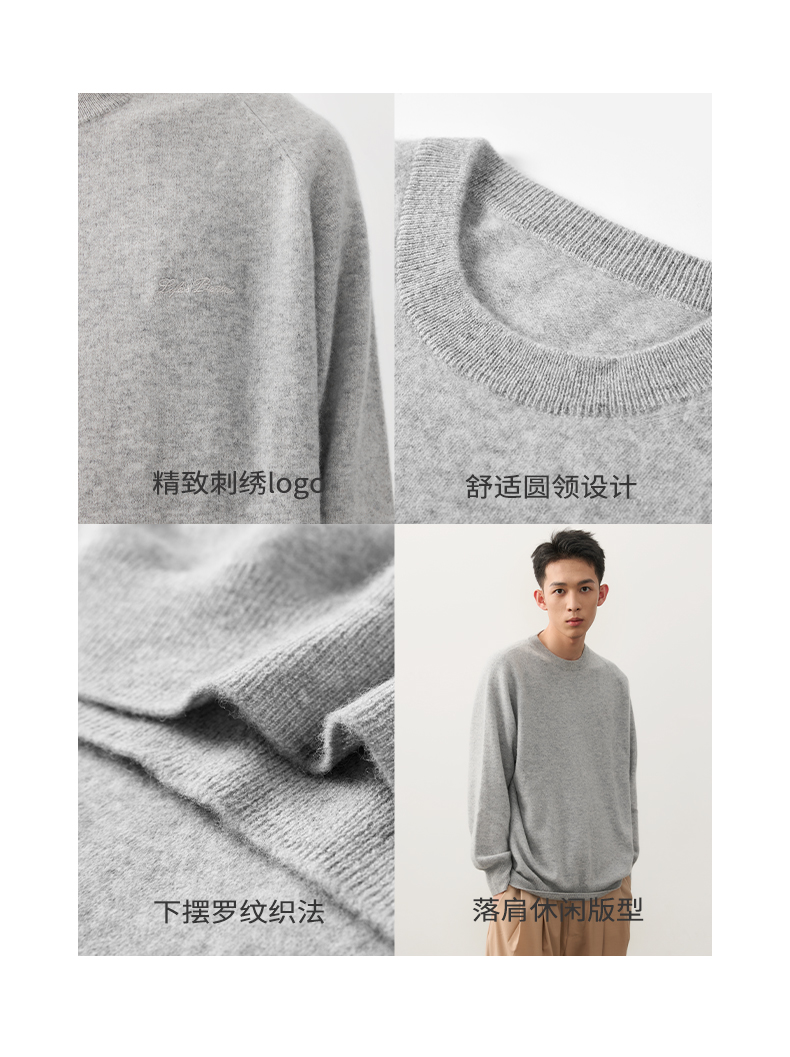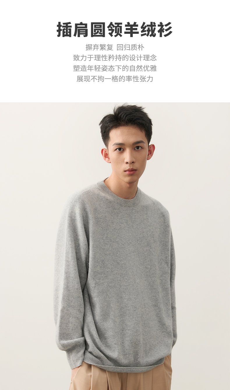 NPC潮牌字母刺绣100%山羊绒圆领羊绒衫男插肩袖简约保暖NP49SW01